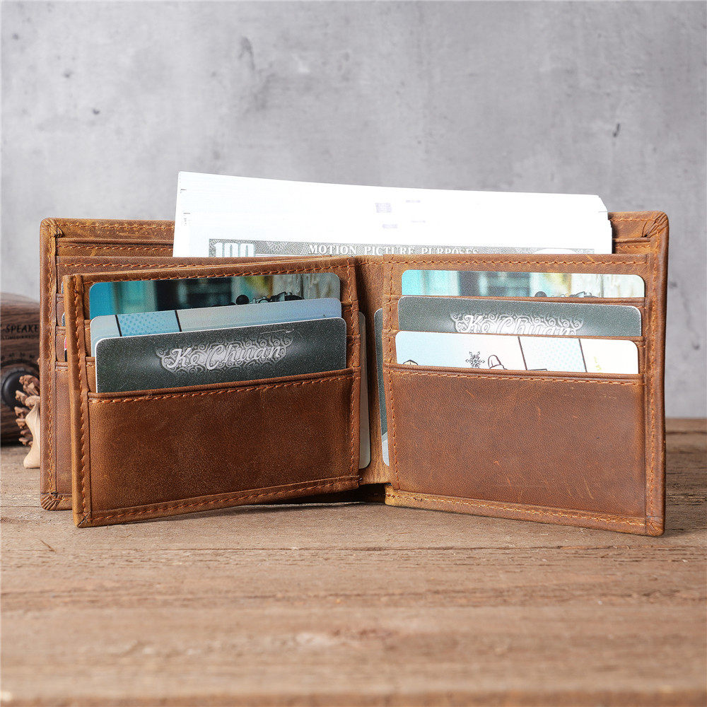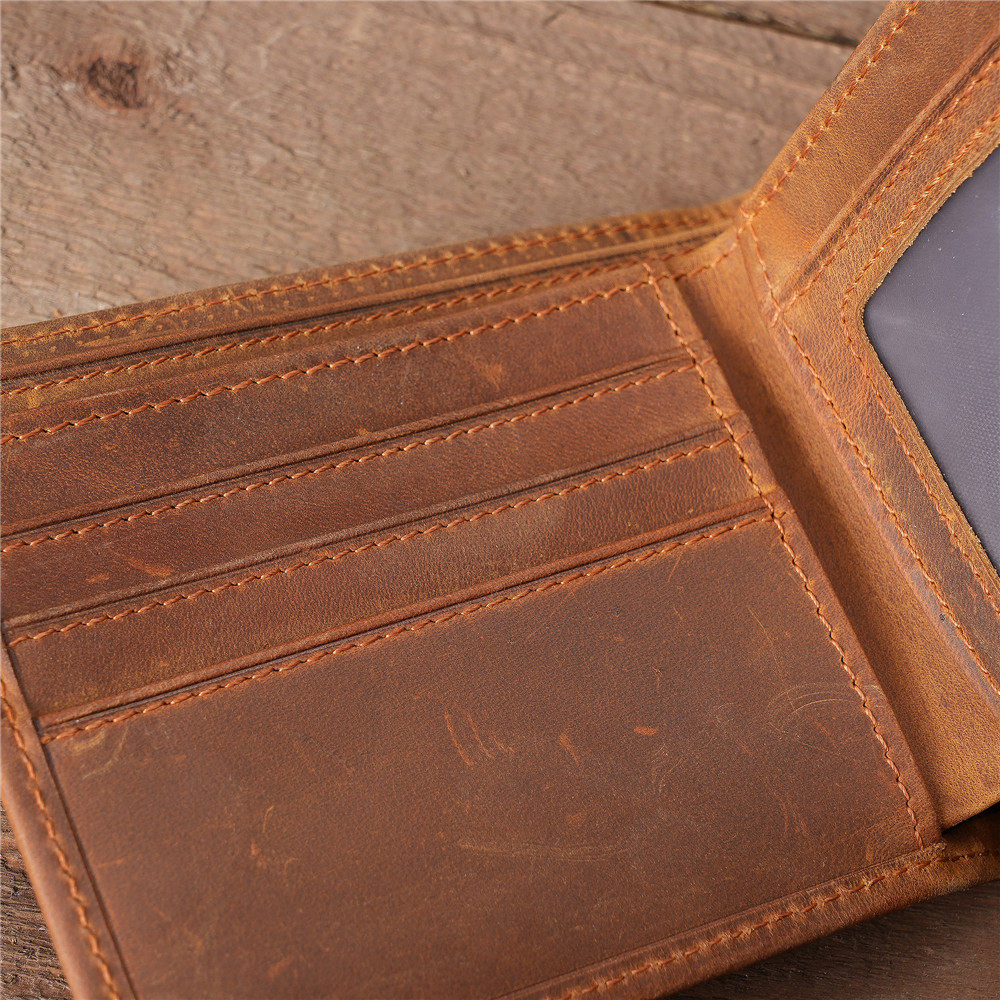 Cross-border men's crazy horse leather short wallet Europe and the United States retro change handmade cowhide card bag foreign trade wholesale 6005