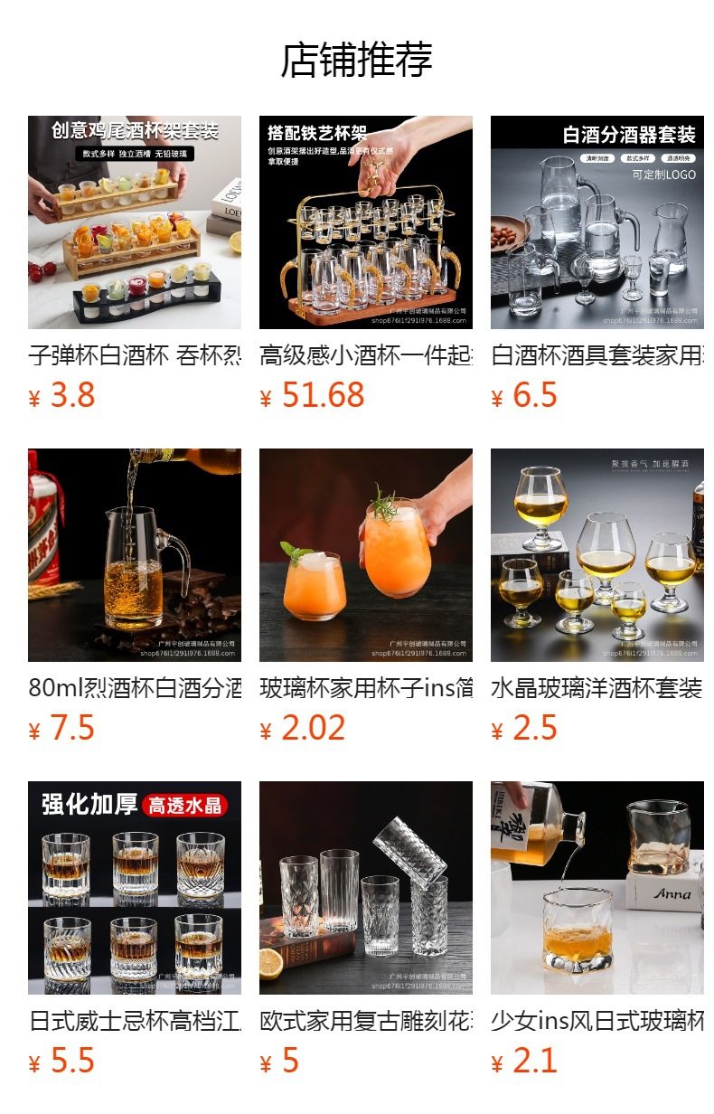Liquor Glass Set for Home Use, Red Wine Glass, Glass Decanter, Customizable with Logo, Shot Glass, Small Glass, Bullet Glass