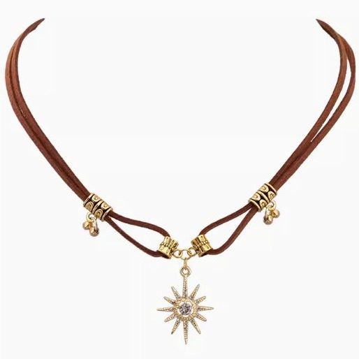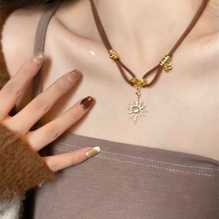 Sweet and Cool Hot Girl Style Sunflower Pendant Necklace Retro Leather Star Collar Personalized Versatile Double Layer Clavicle Chain Trend