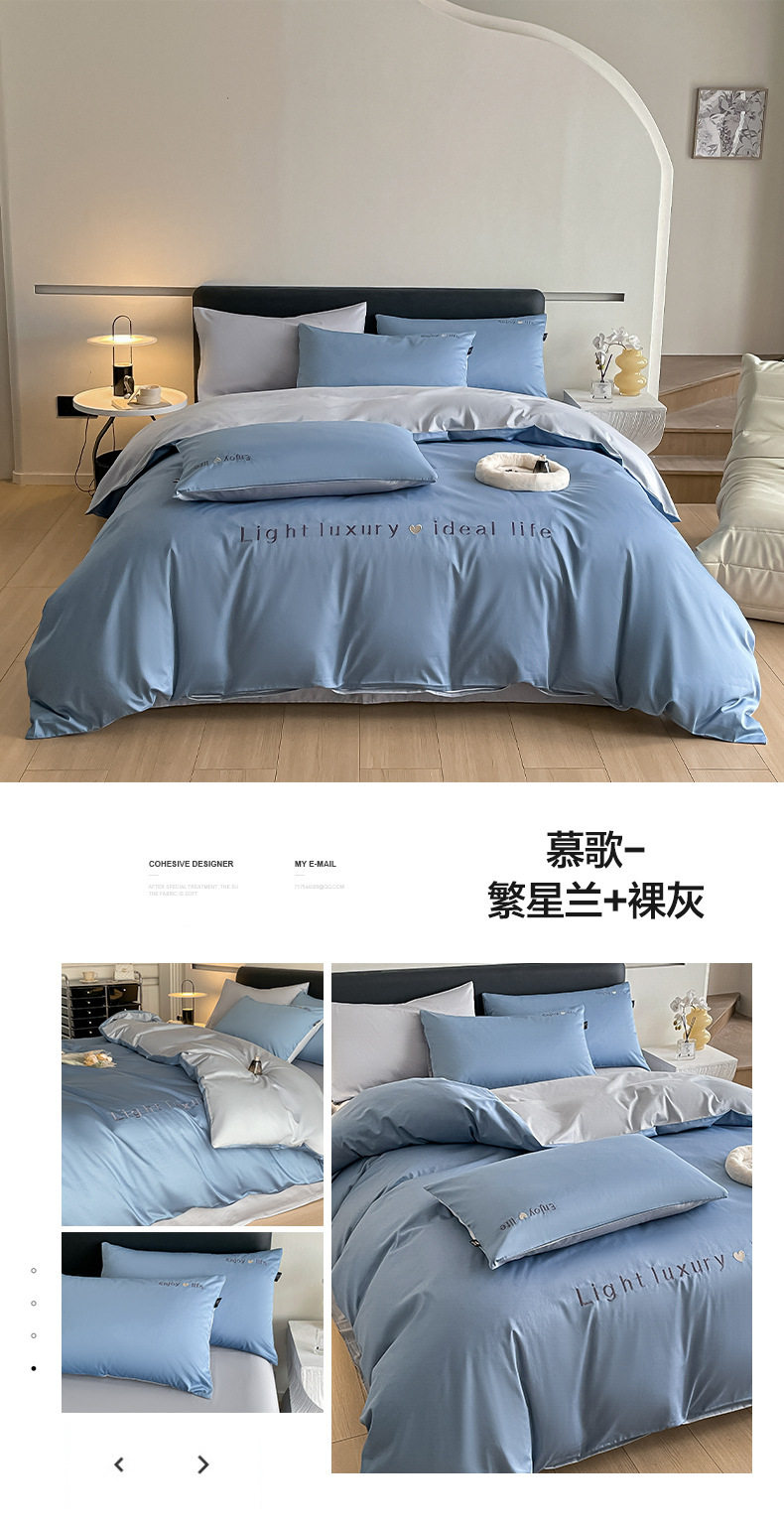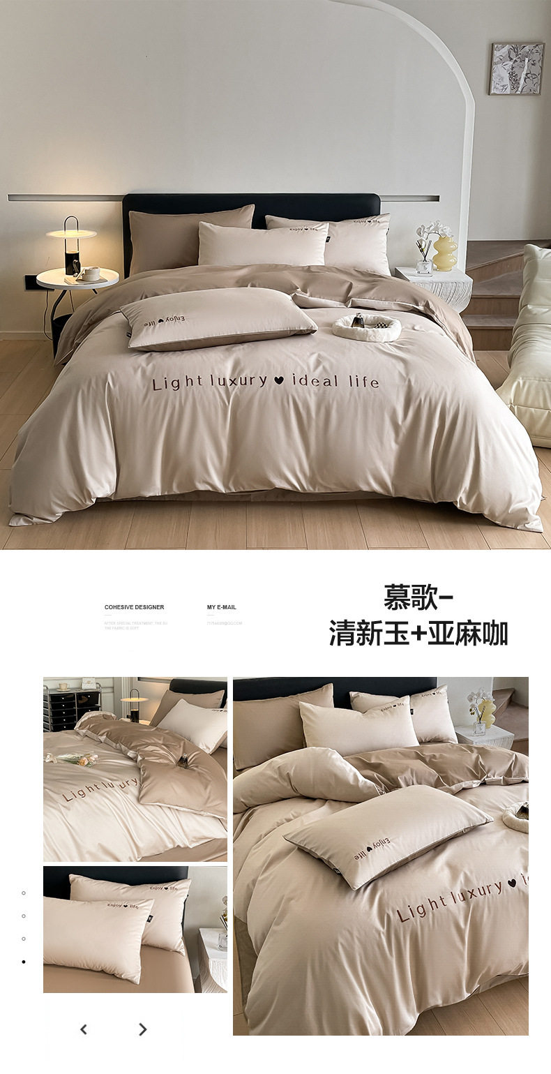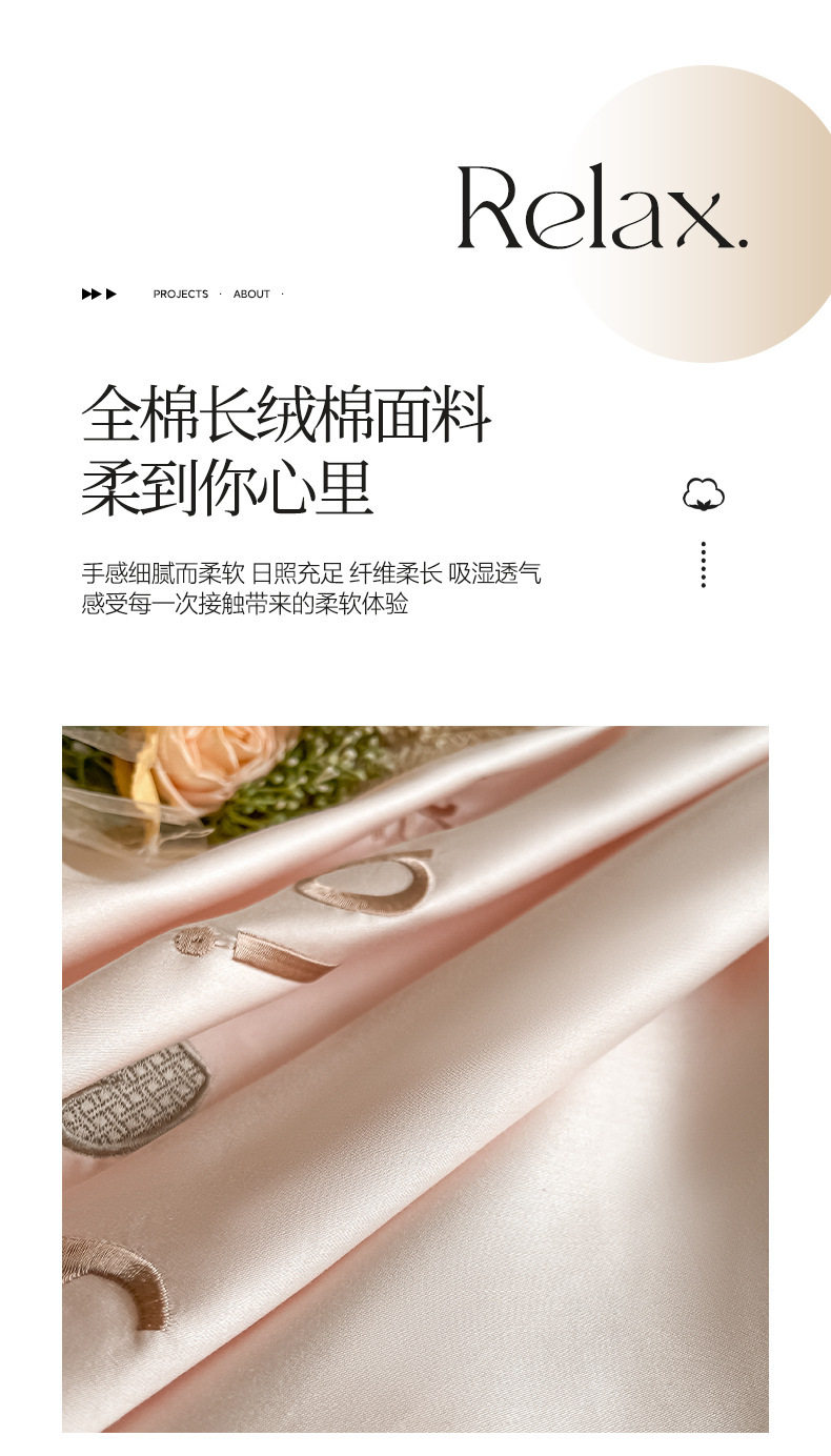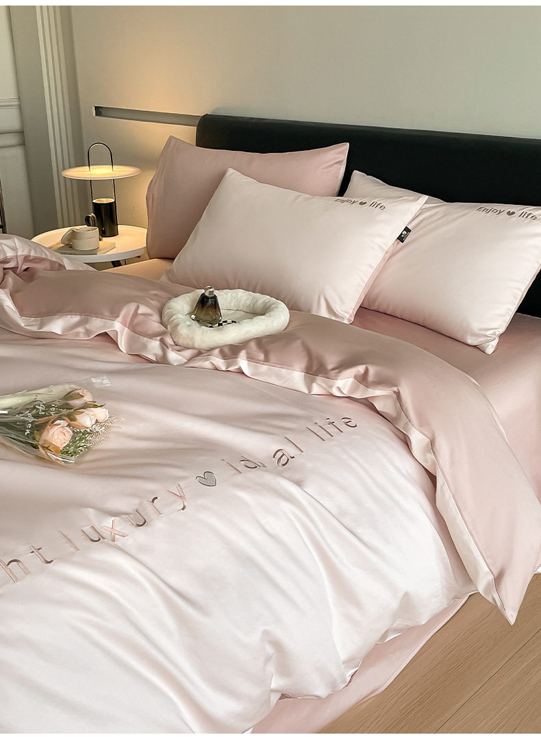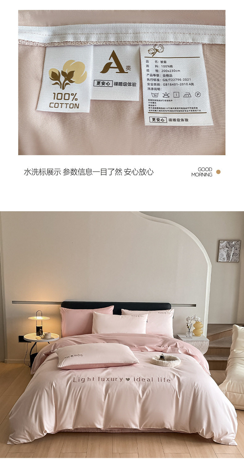 Category a Maternal and Infant Grade 120 Count Long-Staple Cotton Satin Four-Piece Set High-End Pure Cotton Embroidered Single Quilt Cover Bed Sheets and Fitted Bed Sheets