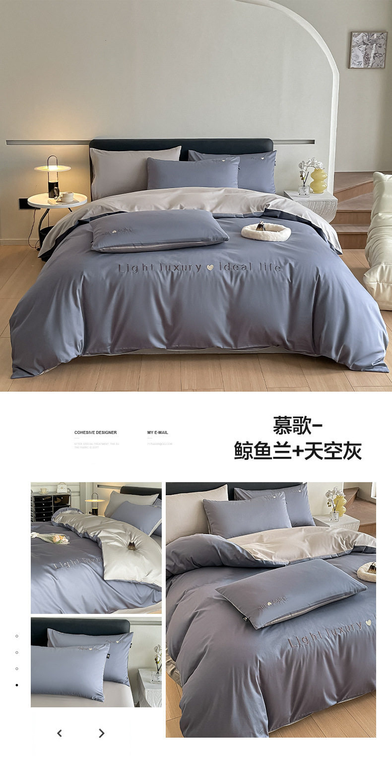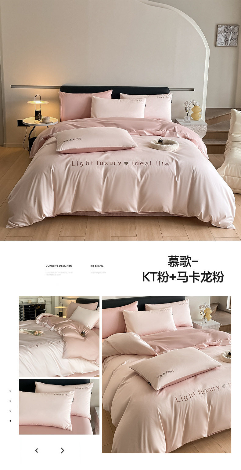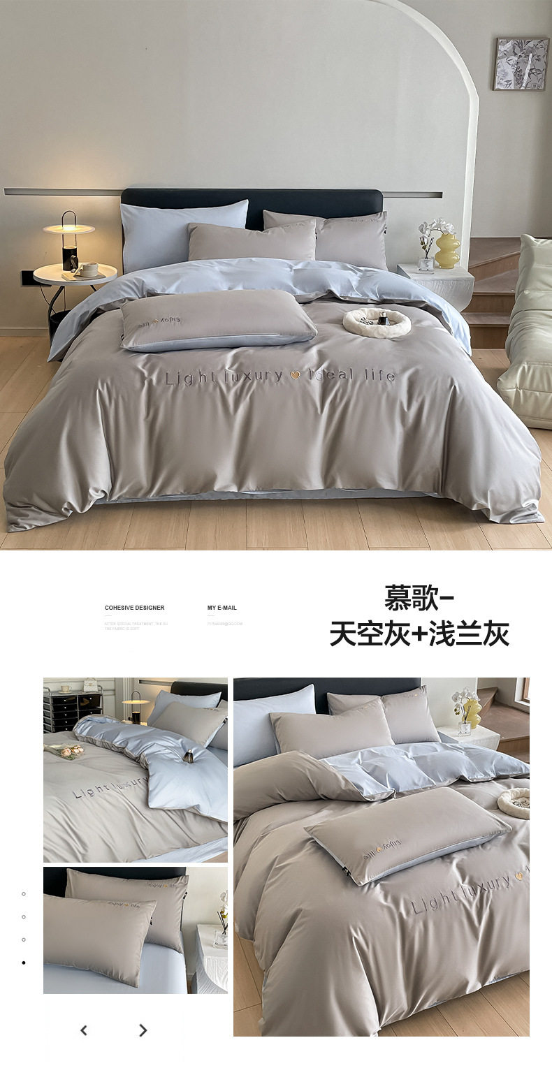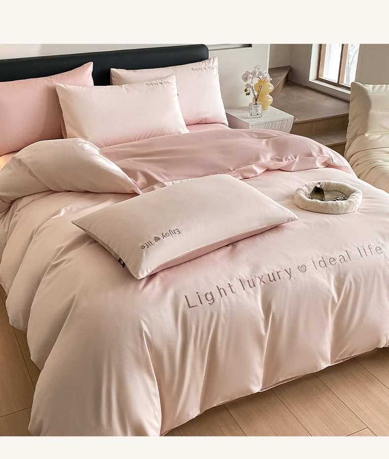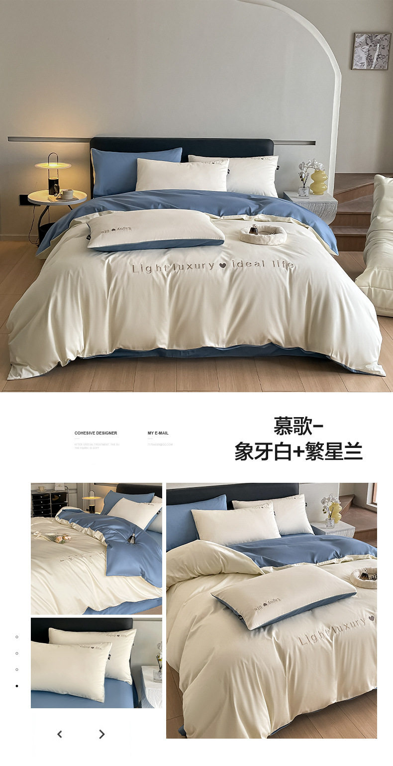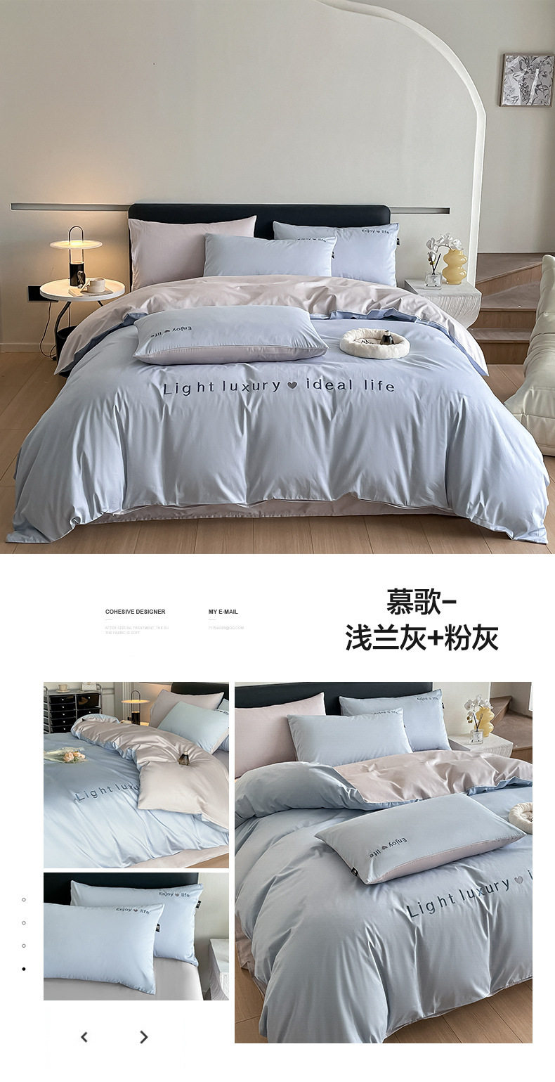 Category a Maternal and Infant Grade 120 Count Long-Staple Cotton Satin Four-Piece Set High-End Pure Cotton Embroidered Single Quilt Cover Bed Sheets and Fitted Bed Sheets
