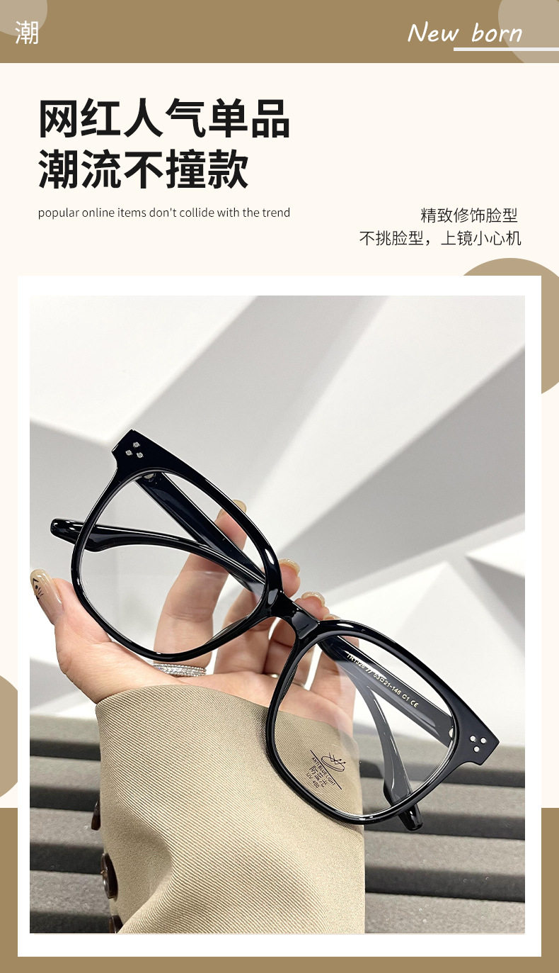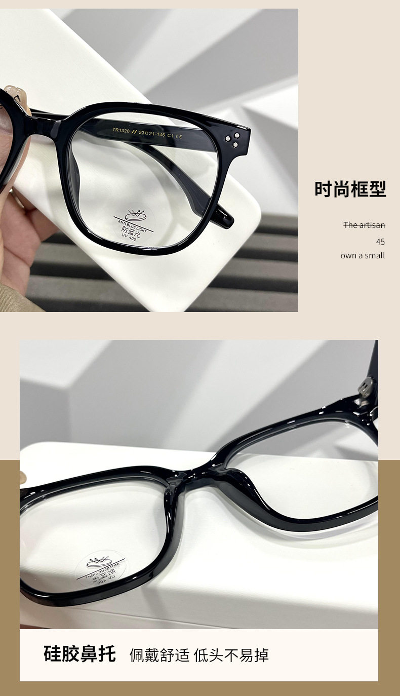 Mu Shi Nan 1326 Fashion Box TR90 Anti-Blue Light Myopia Frame Women's Korean Trendy Simple Flat Mirror Little Red Book