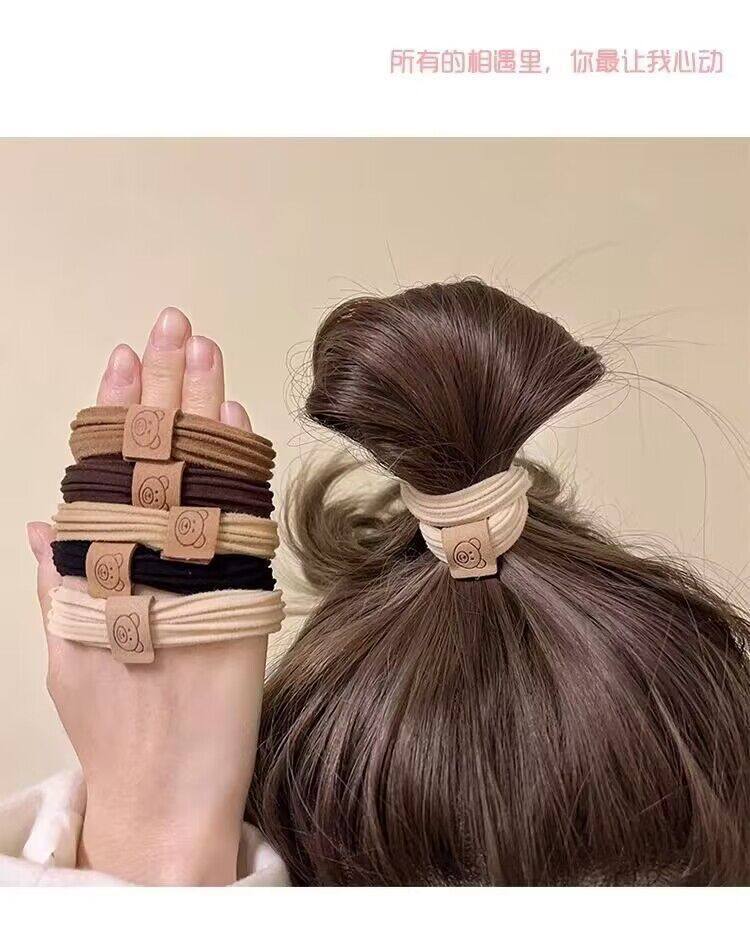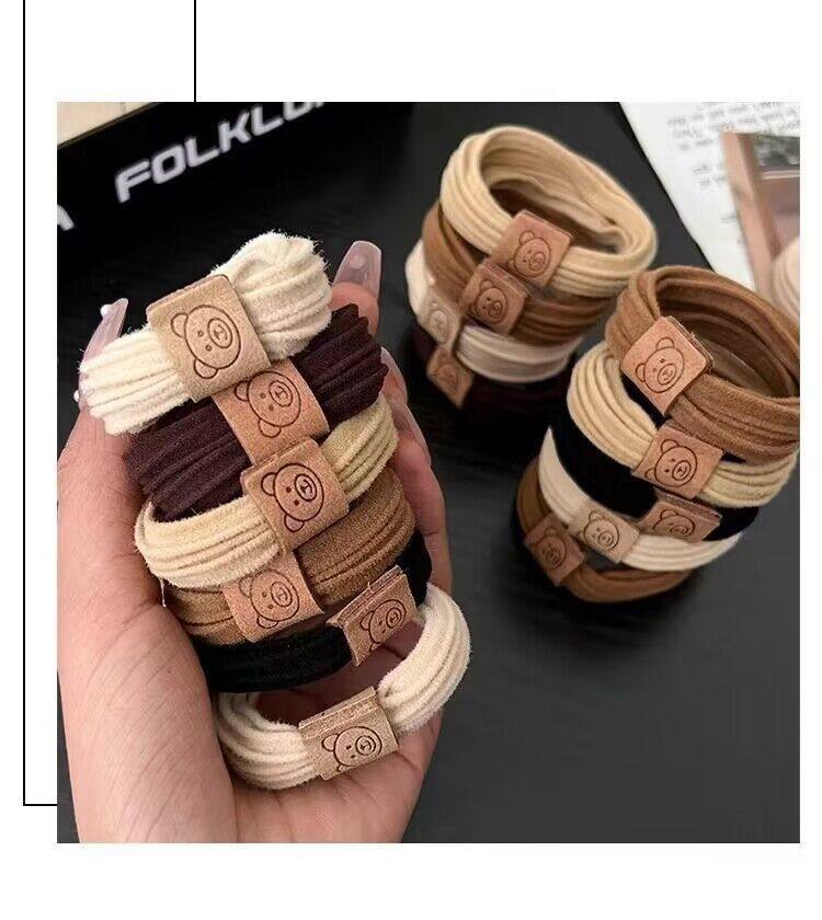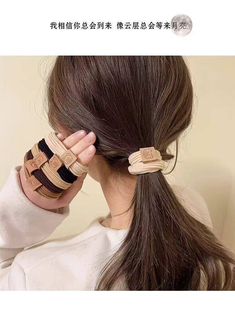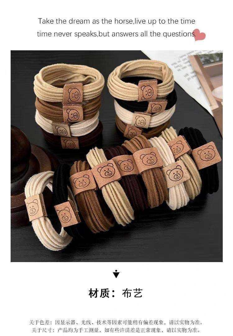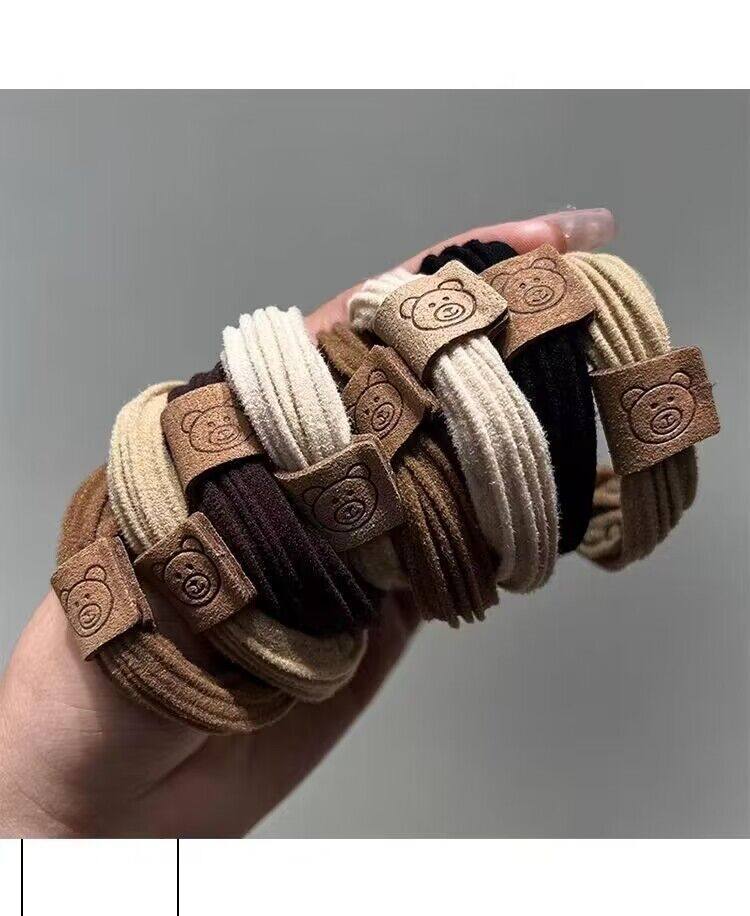 Fashion Cute Bear Head Rope High Elastic Rubber Tendon Women's Hair Rope New Style Hair Ring Durable Ball Headwear Leather Cover