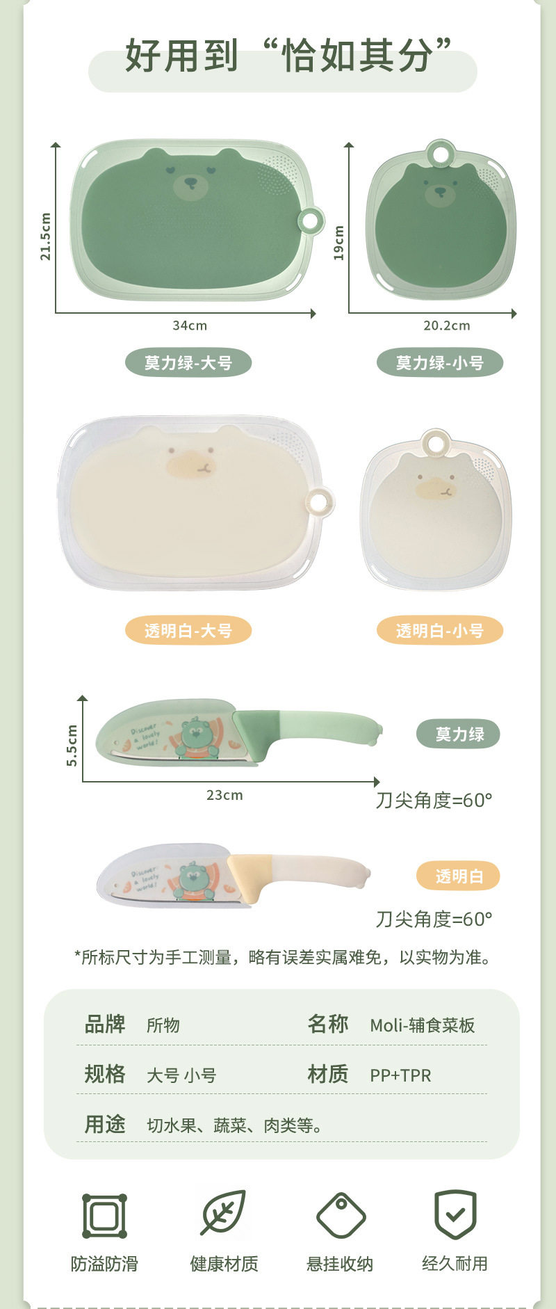 Food-Grade Cutting Board, Household Non-Slip Chopping Board, Small Cutting Board Set, Baby Food Supplement, Small Fruit Knife Set, Antibacterial for Fruits and Vegetables