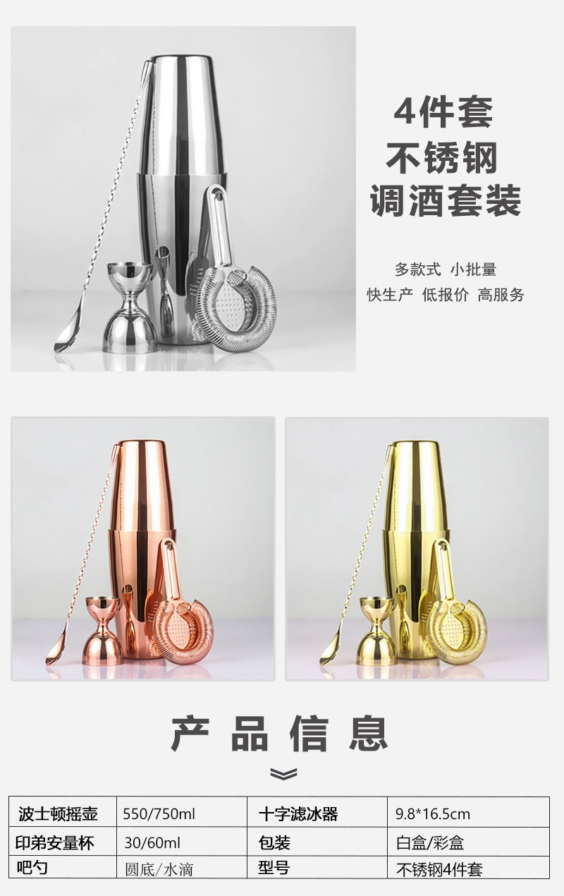 Cross-border Amazon Stainless Steel Cocktail Shaker suit 4-piece Cocktail Boston Shirk Cup Bartending Tool