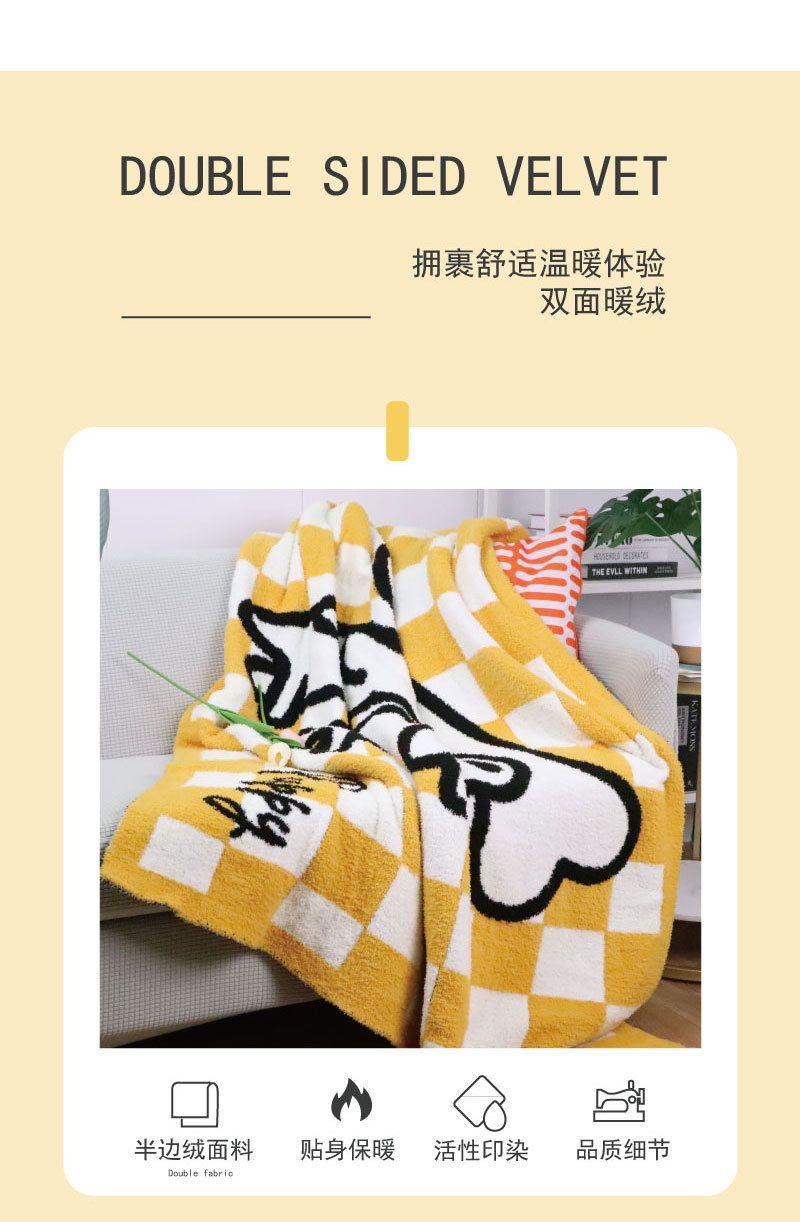 Puppy Half-Velvet Sofa Blanket Air-Conditioned Room Warm Shawl Blanket Office Nap Simple Knitted Thread Blanket Blanket