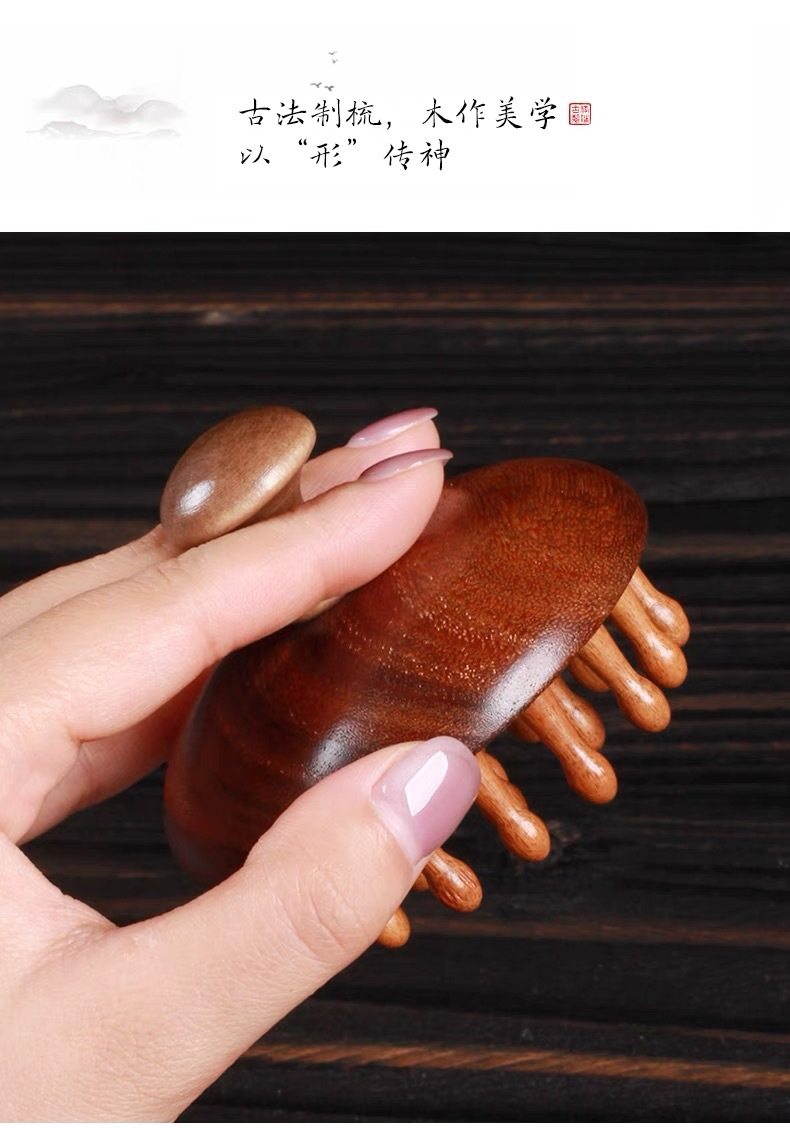 Golden sandalwood disc 28 tooth massage comb scalp massage comb recuperation health body dredge sandalwood meridian comb wholesale