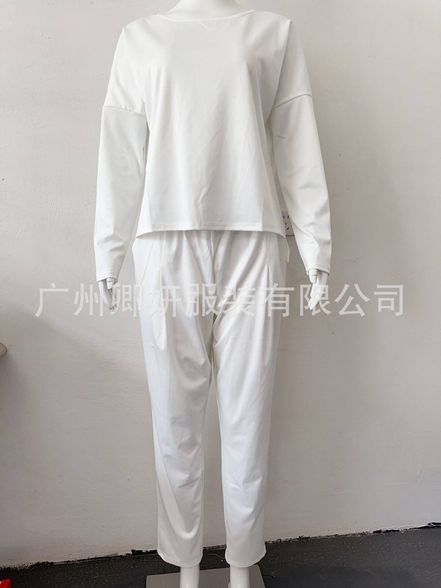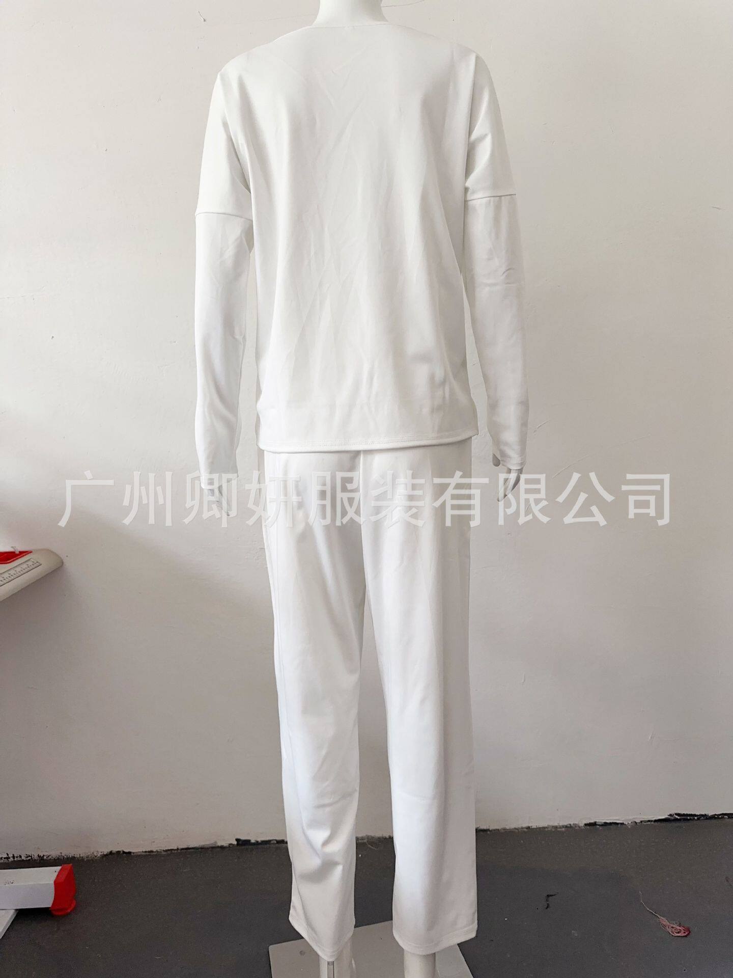 2024 New European and American Cross-Border Foreign Trade Women's Solid Color Round Neck Long Sleeve Suit Women's Pocket Pants Trousers Women