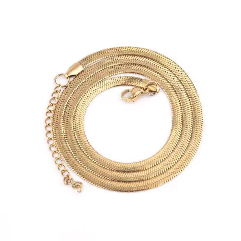 Cross-border European and American titanium steel blade chain flat snake bone chain hip hop stainless steel vacuum gold plated men's necklace clavicle chain