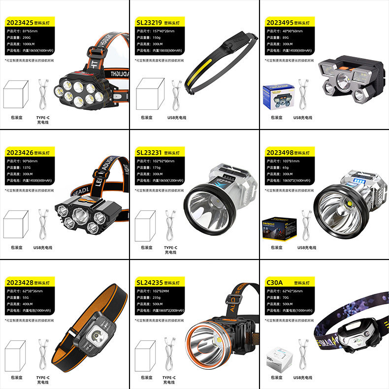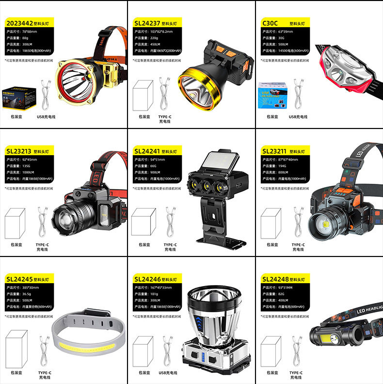 | Color | Strong headlamp+usb charging+h201l,Strong headlamp+usb charging+2023426,High-intensity headlamp + p50 led chip + rechargeable model + 18650 battery * 2 - 2023439,Strong headlight+p50 battery+type-c charging+18650 battery*2-js23206,Strong headlamp+gold+usb charging cable+2023495,Strong headlamp + gray + usb charging cable +2023495,Strong headlight + white light + type-c charging-2023498,High-intensity headlamp + motion sensor + t6 led + dc charging cable + 18650 battery * 2 + t3g,Strong headlight+18650*2+dc charging cable-2023405,Strong headlamp + usb charging + sl24247,White laser headlight+type-c charging cable+18650 battery*2+js24210,Strong headlight + type-c charging + 18650 battery - js24213,Strong headlight+type-c charging+2023404 |