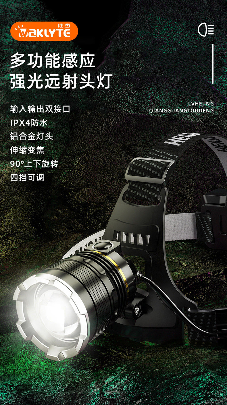 Cross-Border Sea-Catching Headlight, Long-Life Flashlight, Strong Light Head-Mounted Sensor Led Headlight, Outdoor Fishing Headlight, Sensor Light