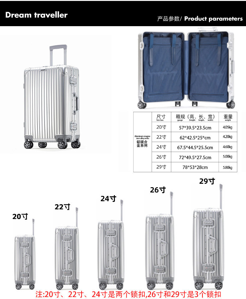 | 3 | Cross-border all-aluminum magnesium alloy pull rod suitcase women's 24inch business travel suitcase men's metal password box boarding case |