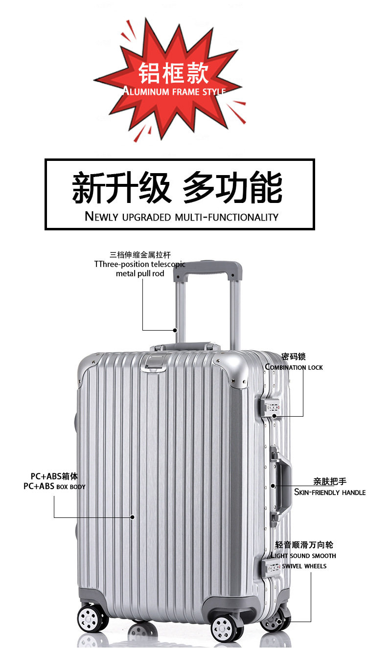 | 2 | Full box bag aluminum magnesium alloy pull rod box female metal suitcase male 20inch boarding case suitcase password box 24 |