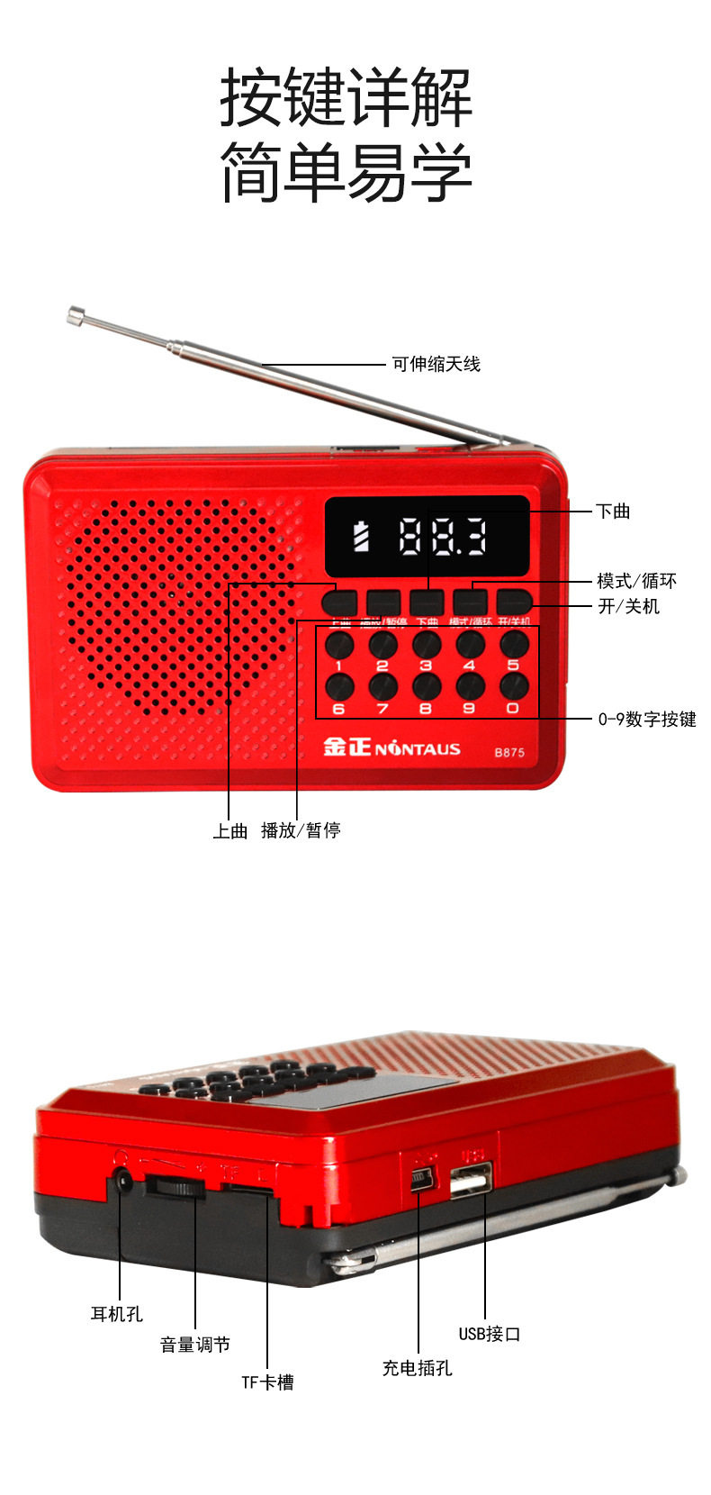 Jin Zheng B875 Bluetooth pluggable card speaker for the elderly mini radio singing machine small speaker player