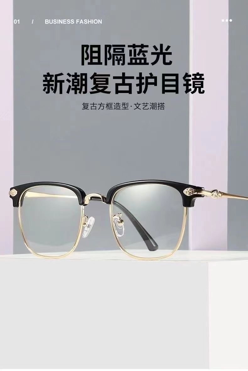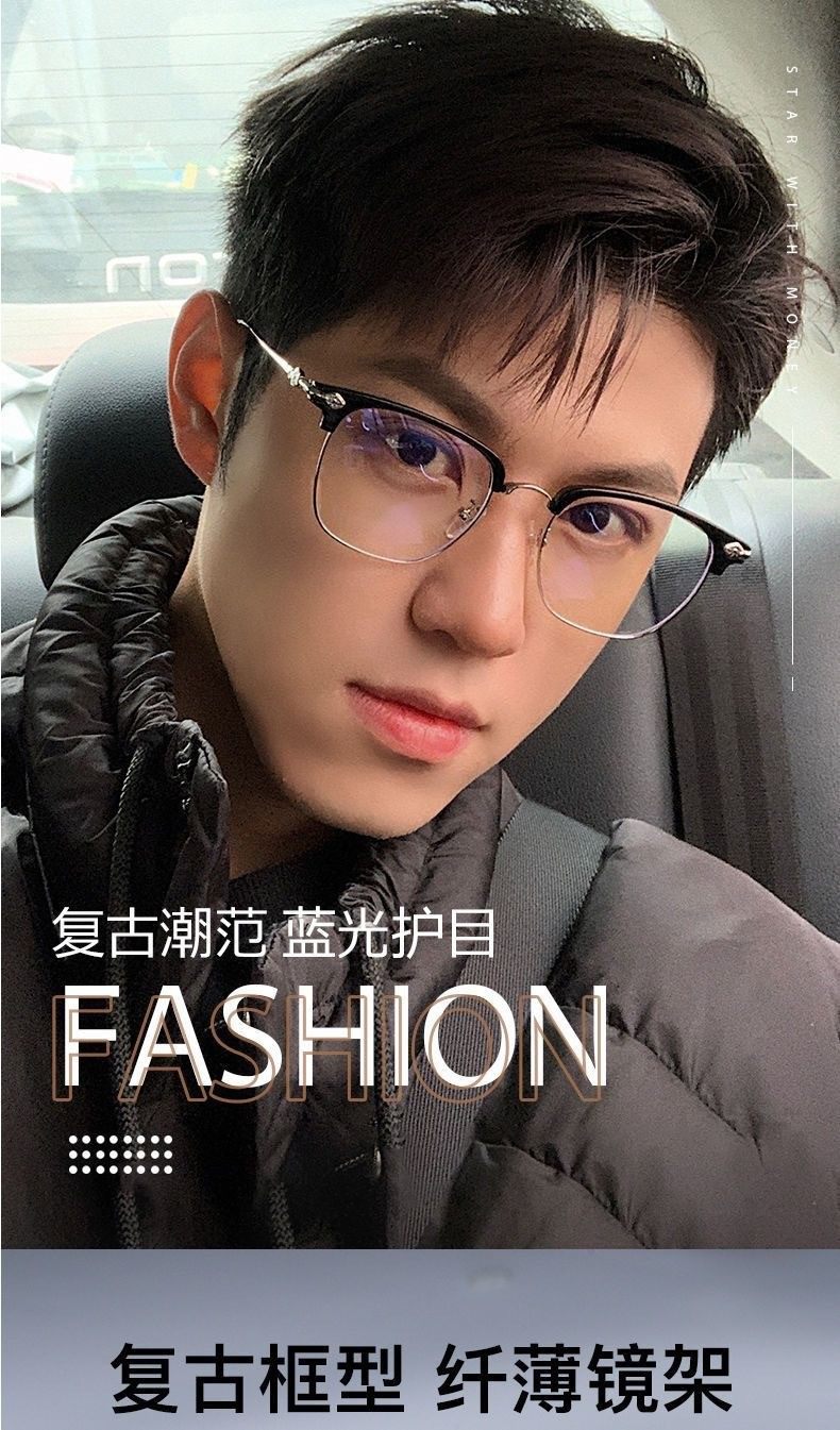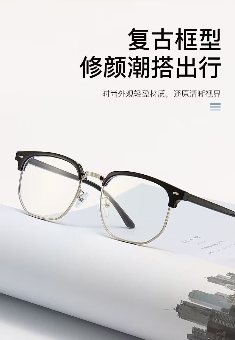 Men's Korean Style Presbyopic Glasses Anti-blue Light Auto-zoom Ultra-light High-definition Glasses Fashionable Eyebrows Half-frame Myopia Glasses