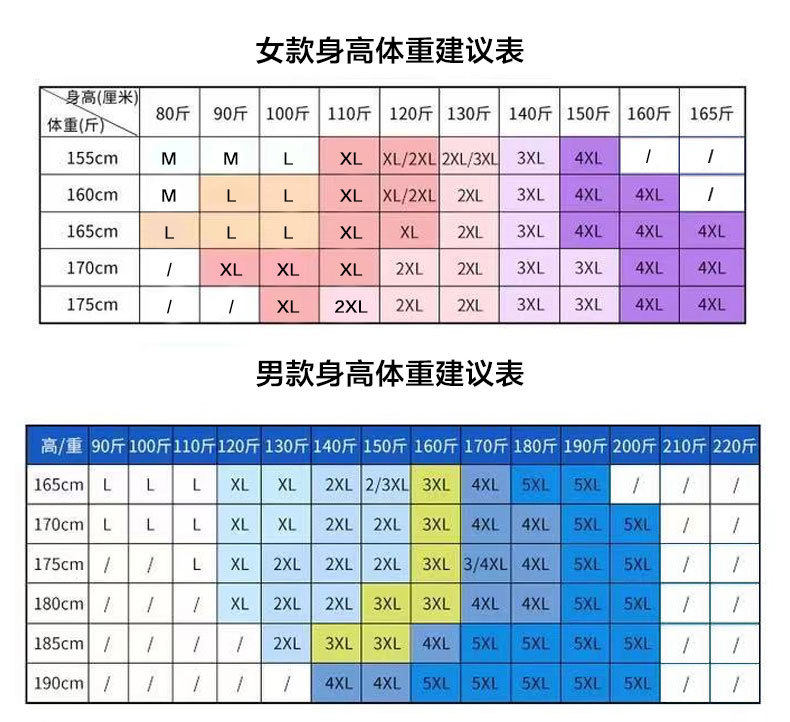 | Size | M [female model only],L,XL,2XL,3XL,4XL,5XL [men's style only] |