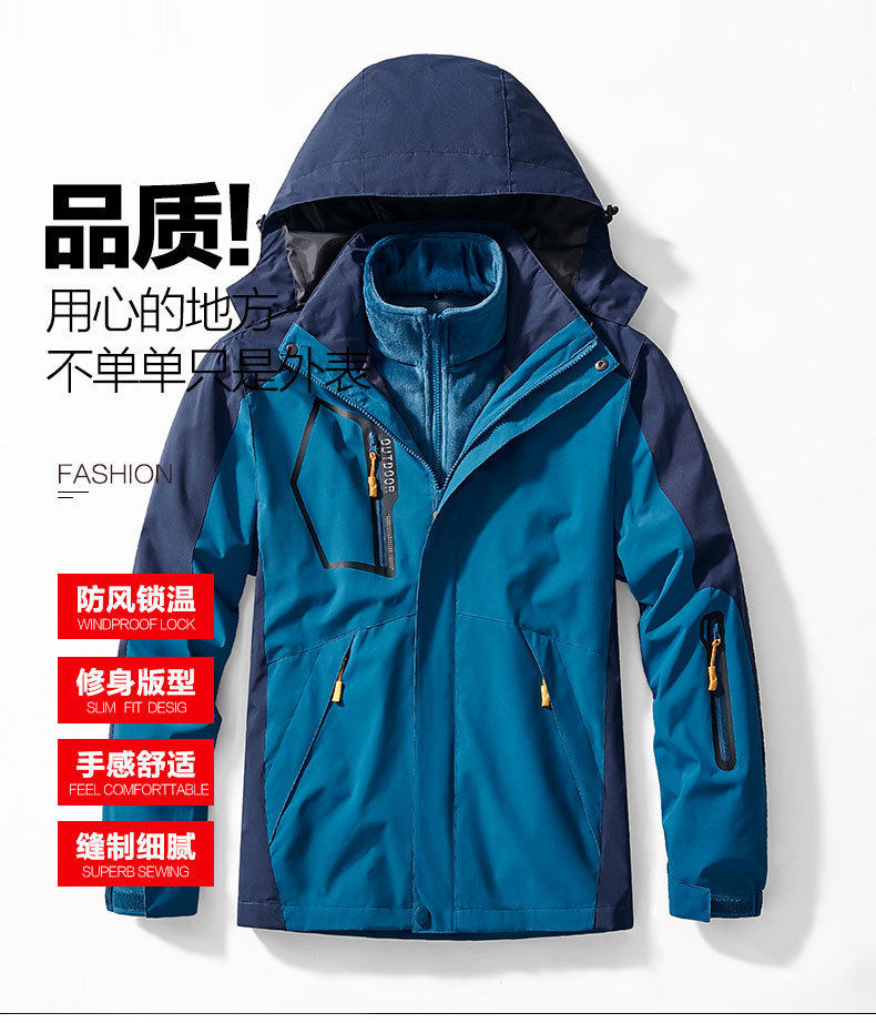 2024 outdoor jackets men's new three-in-one detachable women's fleece-lined thickened autumn and winter mountaineering overalls