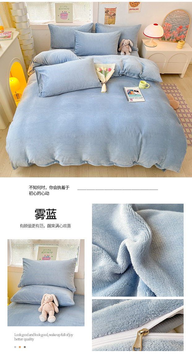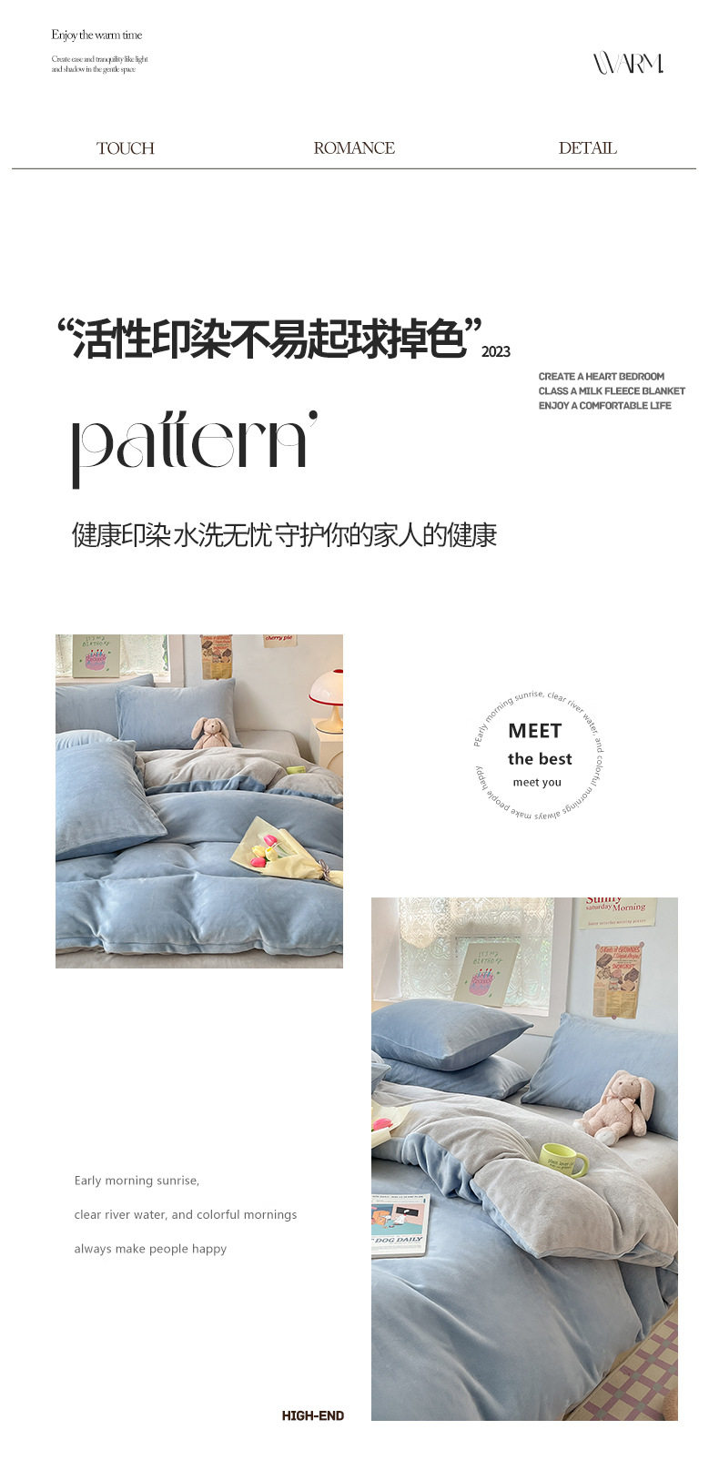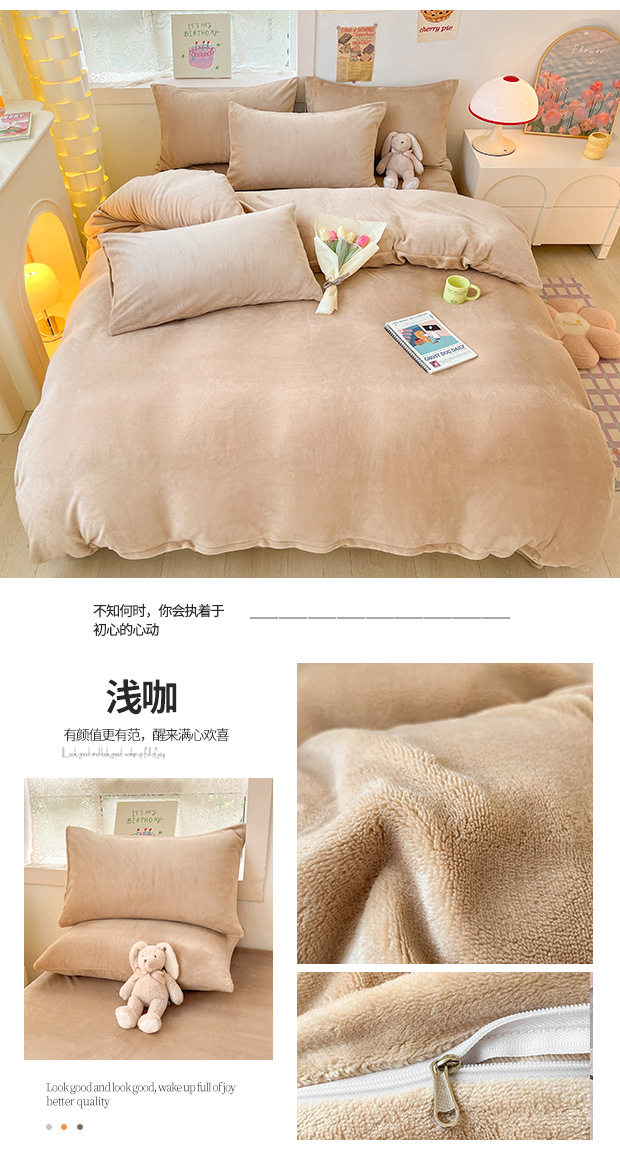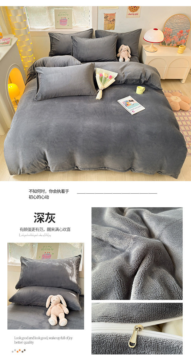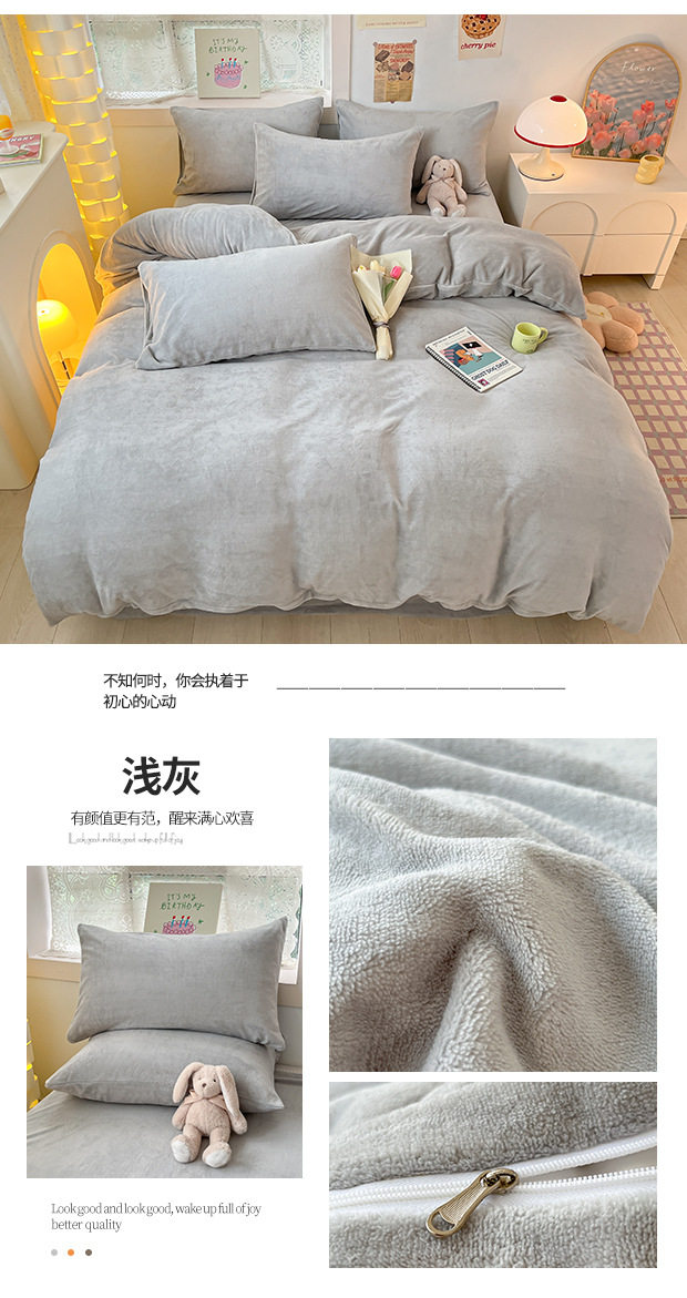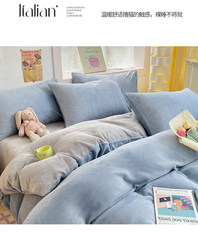 Minimalist Ins Thickened Winter Milk Velvet Bedding Four-Piece Set Duvet Cover Bed Sheet Fitted Sheet Flannel Three-Piece Set