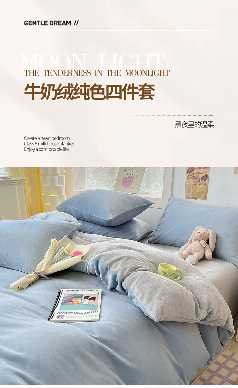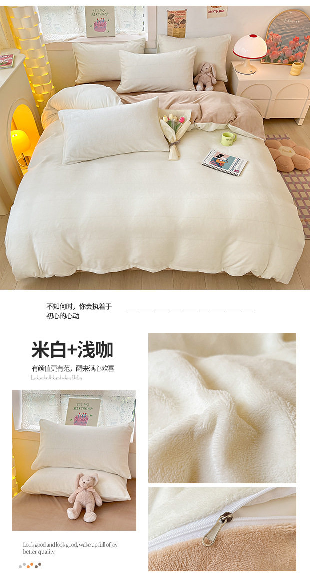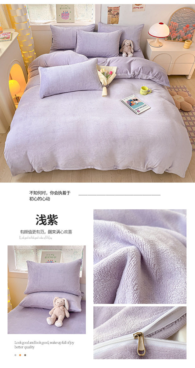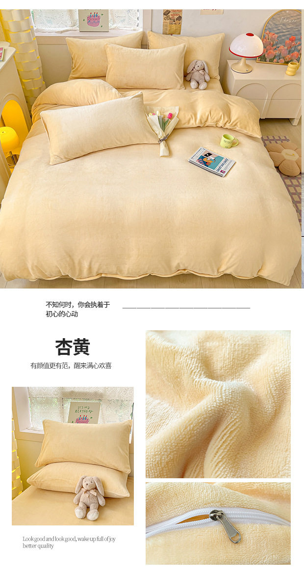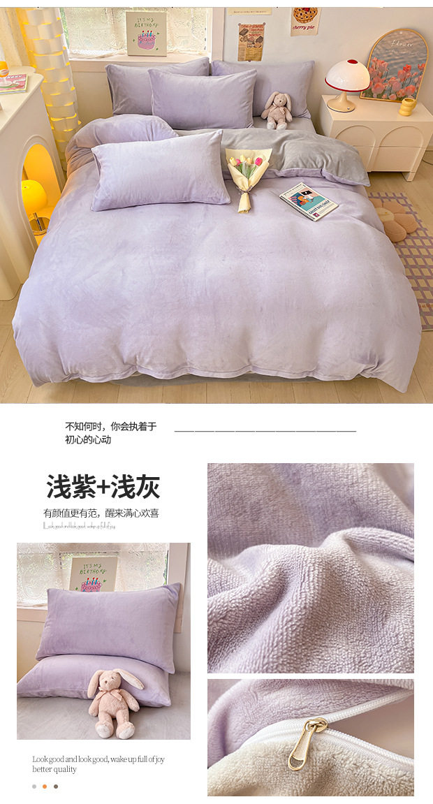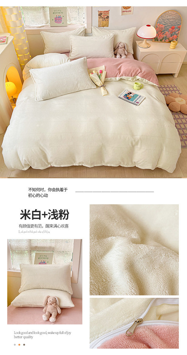 Minimalist Ins Thickened Winter Milk Velvet Bedding Four-Piece Set Duvet Cover Bed Sheet Fitted Sheet Flannel Three-Piece Set