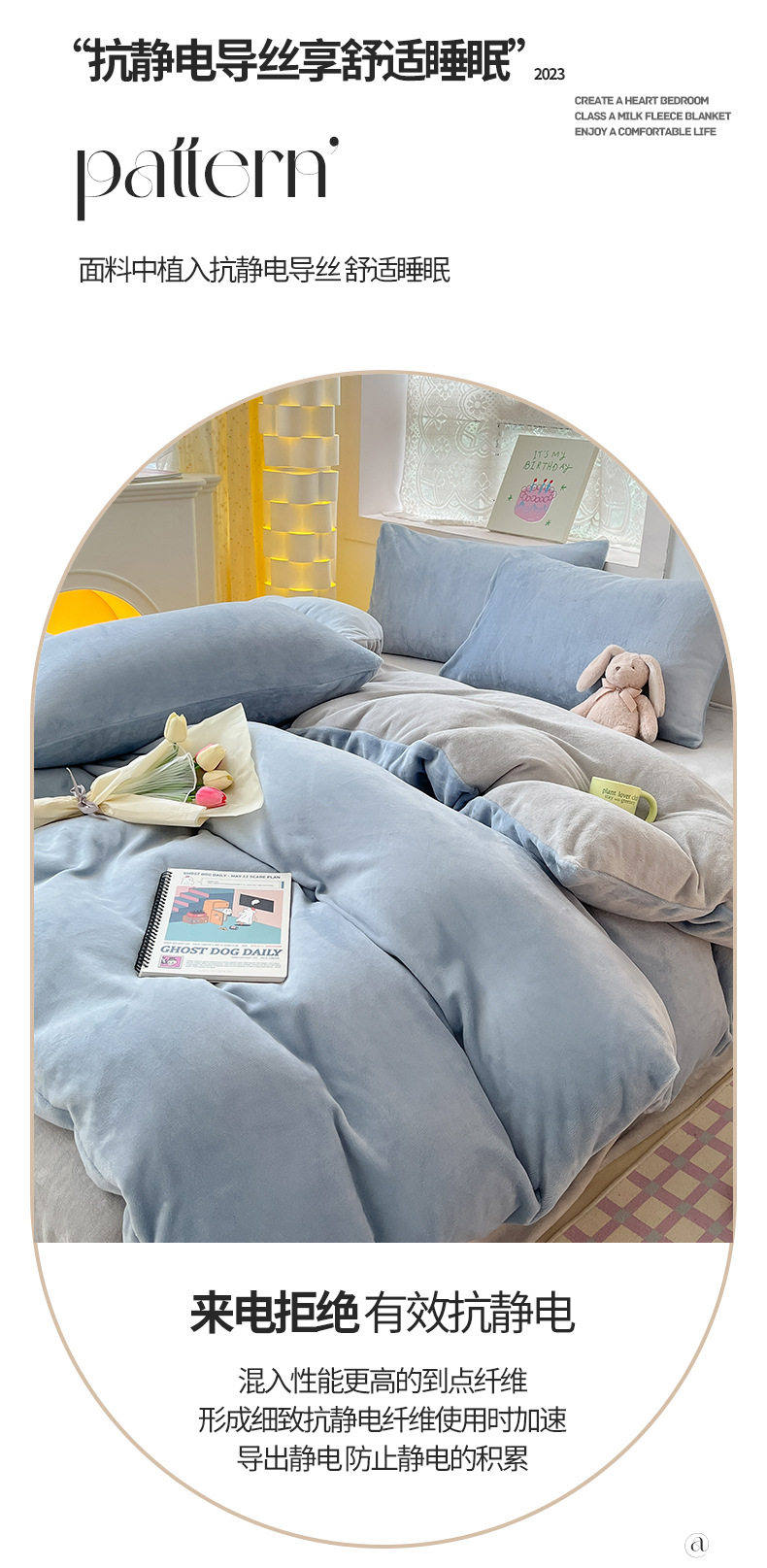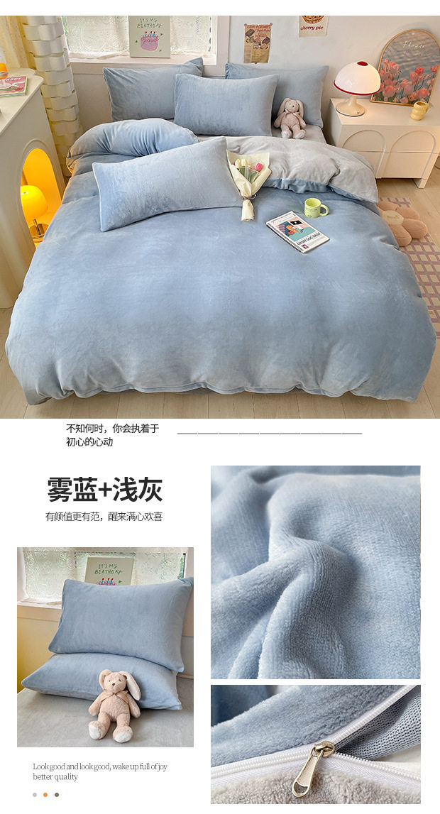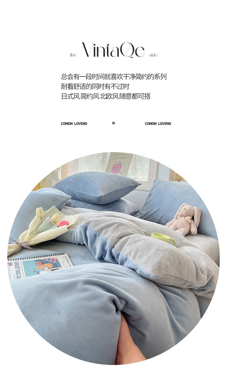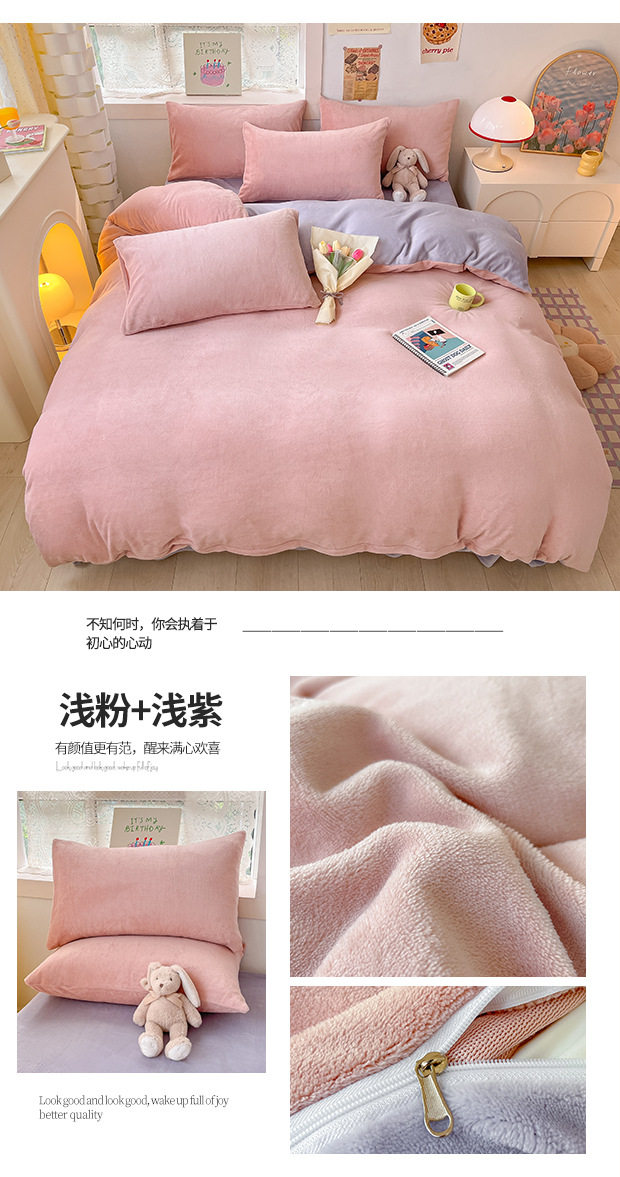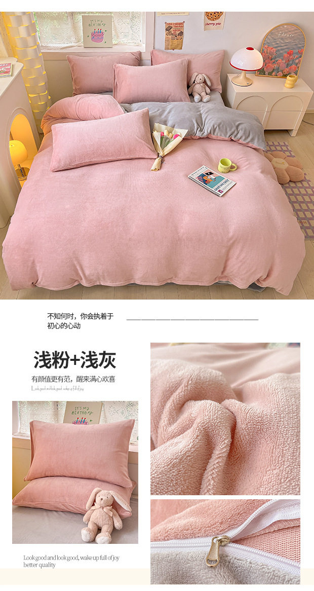 Minimalist Ins Thickened Winter Milk Velvet Bedding Four-Piece Set Duvet Cover Bed Sheet Fitted Sheet Flannel Three-Piece Set
