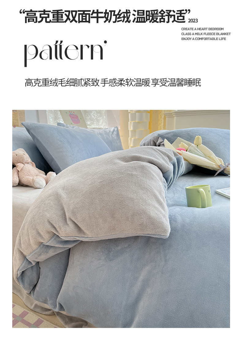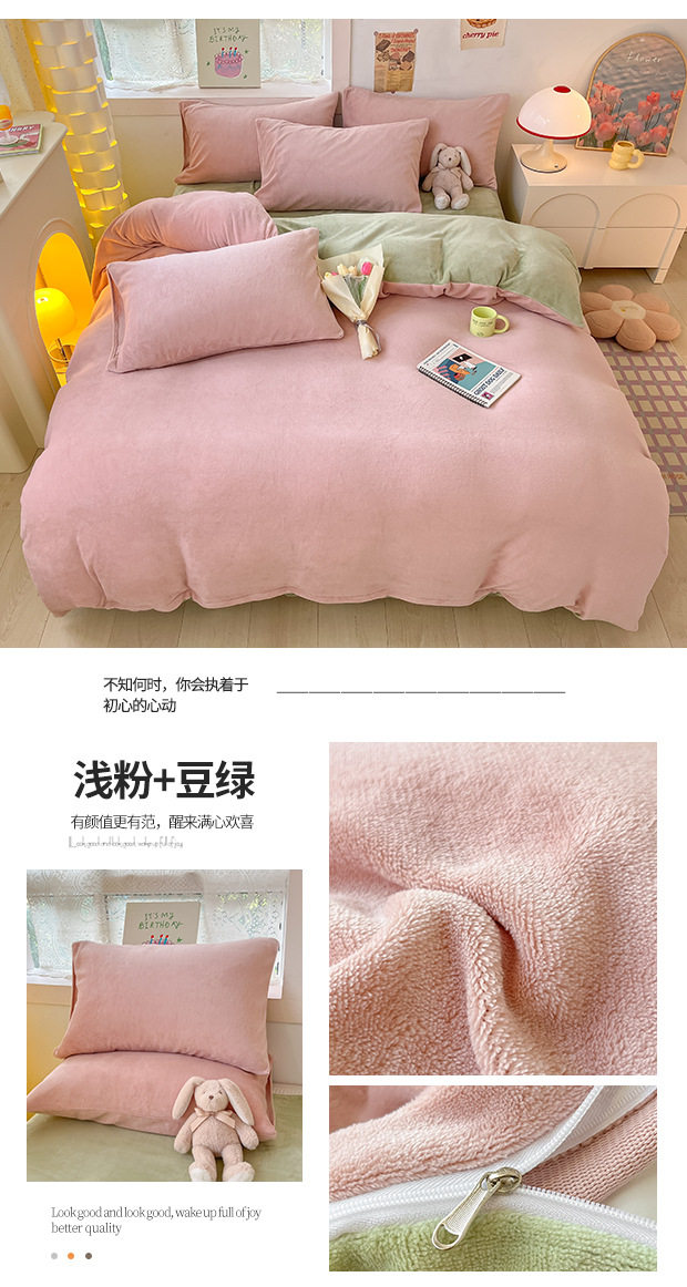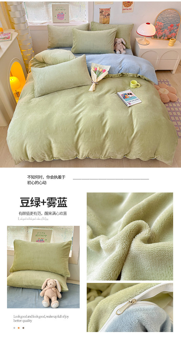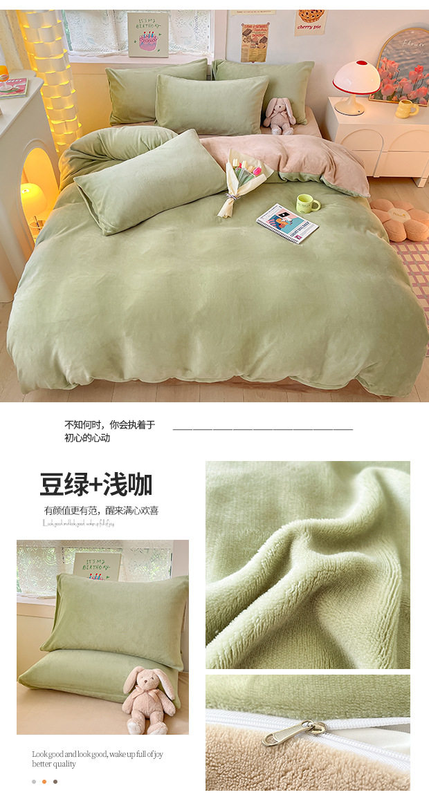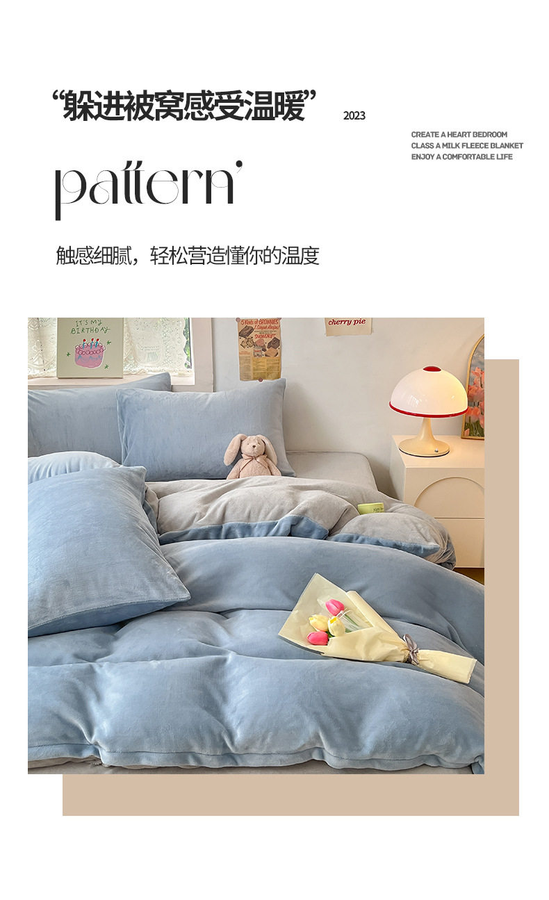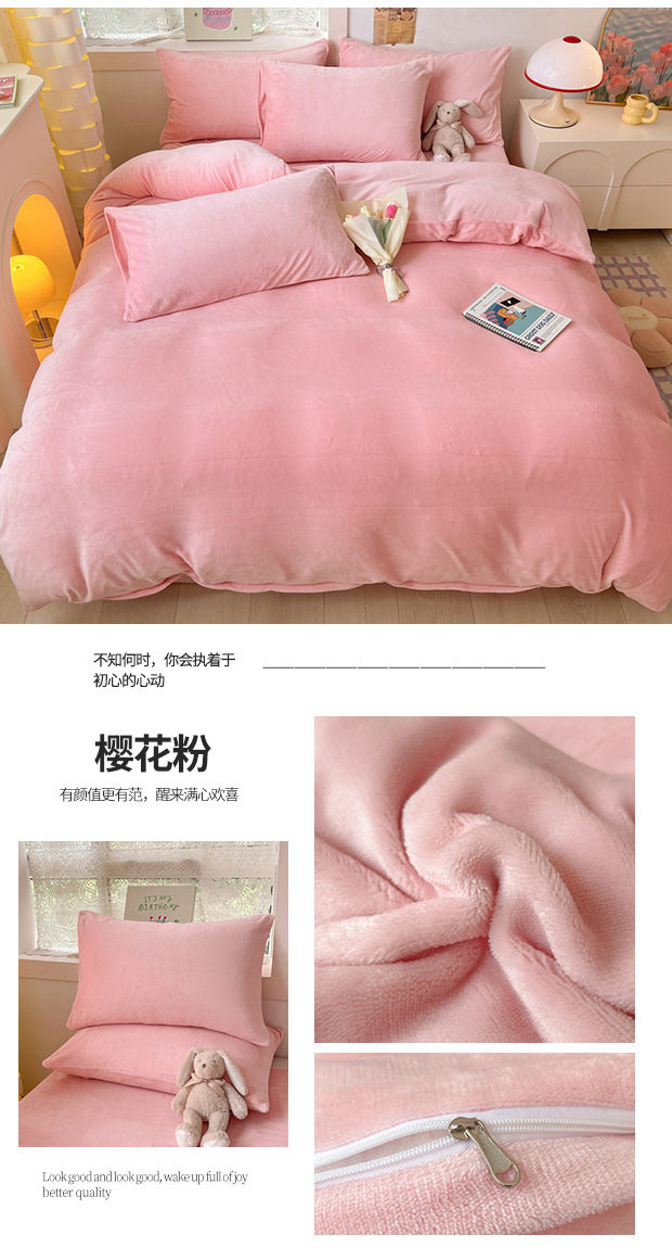 Minimalist Ins Thickened Winter Milk Velvet Bedding Four-Piece Set Duvet Cover Bed Sheet Fitted Sheet Flannel Three-Piece Set
