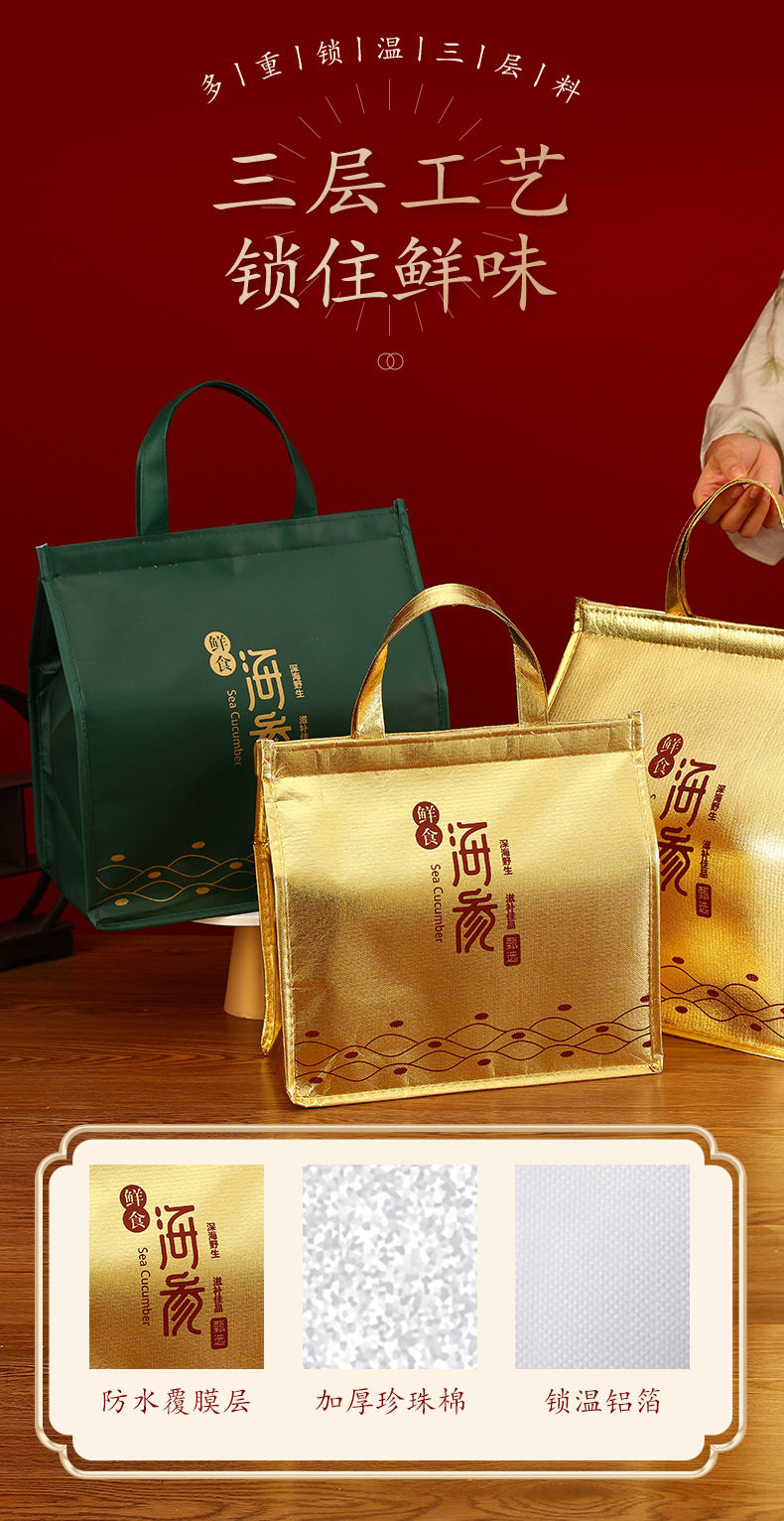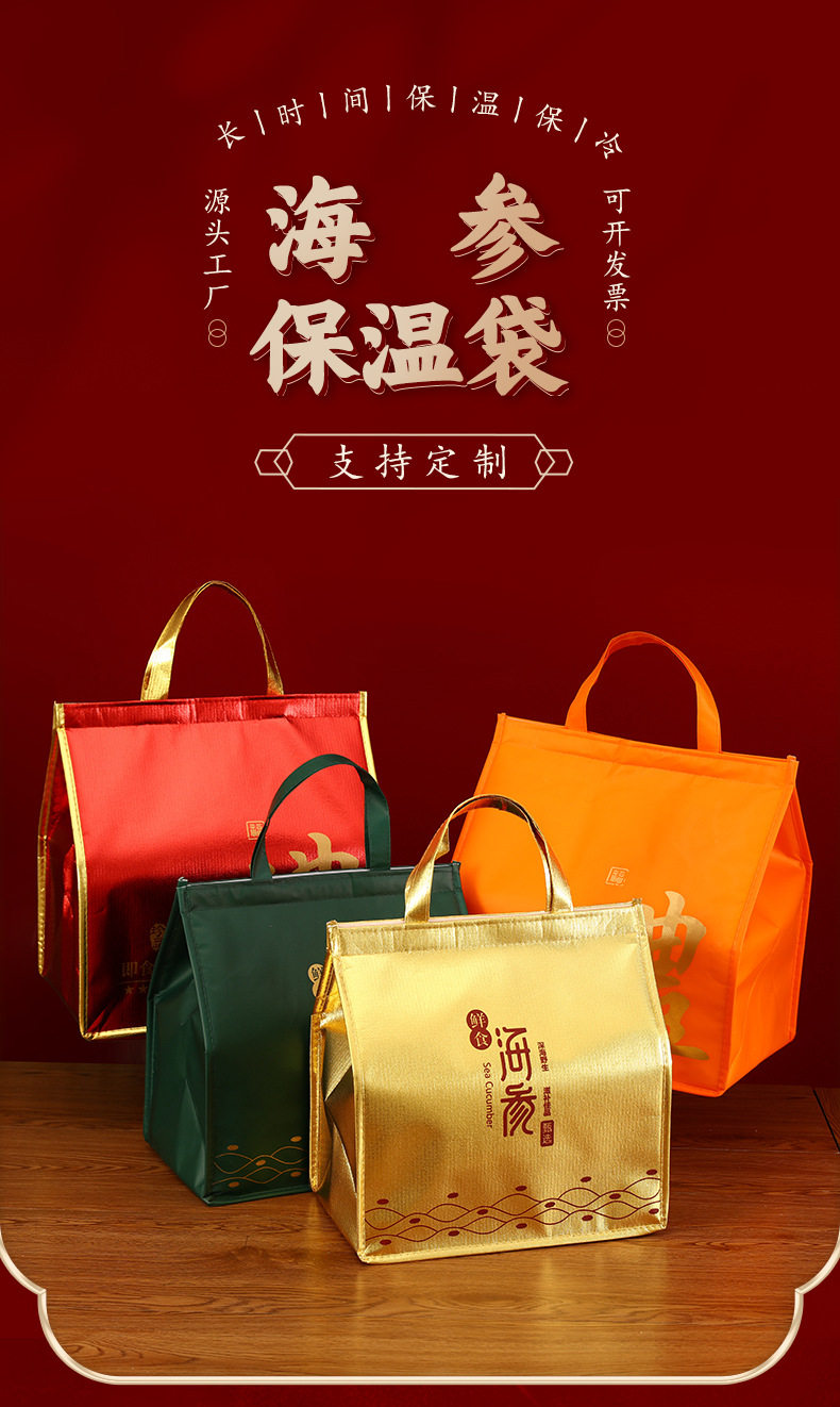in stock Thickened Large Capacity Sea Cucumber Aluminum Foil Insulation Bag Support Customized Non-woven Fabric Food Preservation Portable Refrigerator Bag