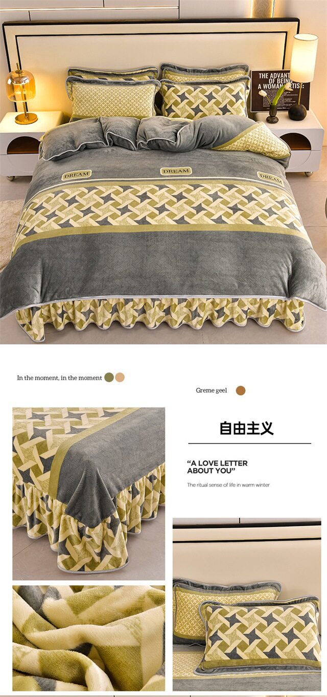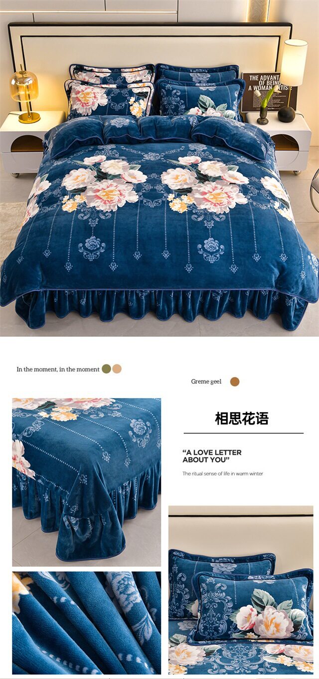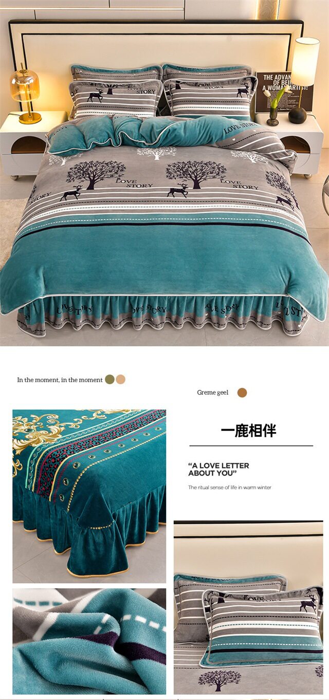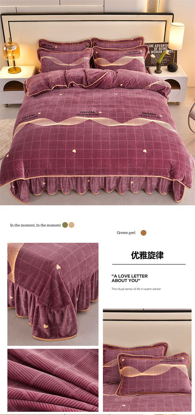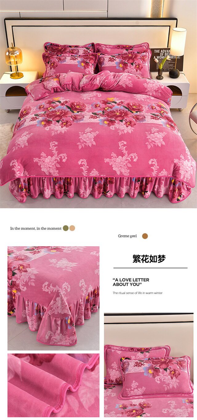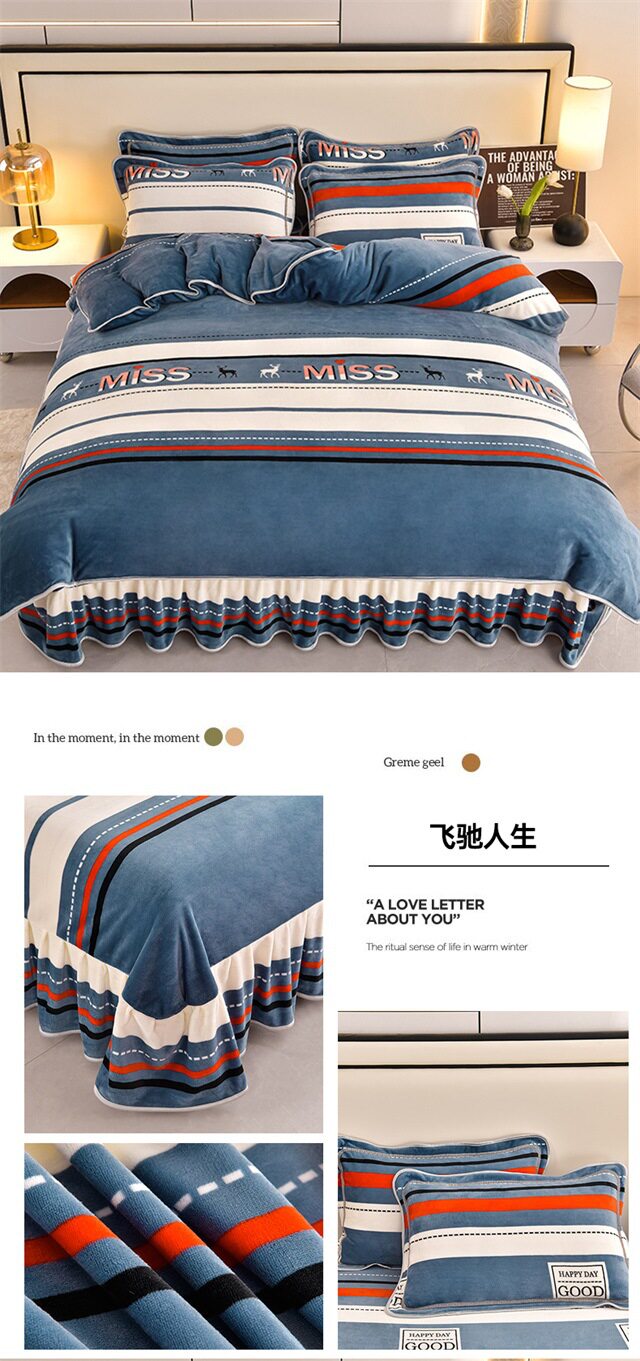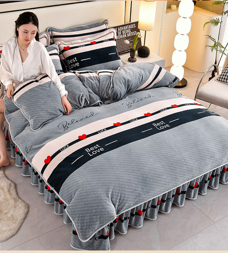 Live Broadcast Hot Item 4kg Milk Velvet Four-Piece Bedding Set for Double Bed, Thickened and Fleece-Lined for Warmth, Non-Shedding and Non-Pilling