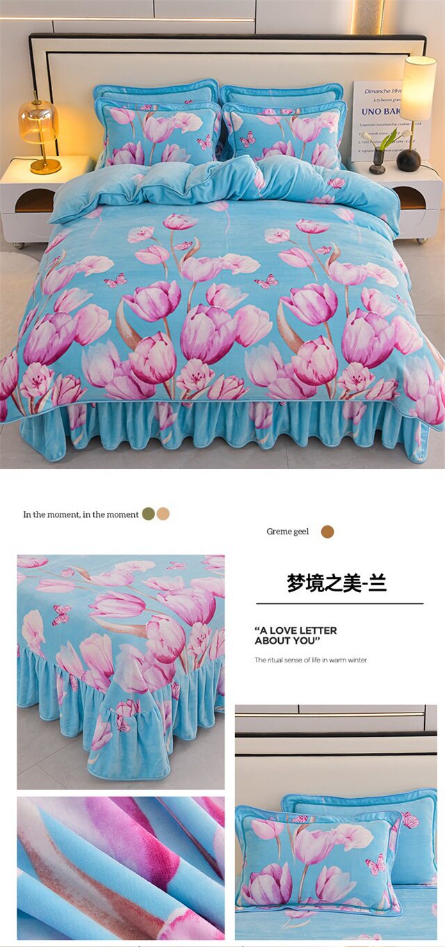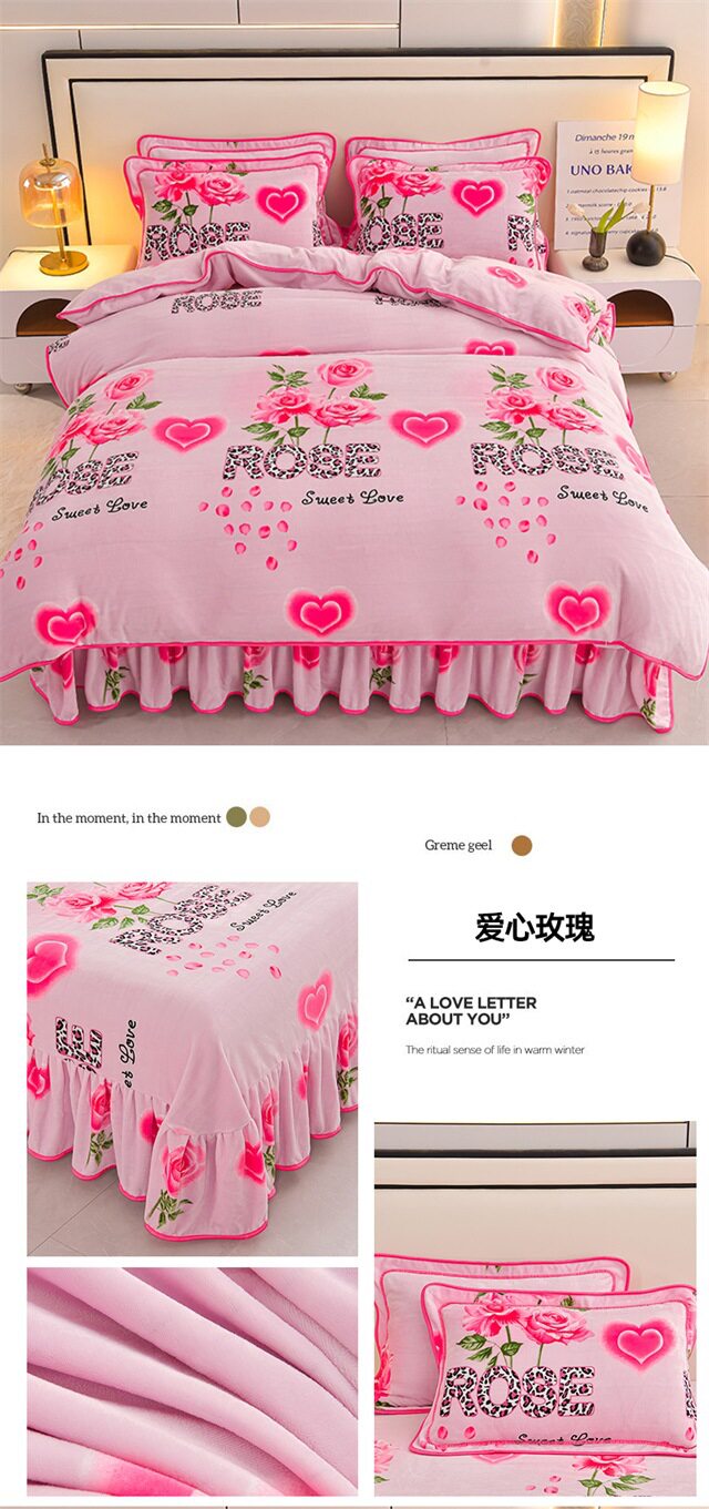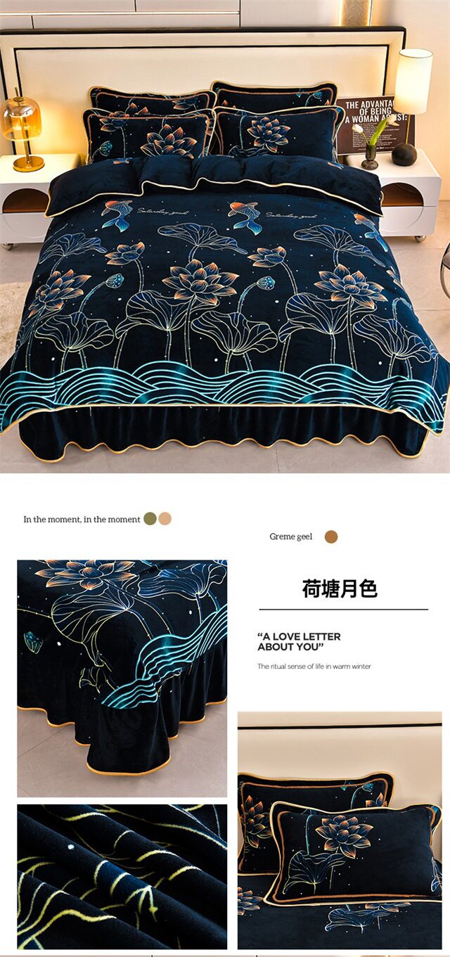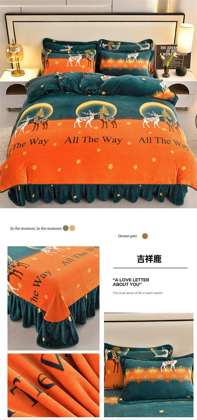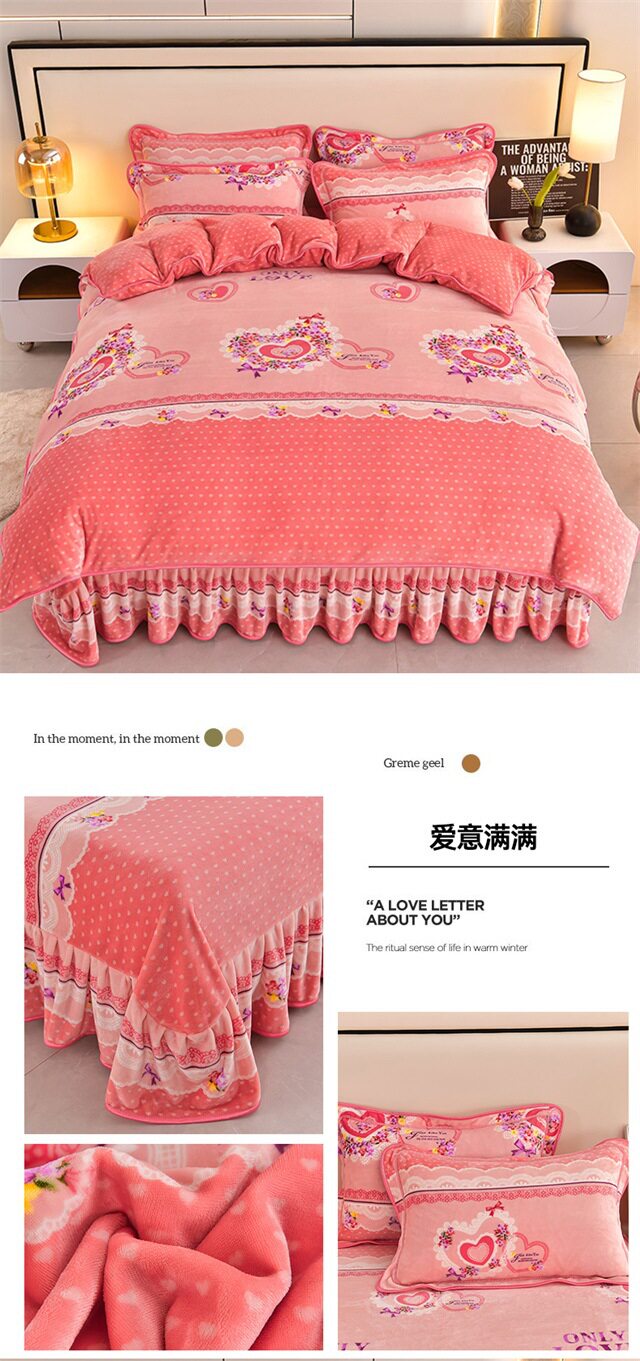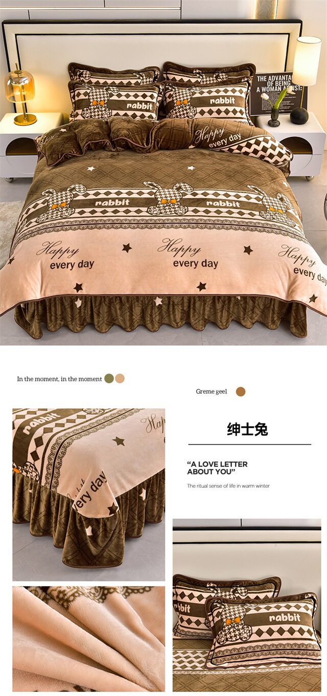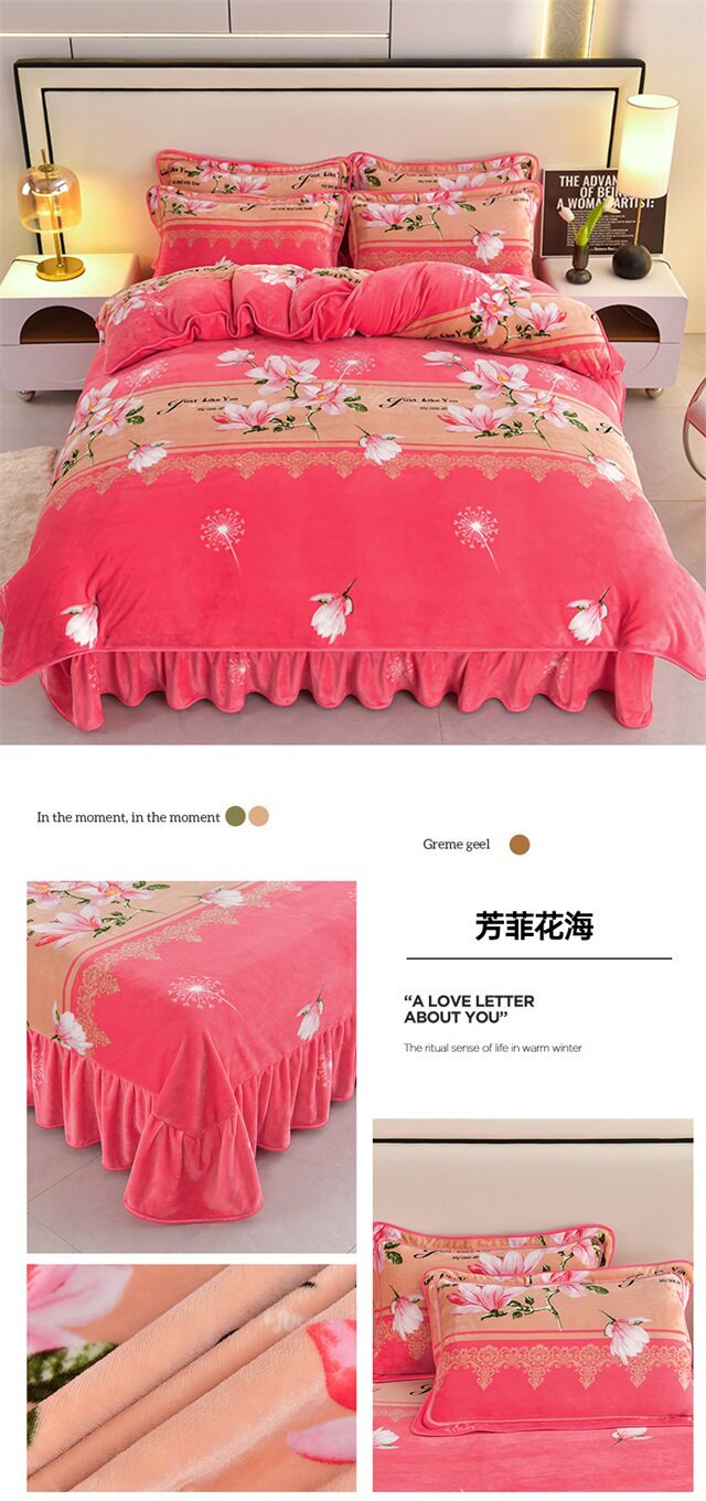 Live Broadcast Hot Item 4kg Milk Velvet Four-Piece Bedding Set for Double Bed, Thickened and Fleece-Lined for Warmth, Non-Shedding and Non-Pilling