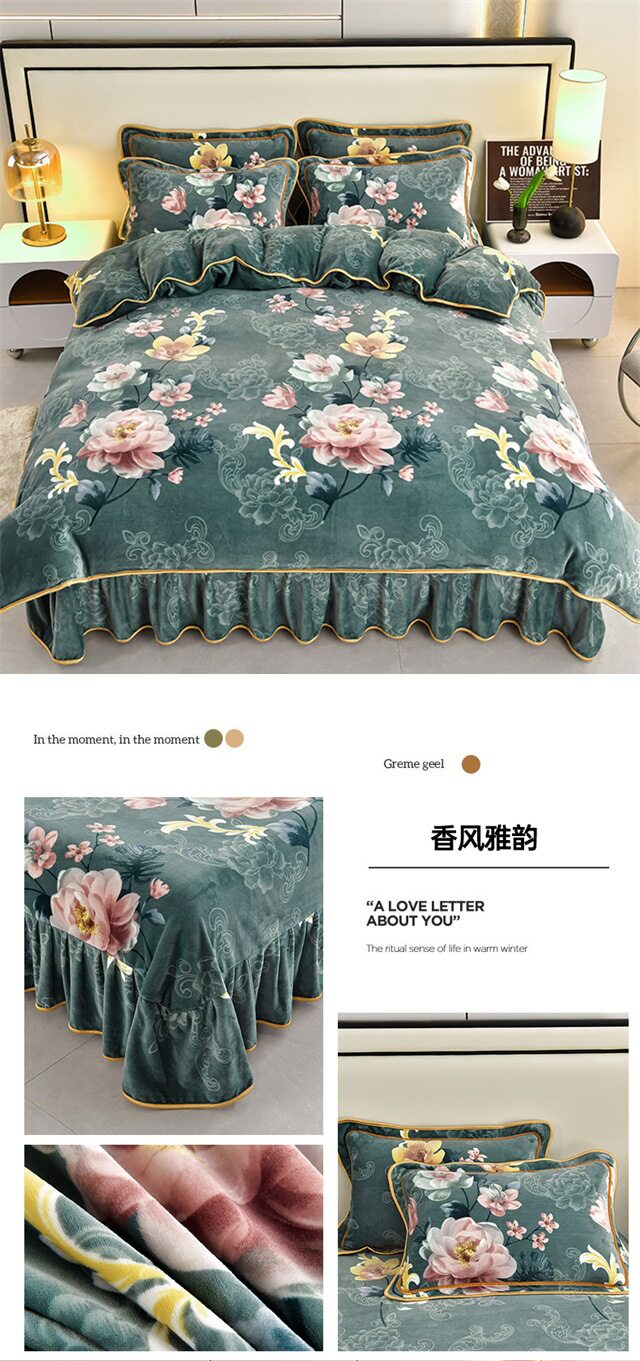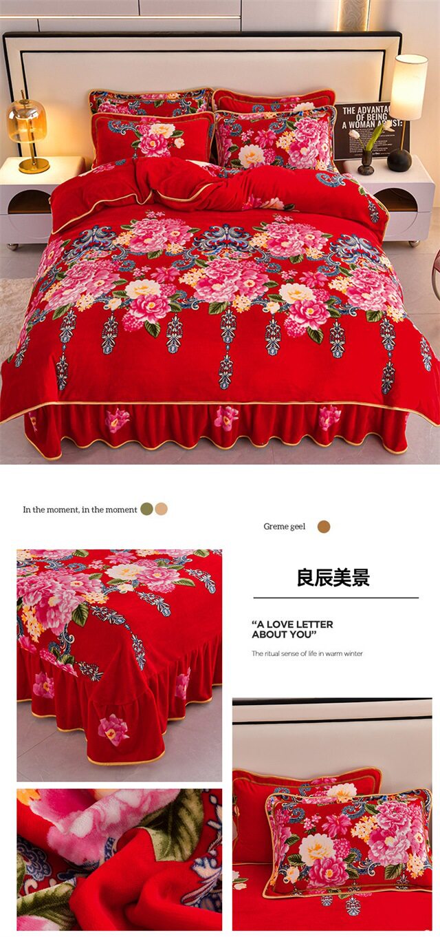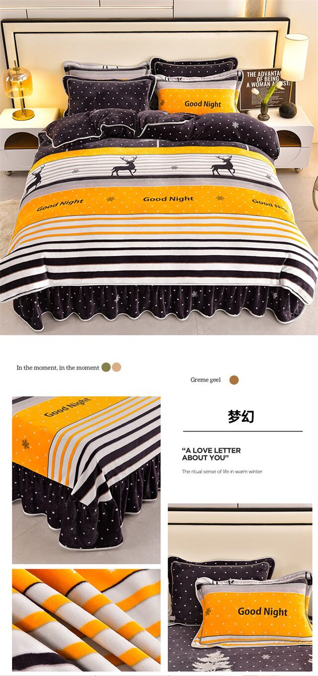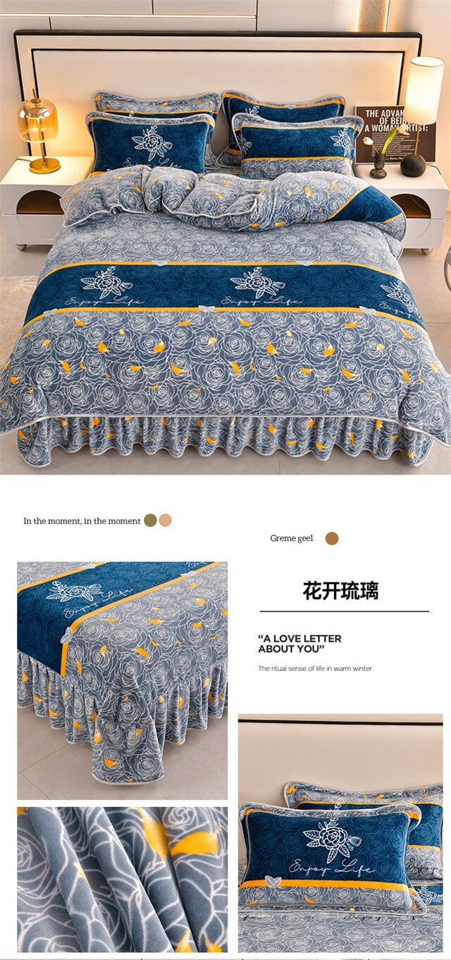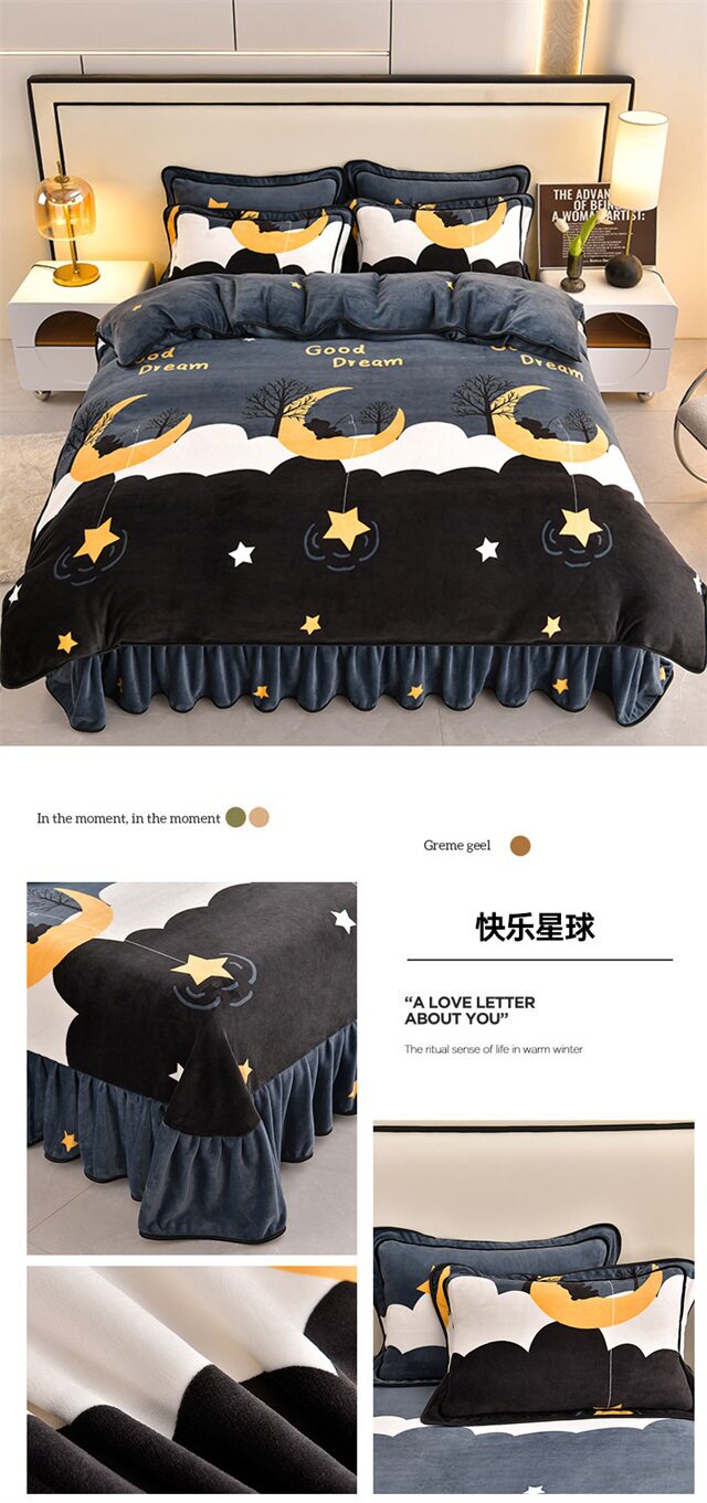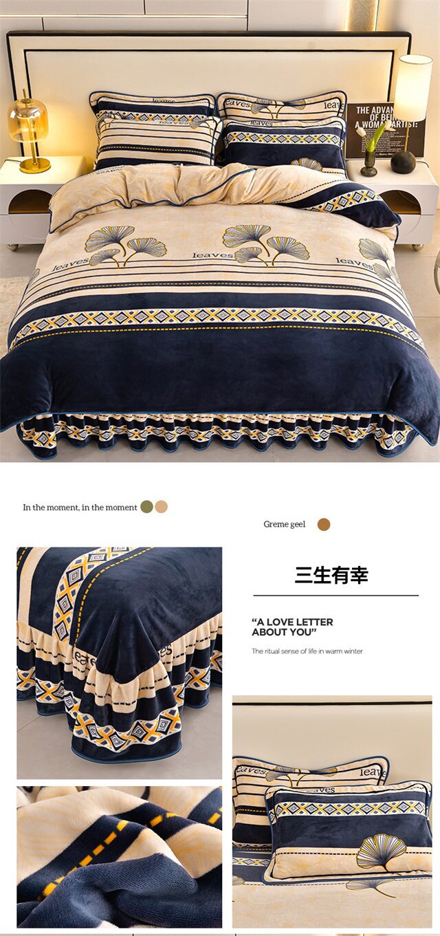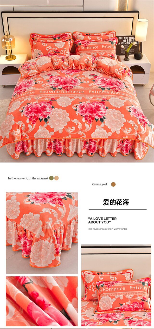 Live Broadcast Hot Item 4kg Milk Velvet Four-Piece Bedding Set for Double Bed, Thickened and Fleece-Lined for Warmth, Non-Shedding and Non-Pilling