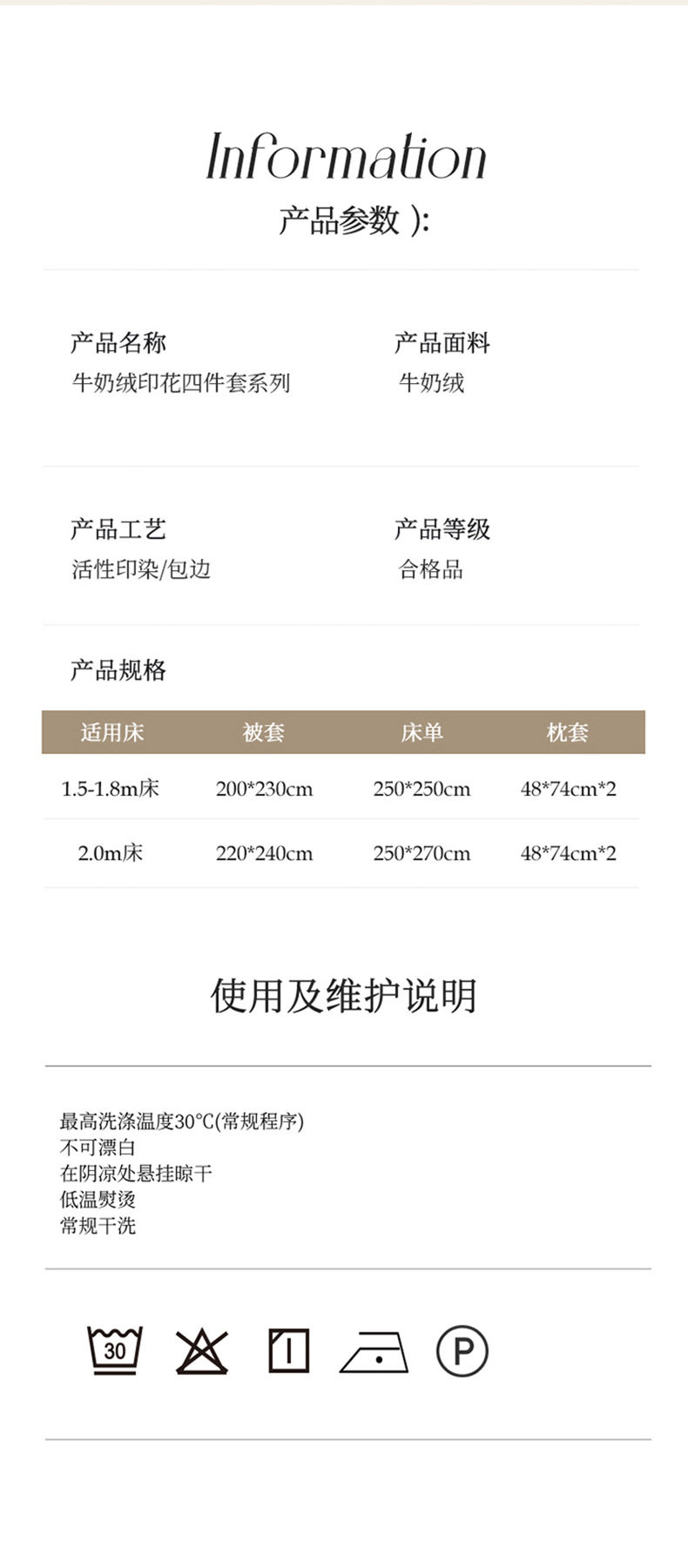 | Size specifications | 1.5m bed quilt cover 200*230cm bed sheets 245*245cm pillowcase 48*74cm*2,1.8m bed quilt cover 200*230cm bed sheets 245*245cm pillowcase 48*74cm*2,2.0m bed quilt cover 220*240cm bed sheets 245*265cm pillowcase 48*74cm*2 |
