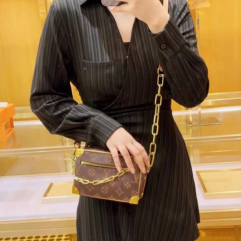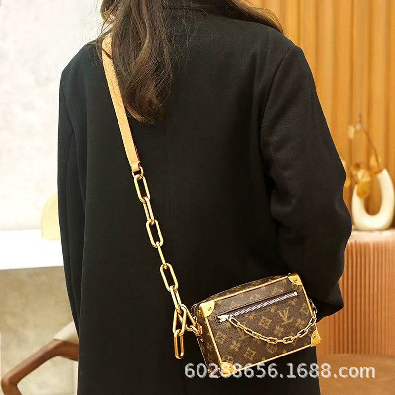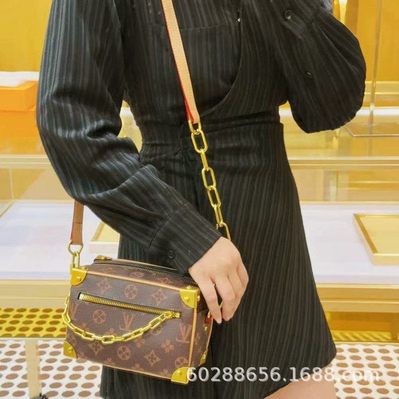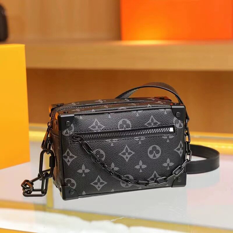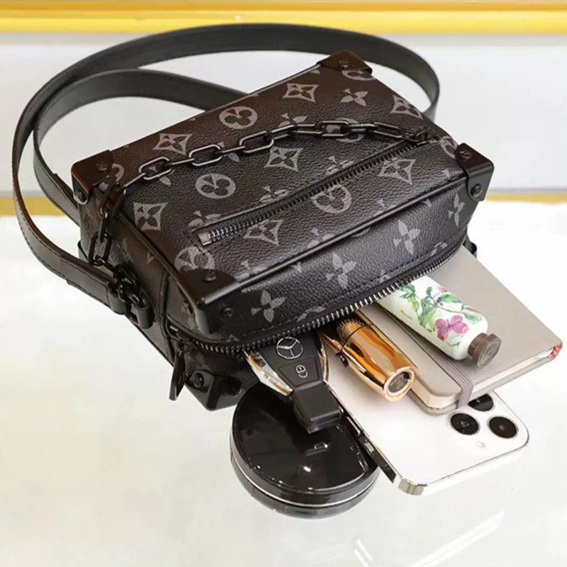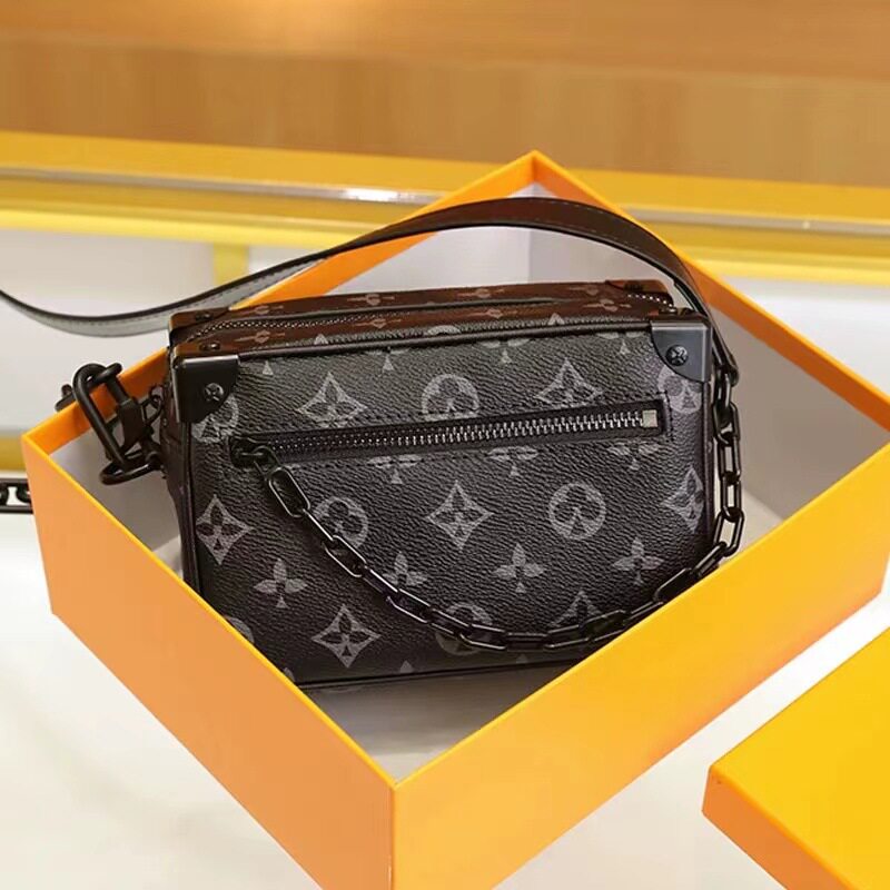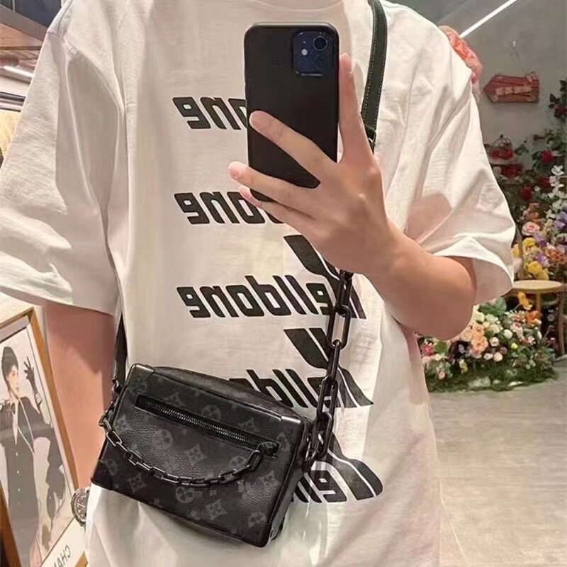 Direct Sales Cross-Border m Lv Men's Bag Women's Bag Genuine Leather Box Bag Chain Bag Black Warrior Three-In-One Messenger Bag Pillow Bag