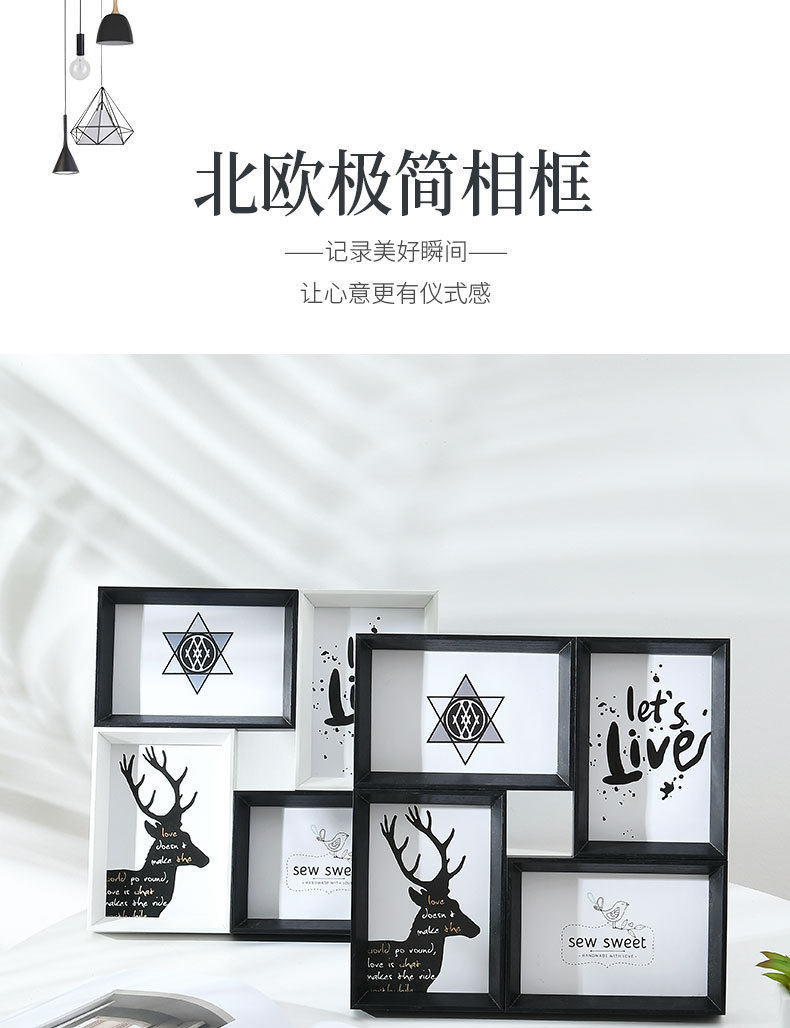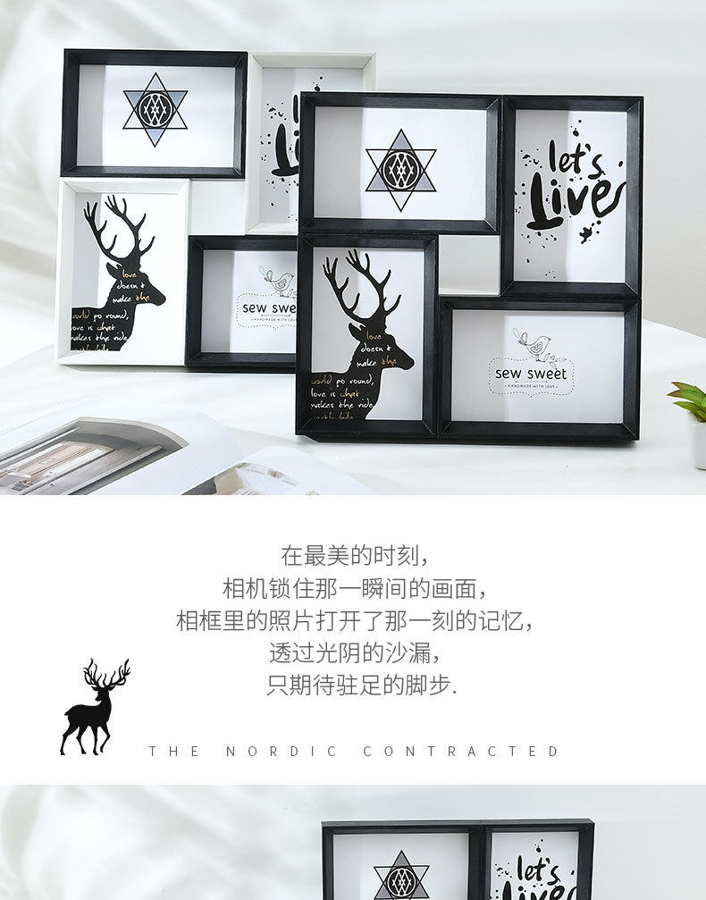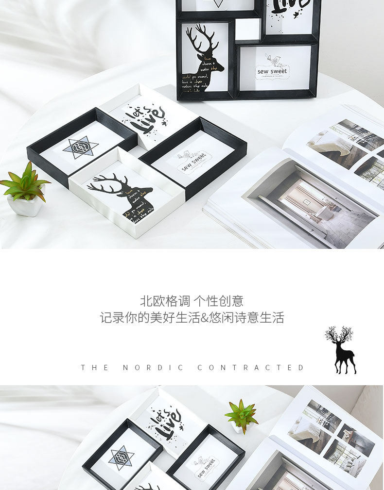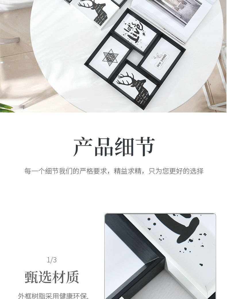 Creative Photo Frame Set of Four, 6inch Pieces, for Tabletop or Wall Hanging, Four-Grid Combination, Interlocking Photo Wall, American Style 4-Frame Set