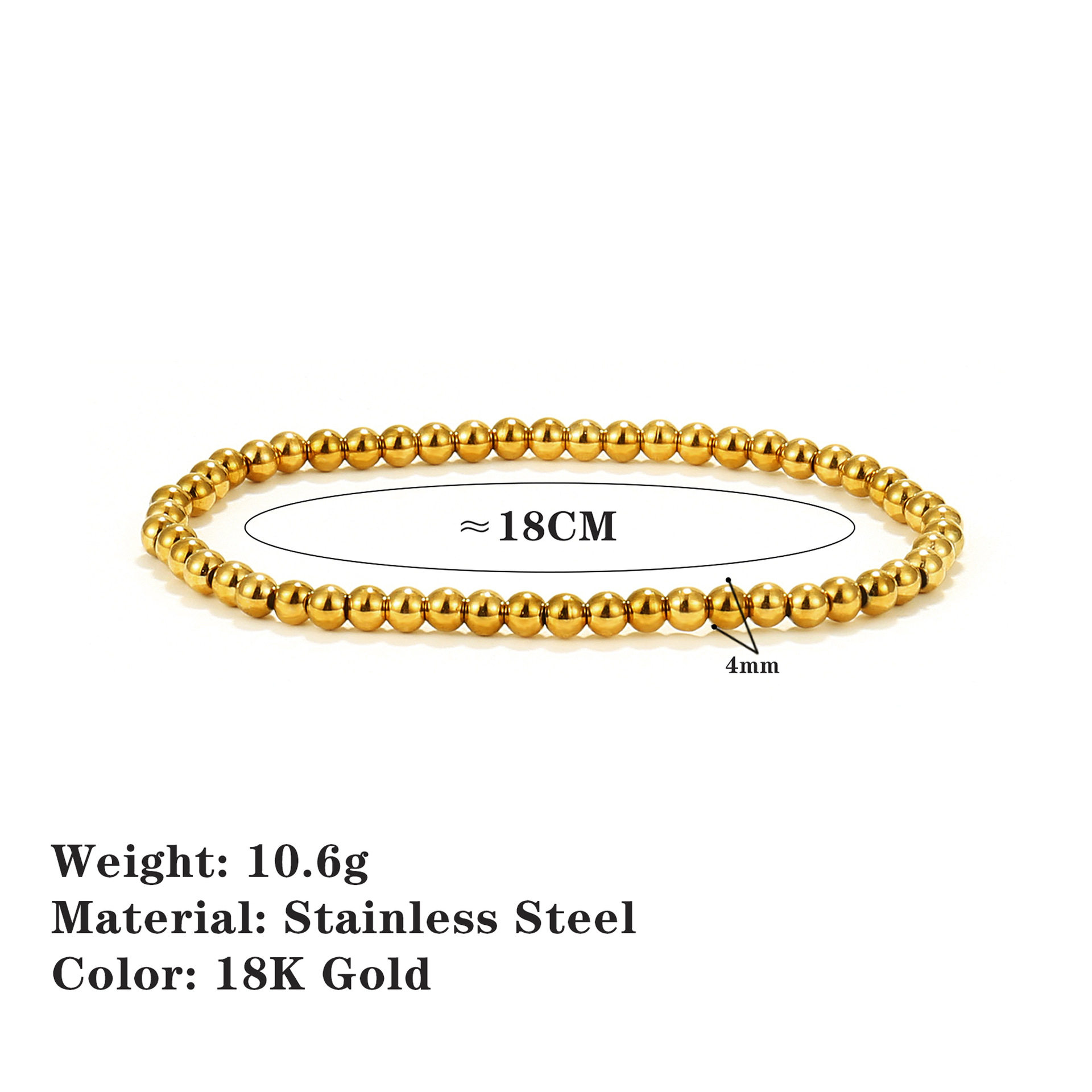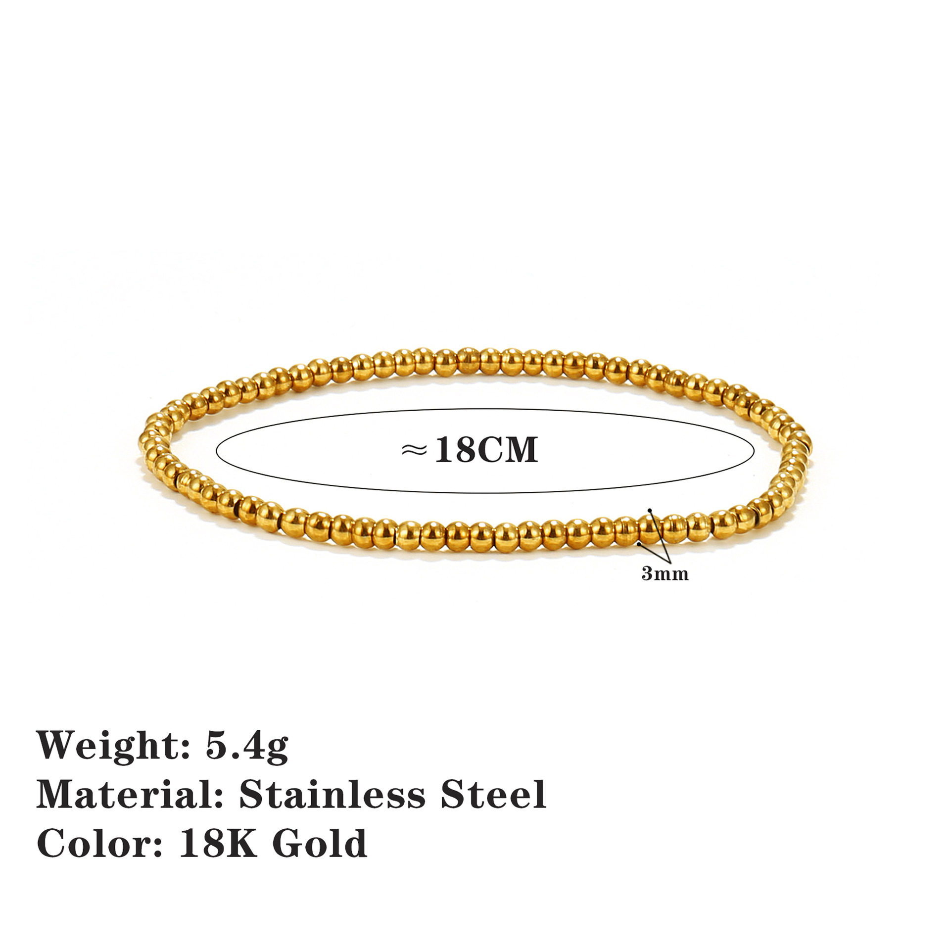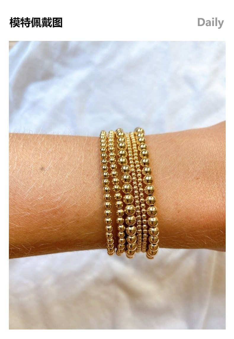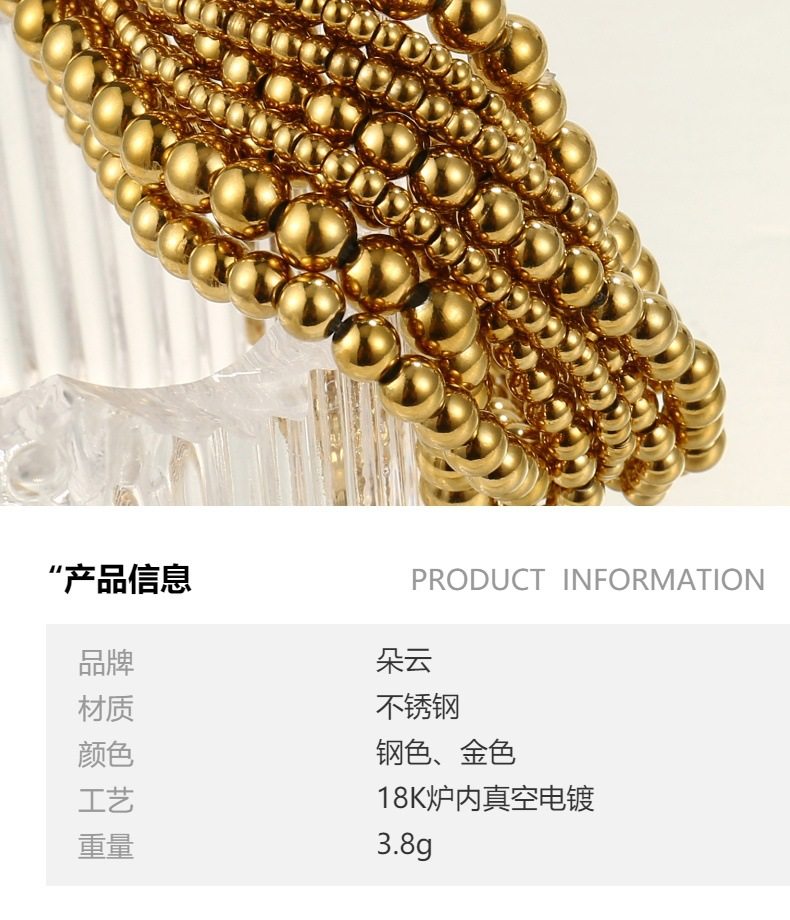 European and American Amazon's Popular 18K Gold-Plated Stainless Steel Bead Bracelet, Simple and Fashionable Beaded Elastic Non-Fading Bracelet