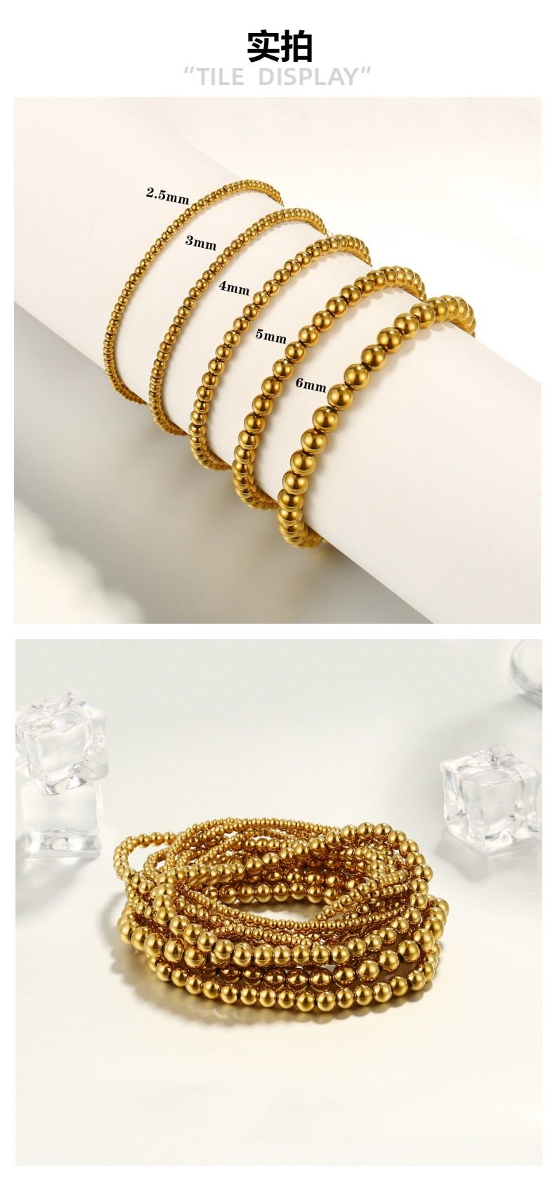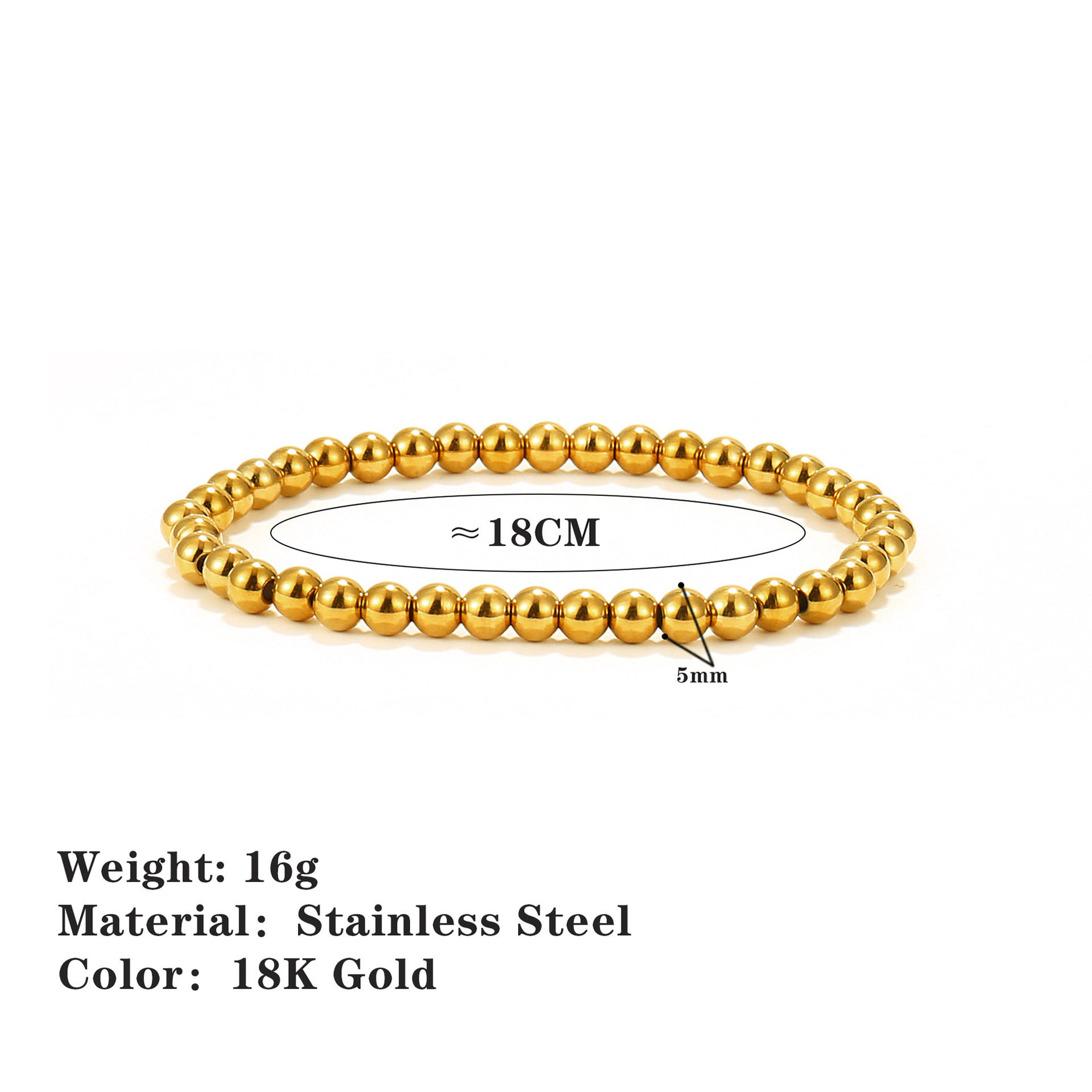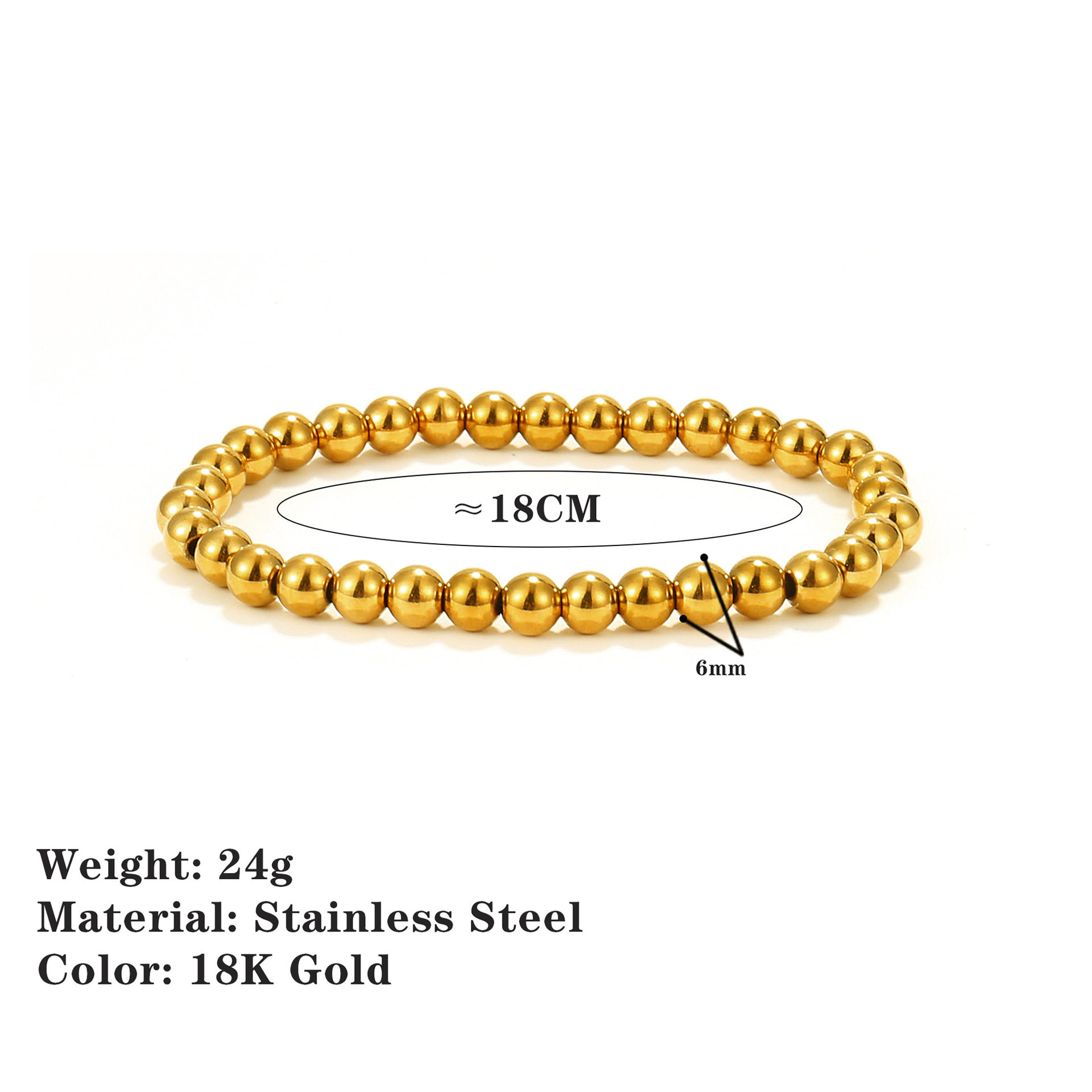 European and American Amazon's Popular 18K Gold-Plated Stainless Steel Bead Bracelet, Simple and Fashionable Beaded Elastic Non-Fading Bracelet