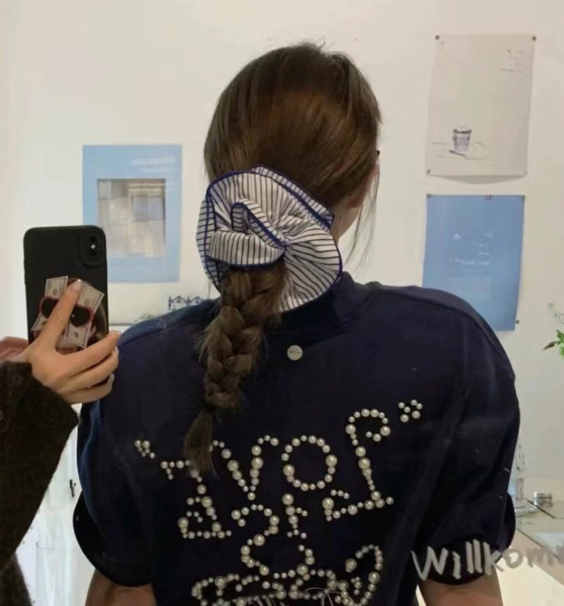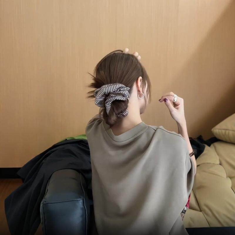 Striped Scrunchie for Women, Trendy 2025 New High-End Forest Style Hair Tie, Low Bun Hair Accessory