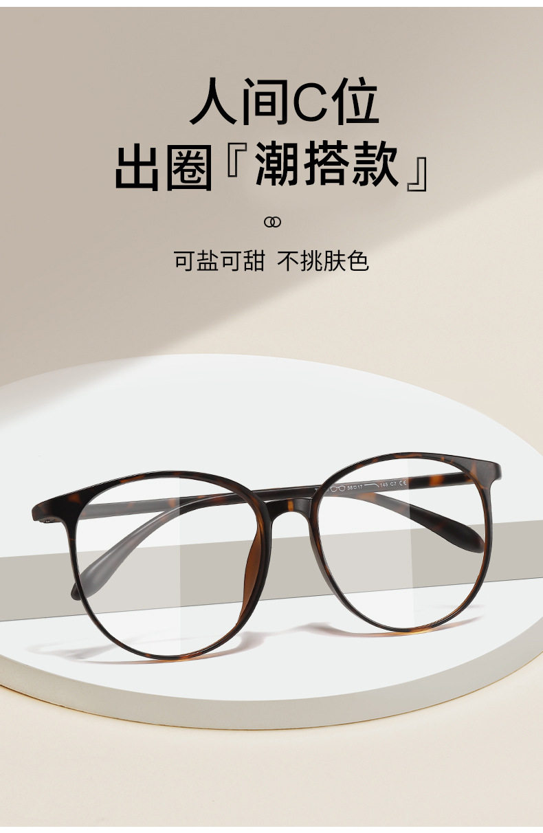 7216 Japanese and Korean Style Large Round Frame TR90 Ultra-light Flat Glasses Frame Women's Internet Popular Plain Face Slimming Glasses Frame for Short-sighted Eyes