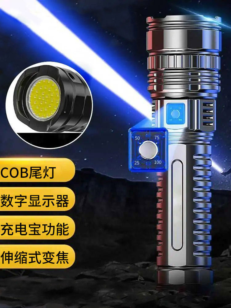 High-Lumen Ultra-Long-Range Bright Flashlight, Handheld, with Digital Display, Telescopic Zoom, Outdoor Portable, Long Battery Life