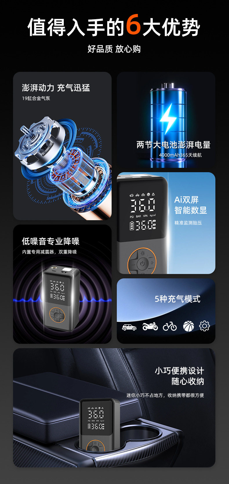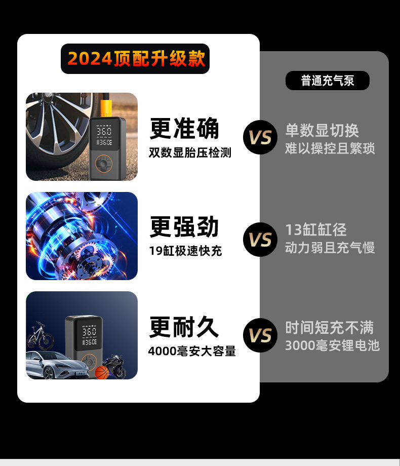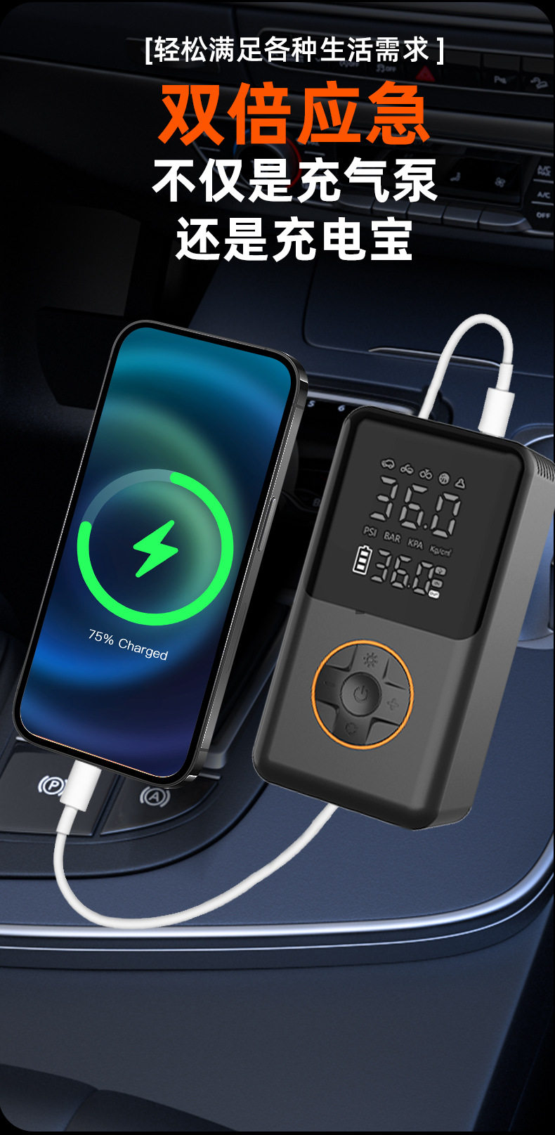 | Additional functions | Lighting,Tire pressure gauge,Warning light,Usb charging |