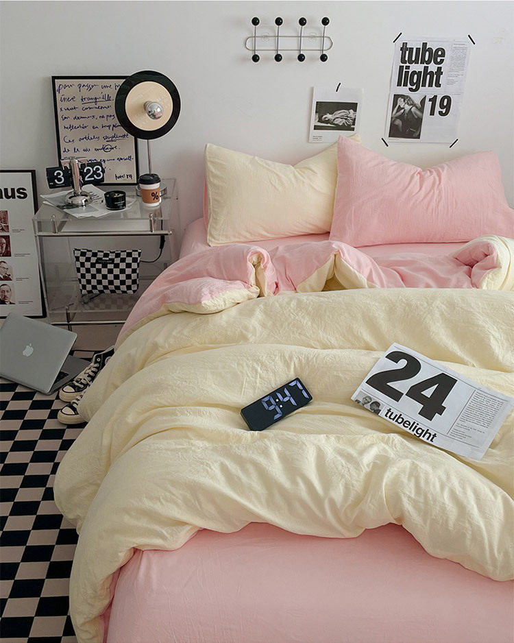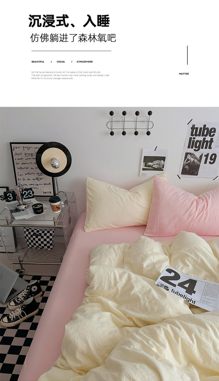 Skin-friendly water-washed cotton four-piece set super soft student dormitory bed hat three-piece set bed sheet quilt cover quilt cover factory outlet