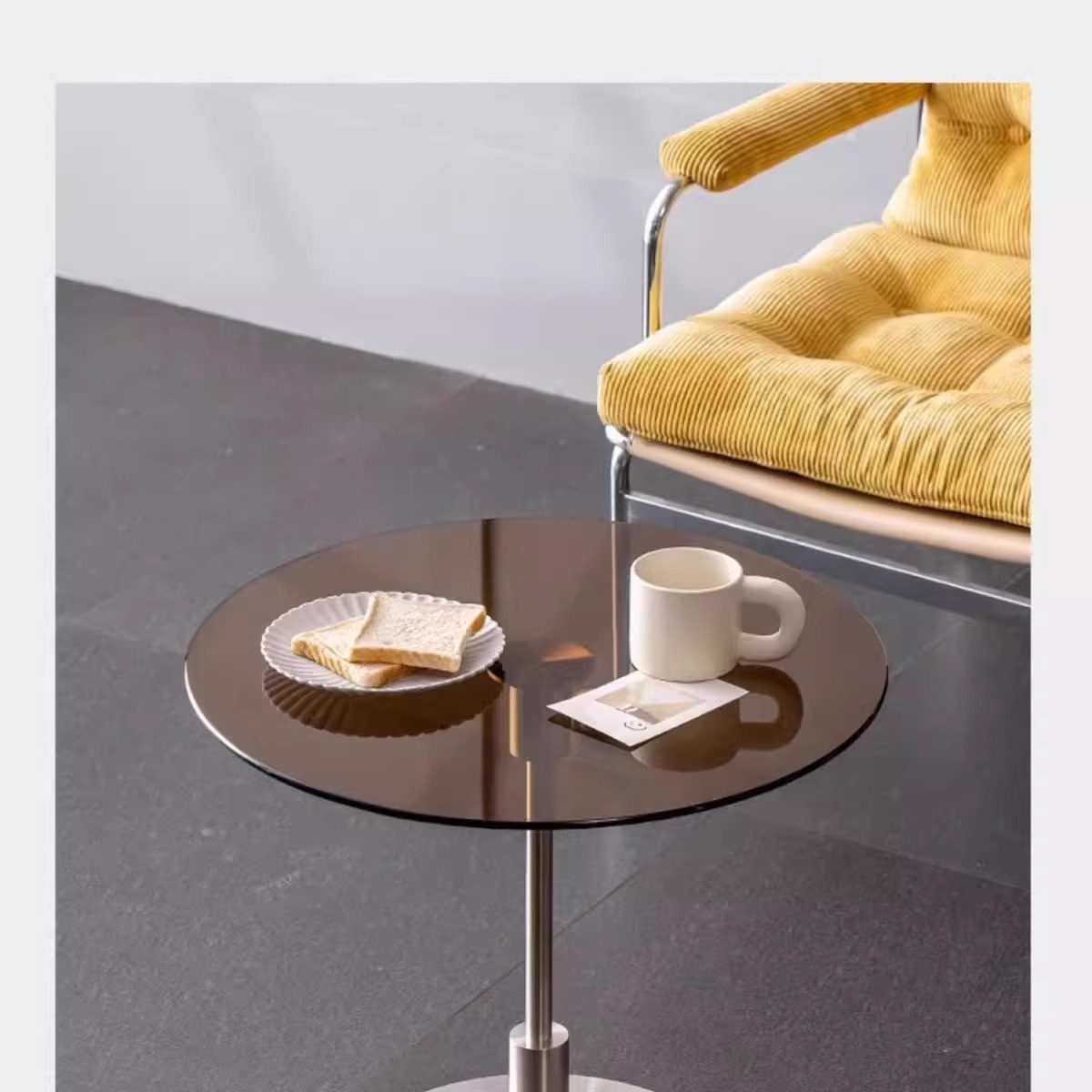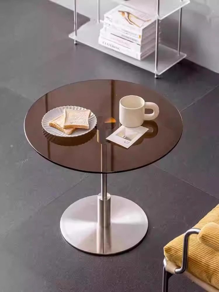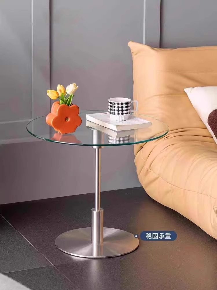 Nordic Stainless Steel Bedroom Side Table, Vintage Sofa Side Table, Simple Bedside Table with Wheels, Sofa Glass Corner Table, Coffee Table