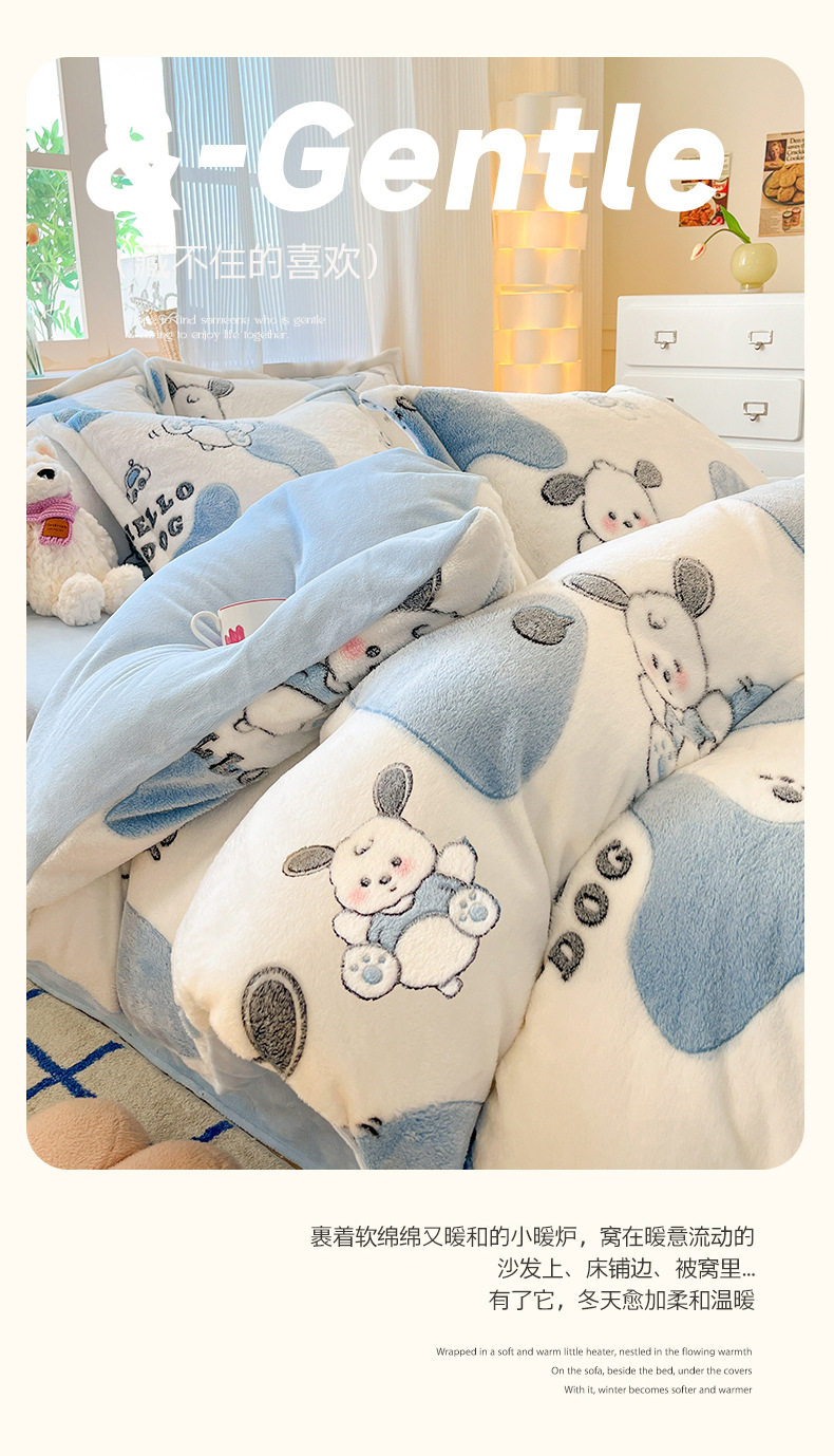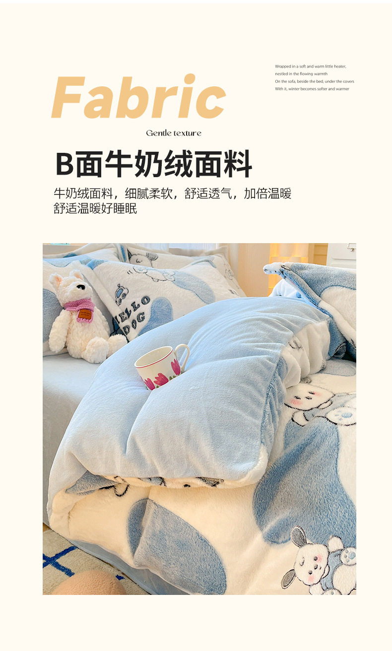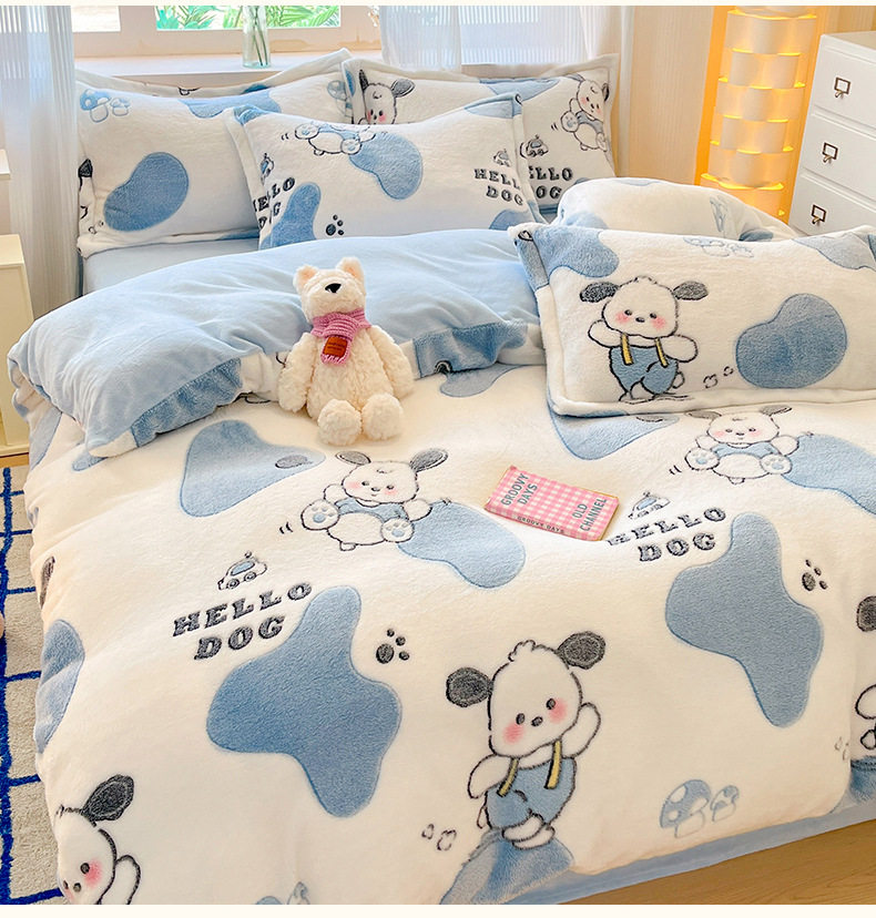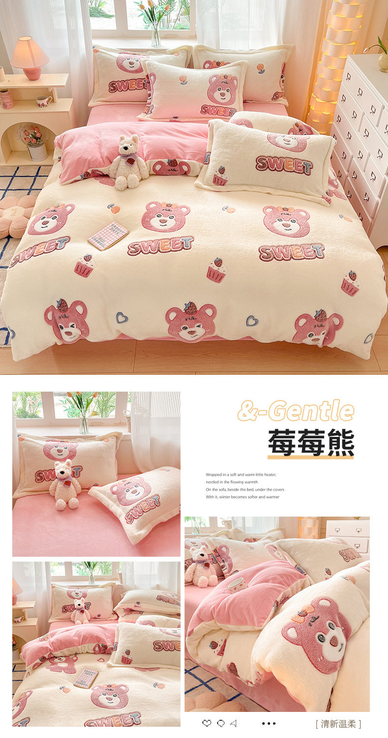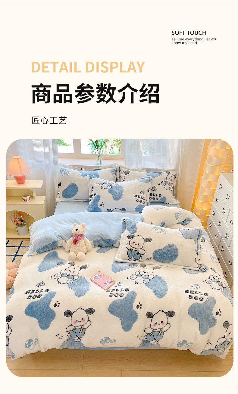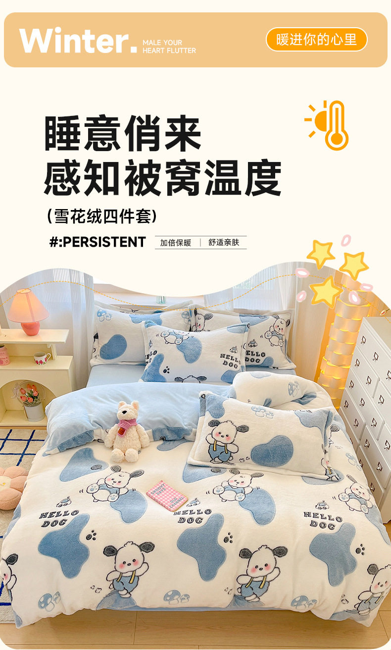 Cartoon Snowflake Milk Velvet Bedding Four-piece Set Autumn and Winter Children's Thickened Coral Velvet Quilt Cover Bed Sheet Three-piece Set