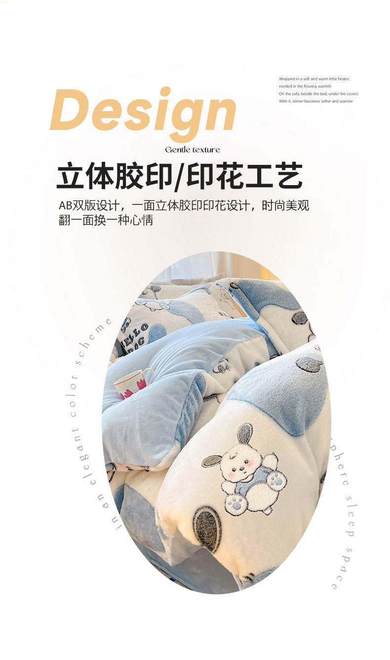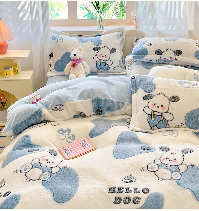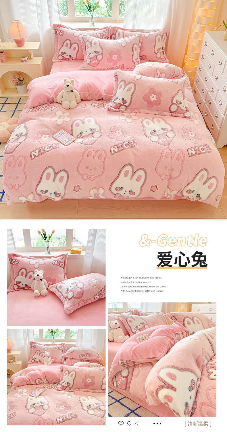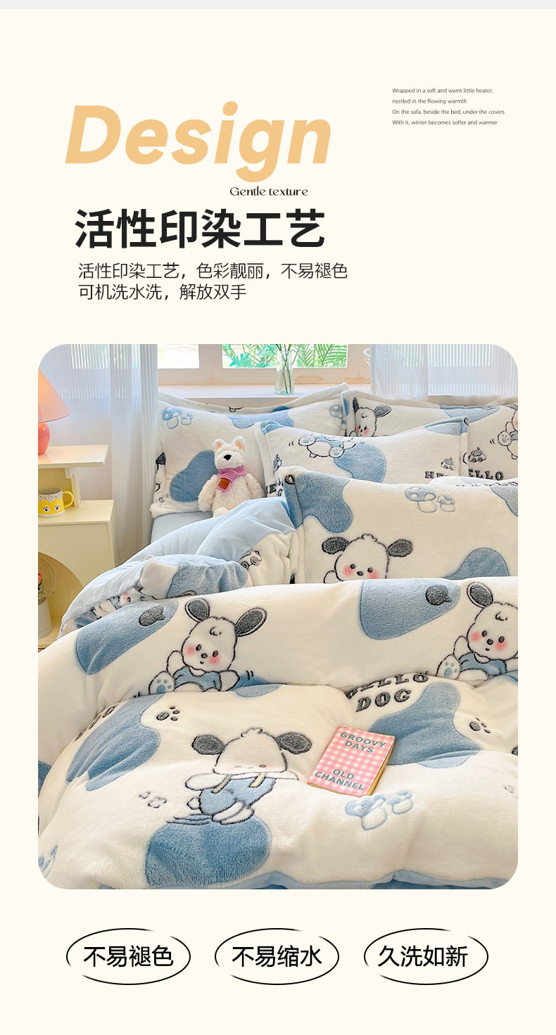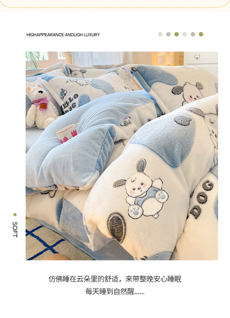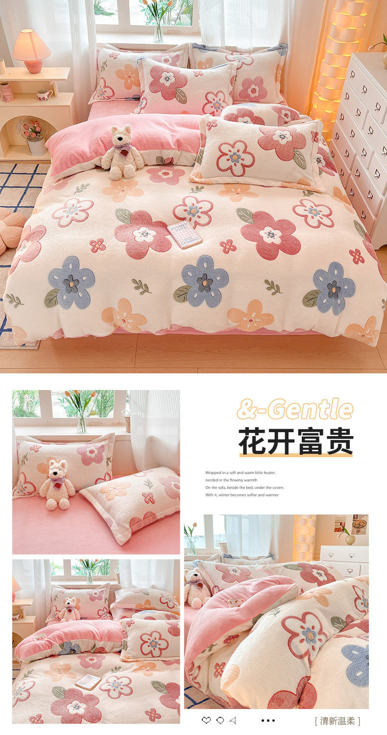 Cartoon Snowflake Milk Velvet Bedding Four-piece Set Autumn and Winter Children's Thickened Coral Velvet Quilt Cover Bed Sheet Three-piece Set