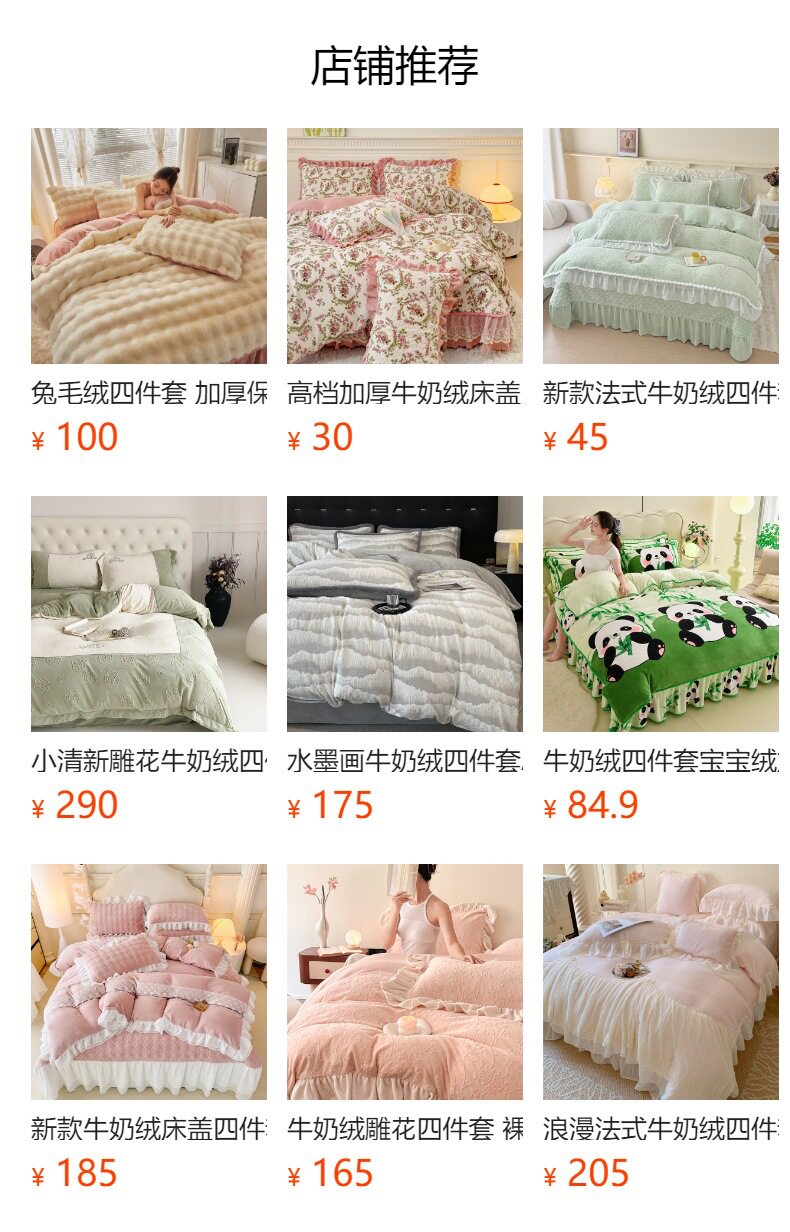 | Size specifications | 48*74cm pillowcase pair,1.2 three-piece bed set [quilt cover 150*200],1.5 bed four-piece set [quilt cover 180*200],1.8 bed four-piece set [quilt cover 200*230],2.0 bed four-piece set [quilt cover 220*240],1.5 fitted sheet set of four-quilt cover 200*230,1.8 fitted sheet set of four-quilt cover 200*230,150*200cm single quilt cover,180*200cm single quilt cover,200*230cm single quilt cover,220*240cm single quilt cover |