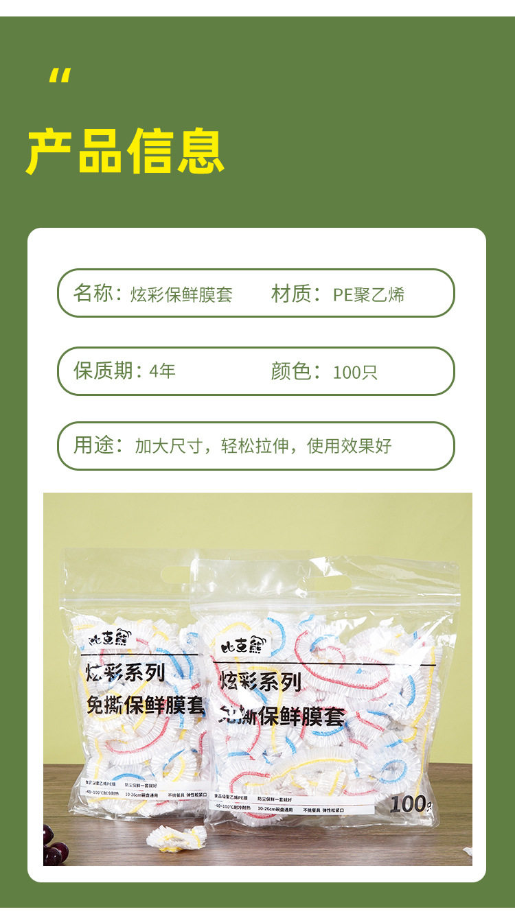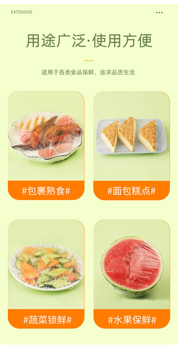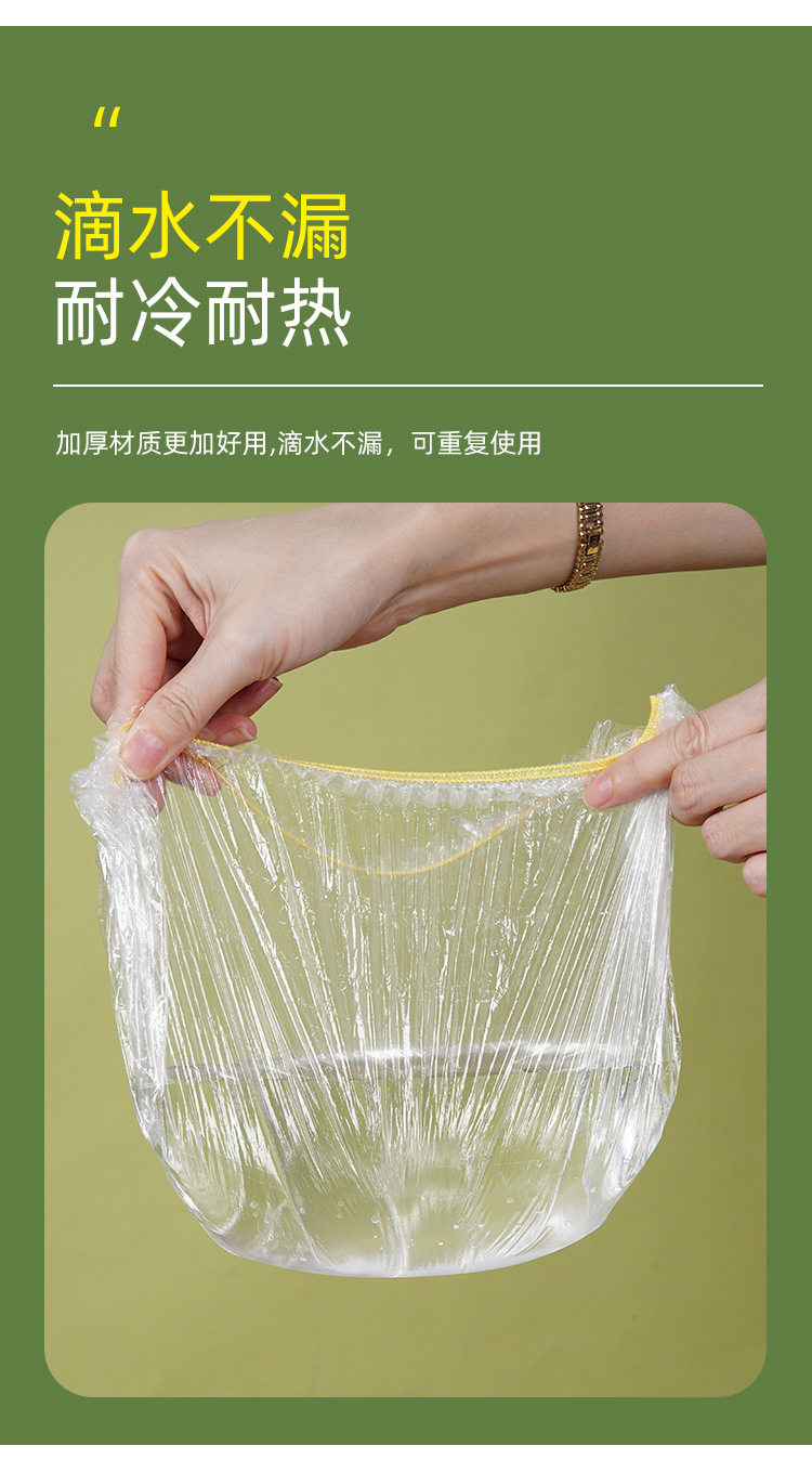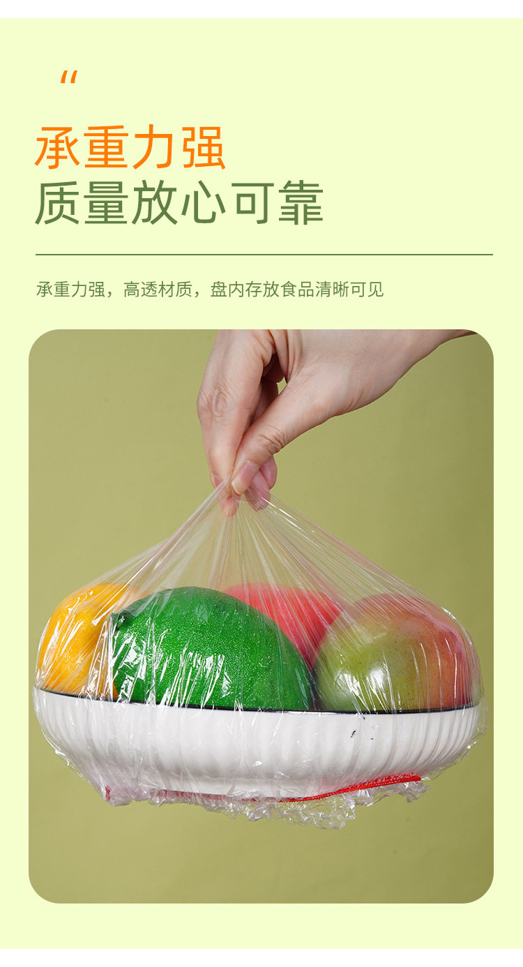 Color 100 disposable plastic wrap food grade kitchen tear-free plastic bag shower cap transparent leftovers bowl set