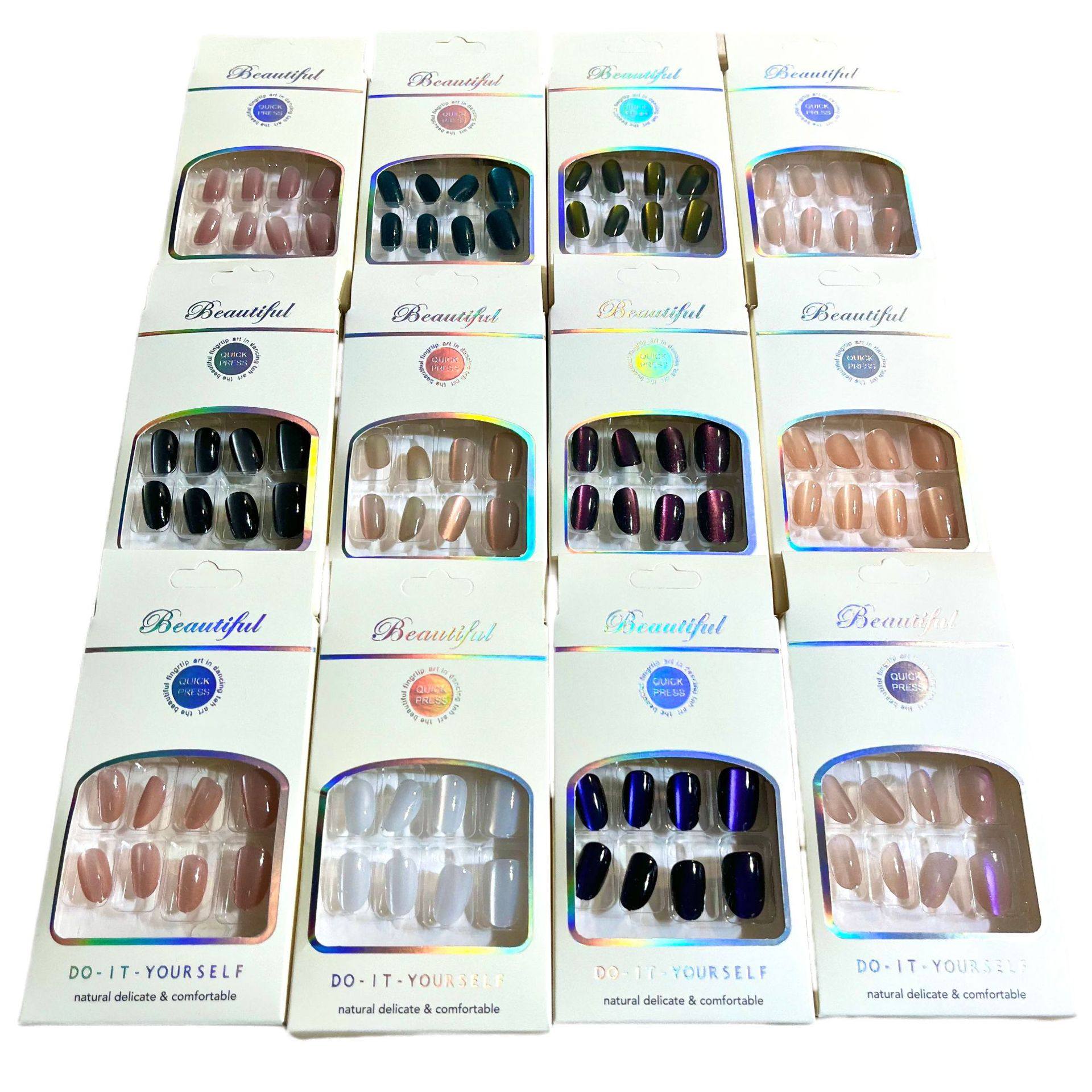 | Color classification | Ballet flats with rhinestones (1 set of 12 boxes, 12 styles),Almond gilded edition (orders under 12 boxes will not include a display box),Almond wide light cat eye (less than 12 boxes will be shipped without display box),Medium ballet wide light cat eye (less than 12 boxes will be shipped without display box),Medium ballet diamond style (1 set of 12 boxes and 12 styles),Medium ballet diamond style 24 pieces (1 set of 12 boxes and 12 styles),Medium ballet diamond style 1 (1 set of 12 boxes and 12 styles),Children's nail tips (1 set, 12 boxes, 12 styles),Children's nail plate diamond style (1 set, 12 boxes, 12 styles),Short ballet cat eyes (1 set, 12 boxes, 12 styles),Oval gradient cat's eye rhinestones (minimum order of 12 boxes; display box not included for orders below this quantity),Medium ballet solid color cat eye,Almond solid color cat eye,High-end handmade almond silver-plated (laser card) |