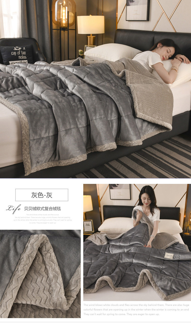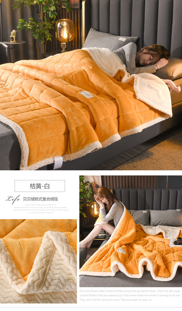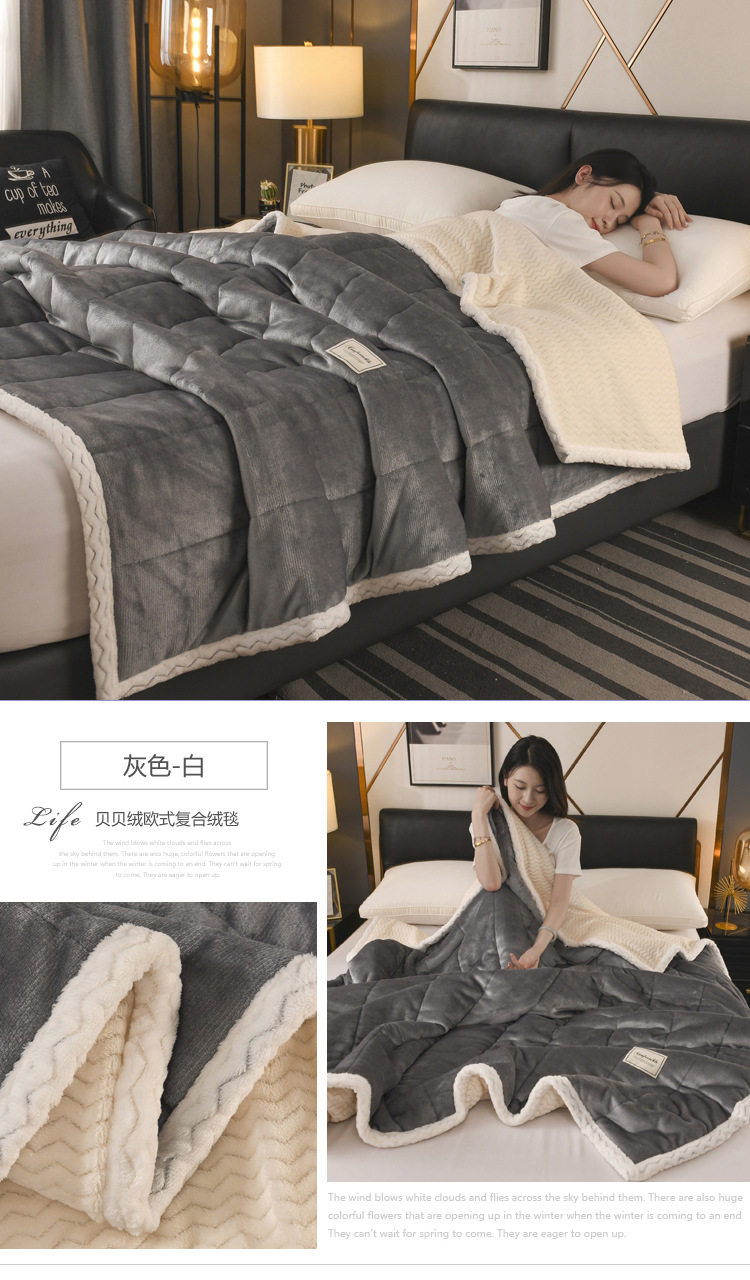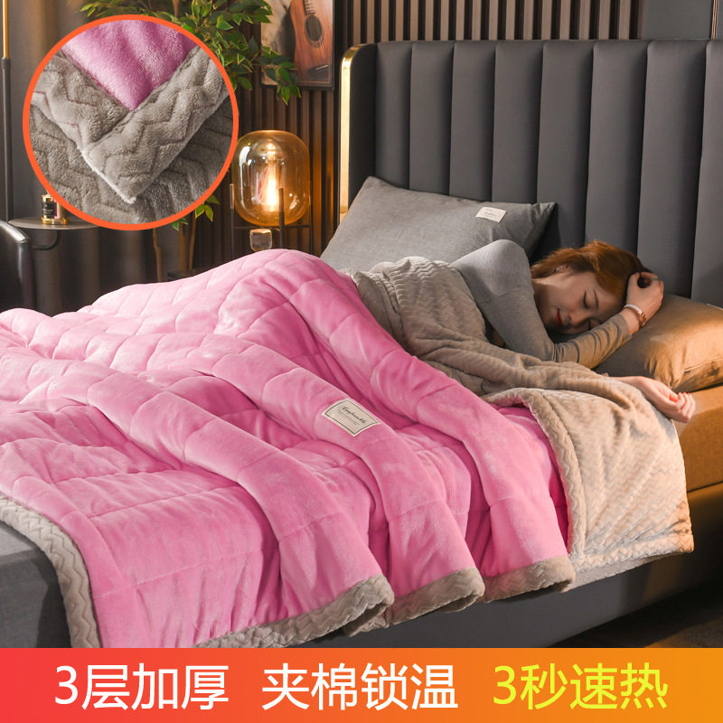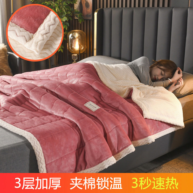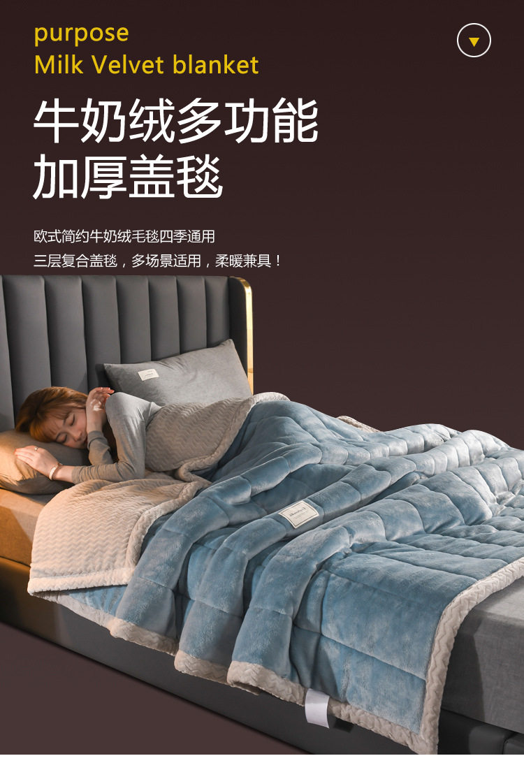 Cross-border Winter Warm Super Soft Blanket High-end Thickened Three-layer Blanket Velvet Blanket Nap Faleirong Bed Cover Blanket