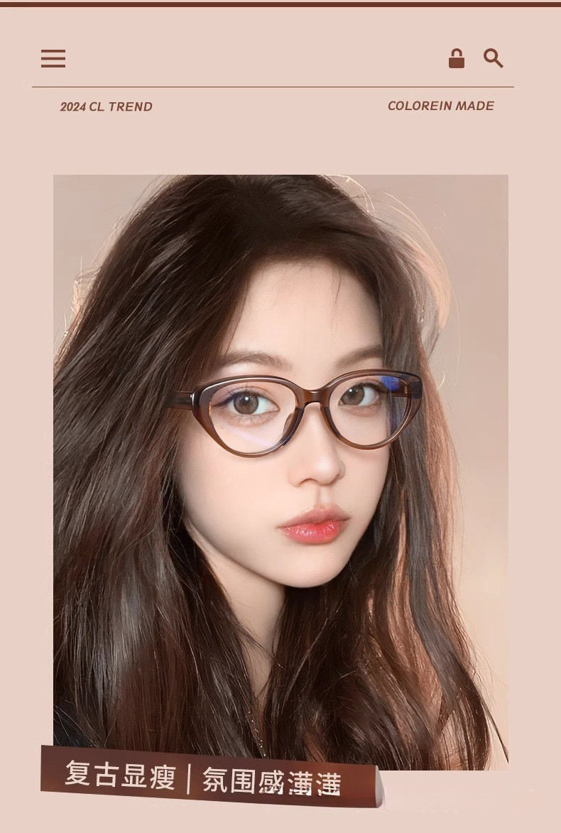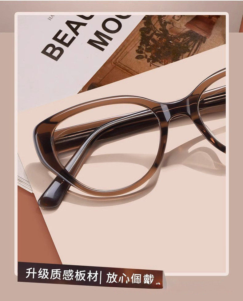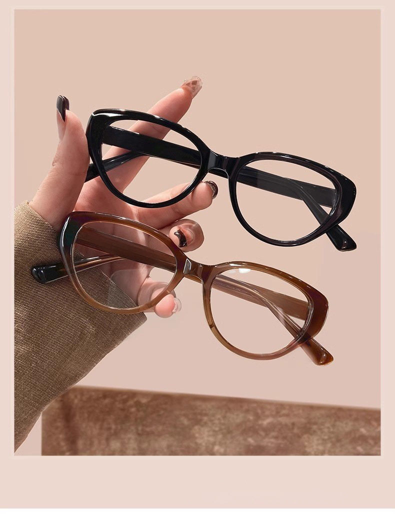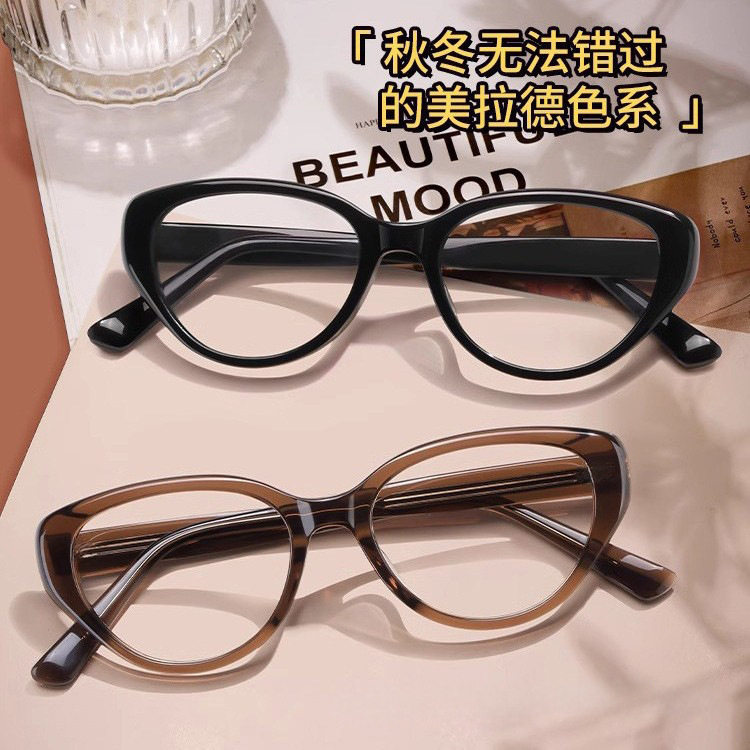 Tea-colored small frame cat's eye cold tea frame anti-blue light flat glasses can be equipped with high myopia without makeup slimming glasses frame