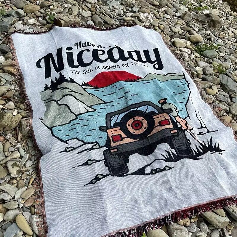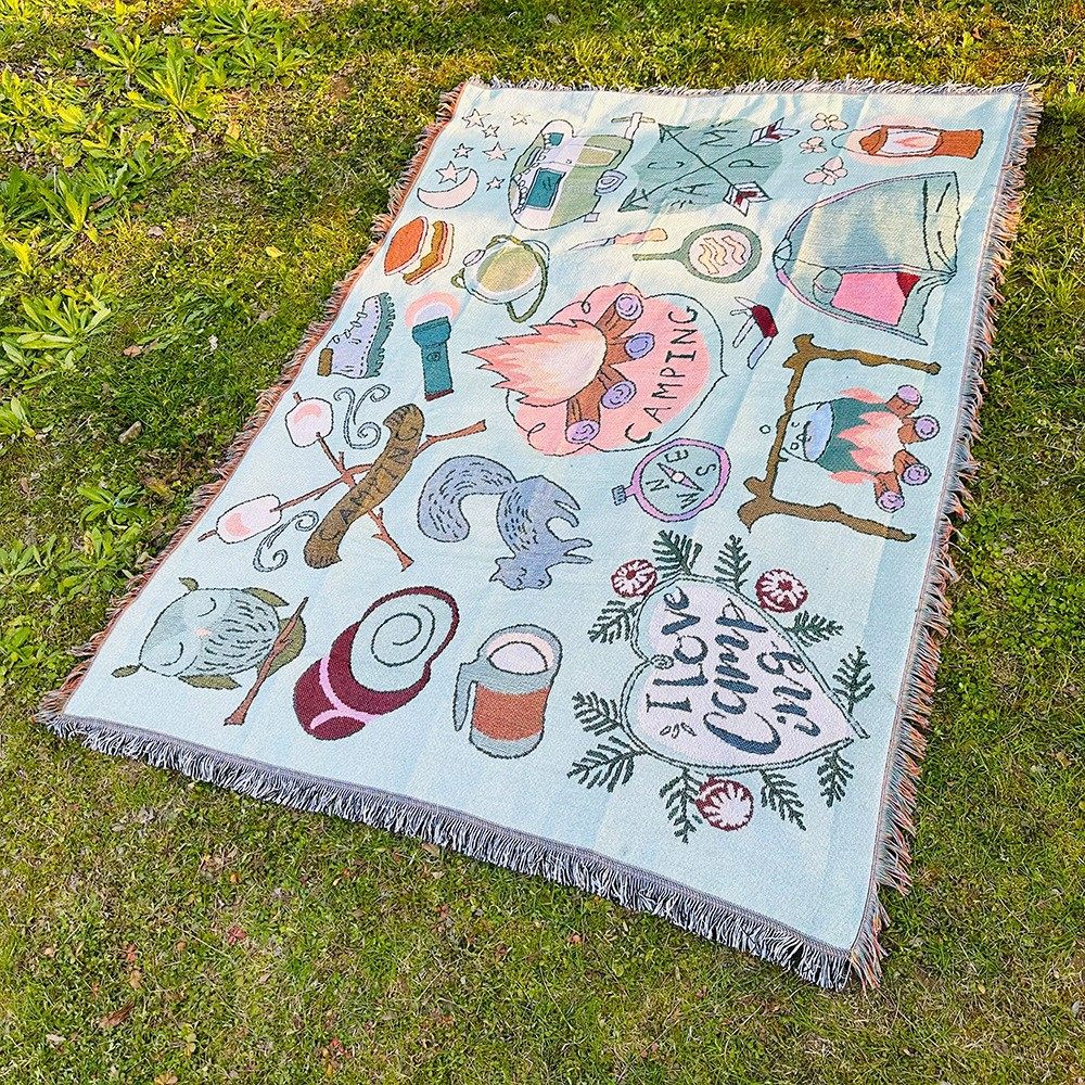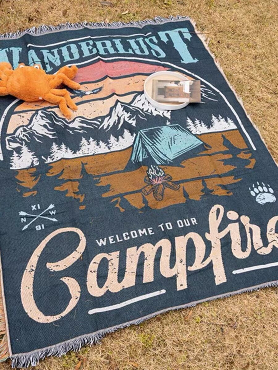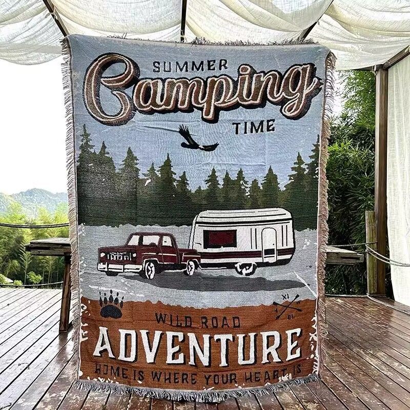 Customized American Tent Camping Style Blanket Rv Outdoor Picnic Mat Knitted Thread Blanket Camping Style Blanket Tablecloth Lawn Mat