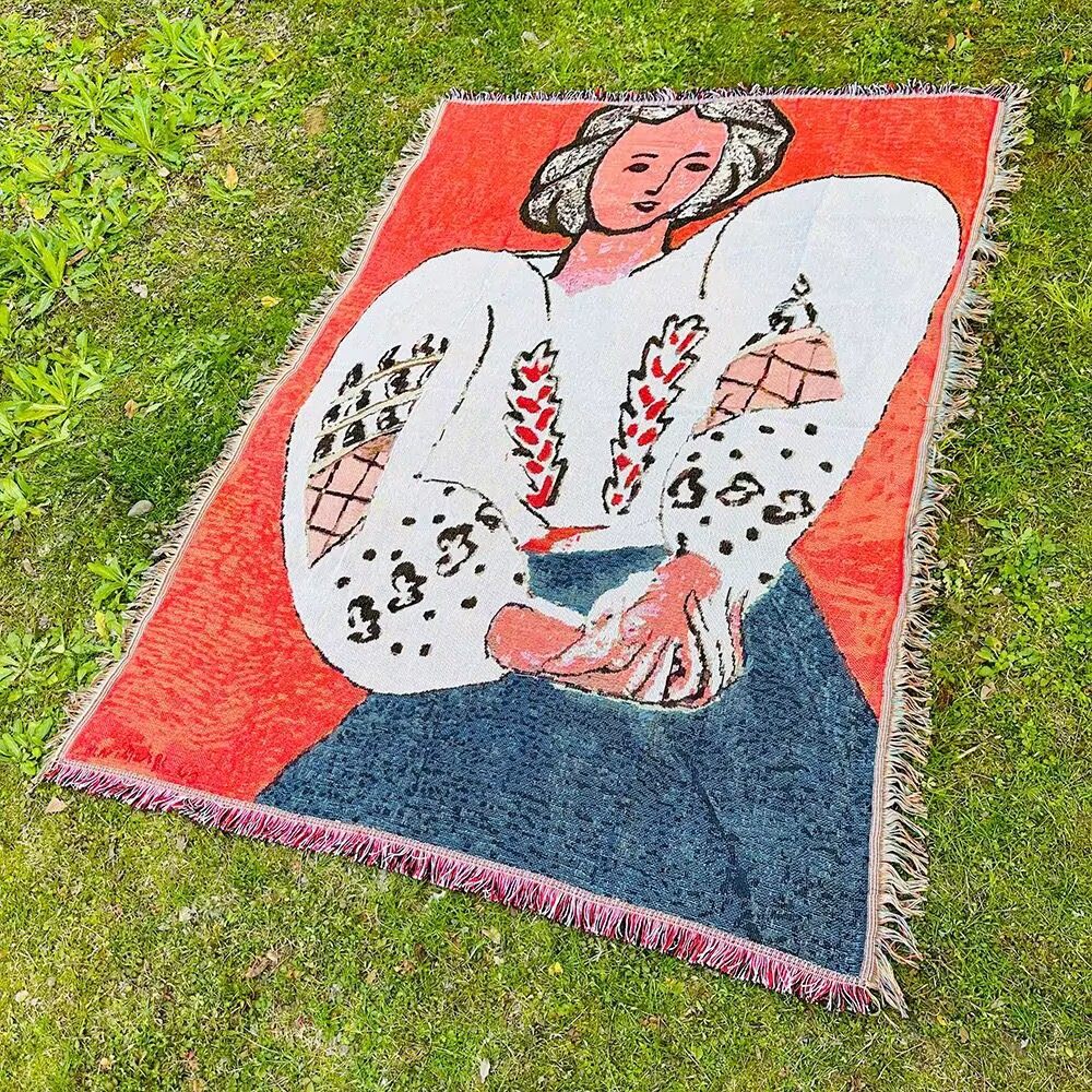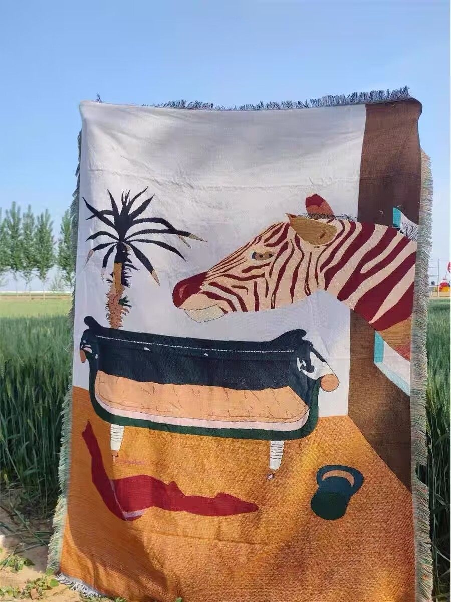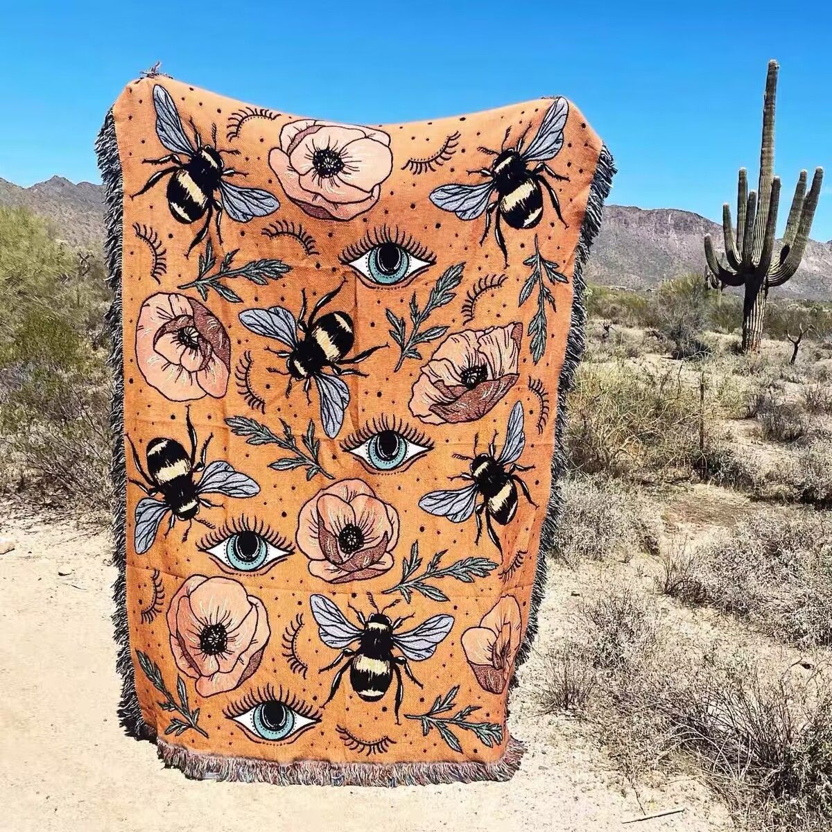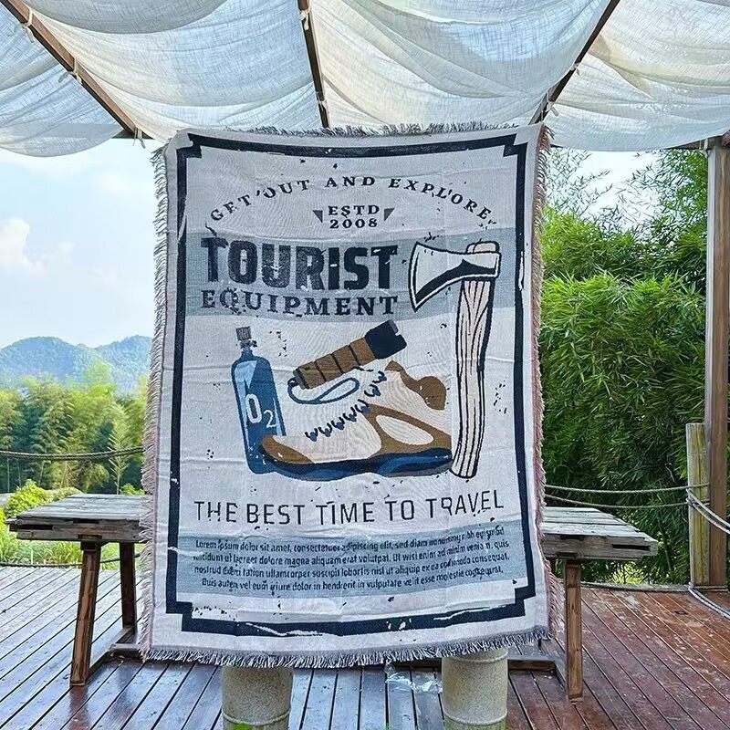 Customized American Tent Camping Style Blanket Rv Outdoor Picnic Mat Knitted Thread Blanket Camping Style Blanket Tablecloth Lawn Mat