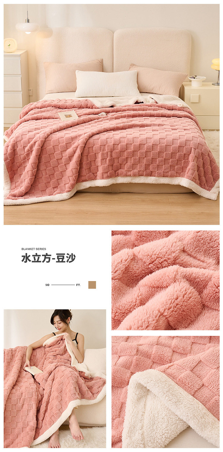 New Taffeta Blanket Water Cube Throw Blanket Nap Blanket Sofa Blanket Flannel Milk Velvet Double Layer Thickeneded Bed Sheets